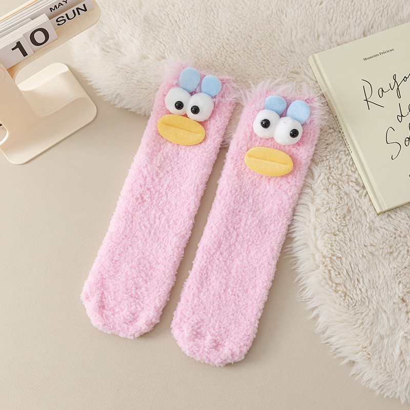 Носки 1688 Zhuji, уродливо-симпатичные женские зимние носки средней длины из кораллового флиса, рождественские носки, шерстяные носки для дома, женские осенне-зимние носки