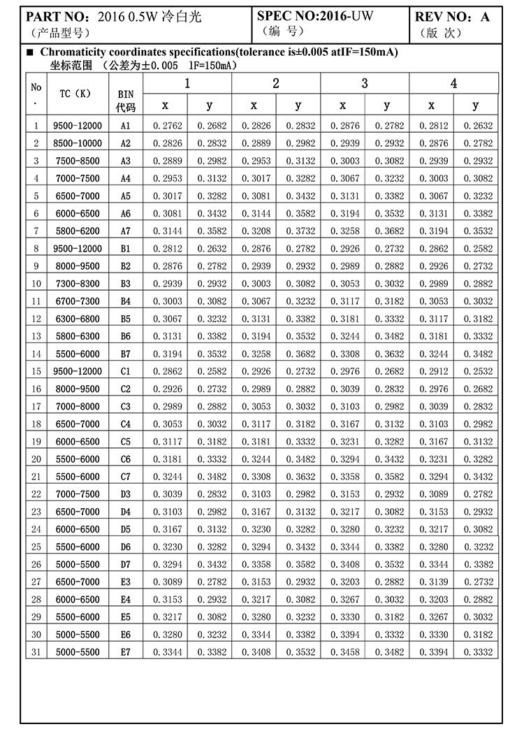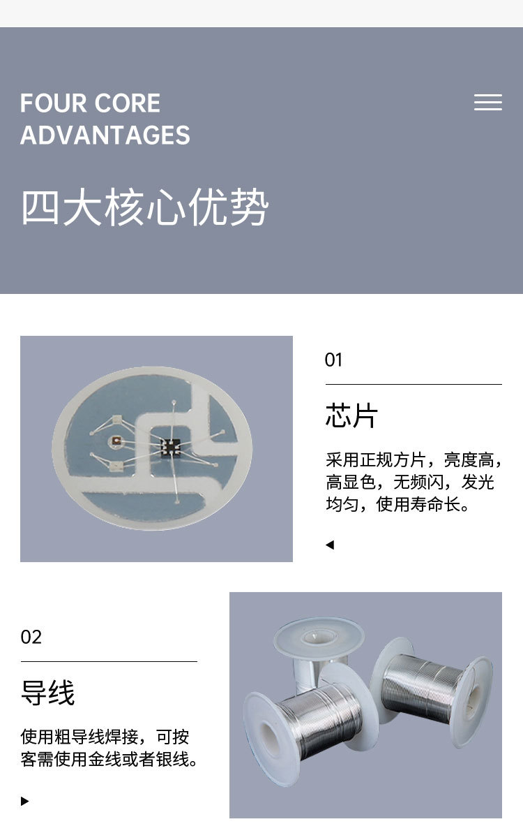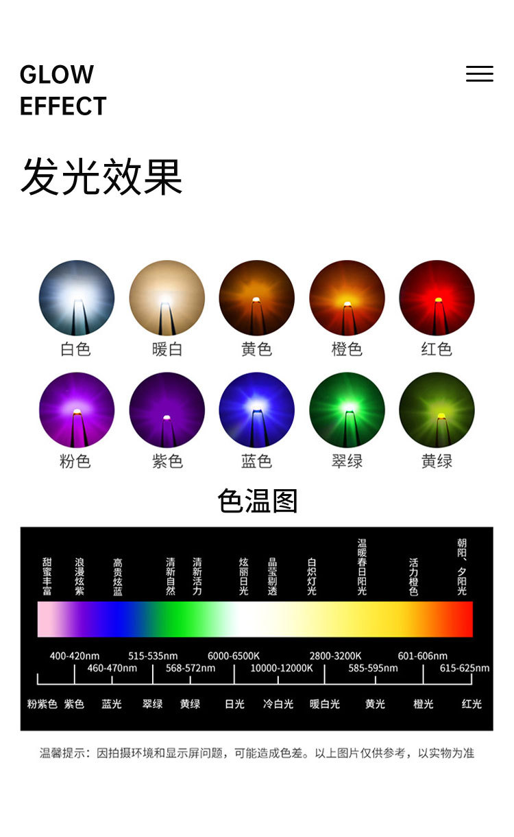 Теплый белый свет 0,2 Вт; Белый свет 0,2 Вт; Теплый белый свет 0,5 Вт.; Белый свет 0,5 Вт