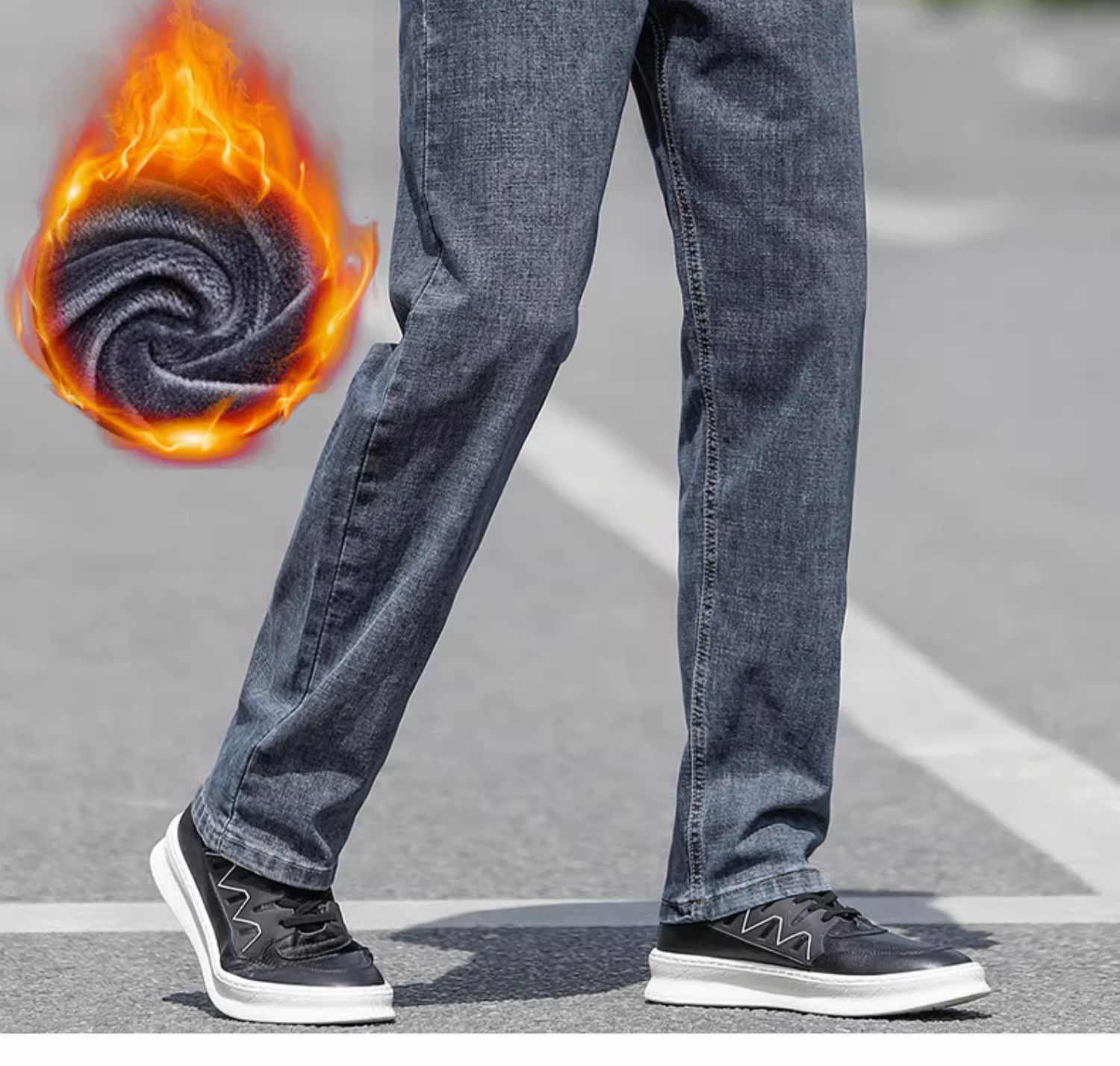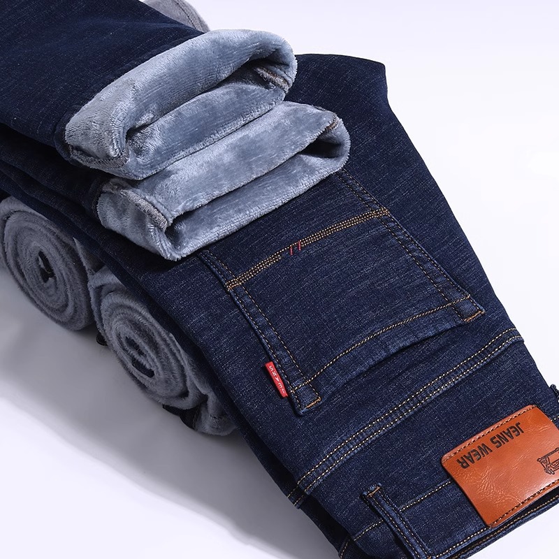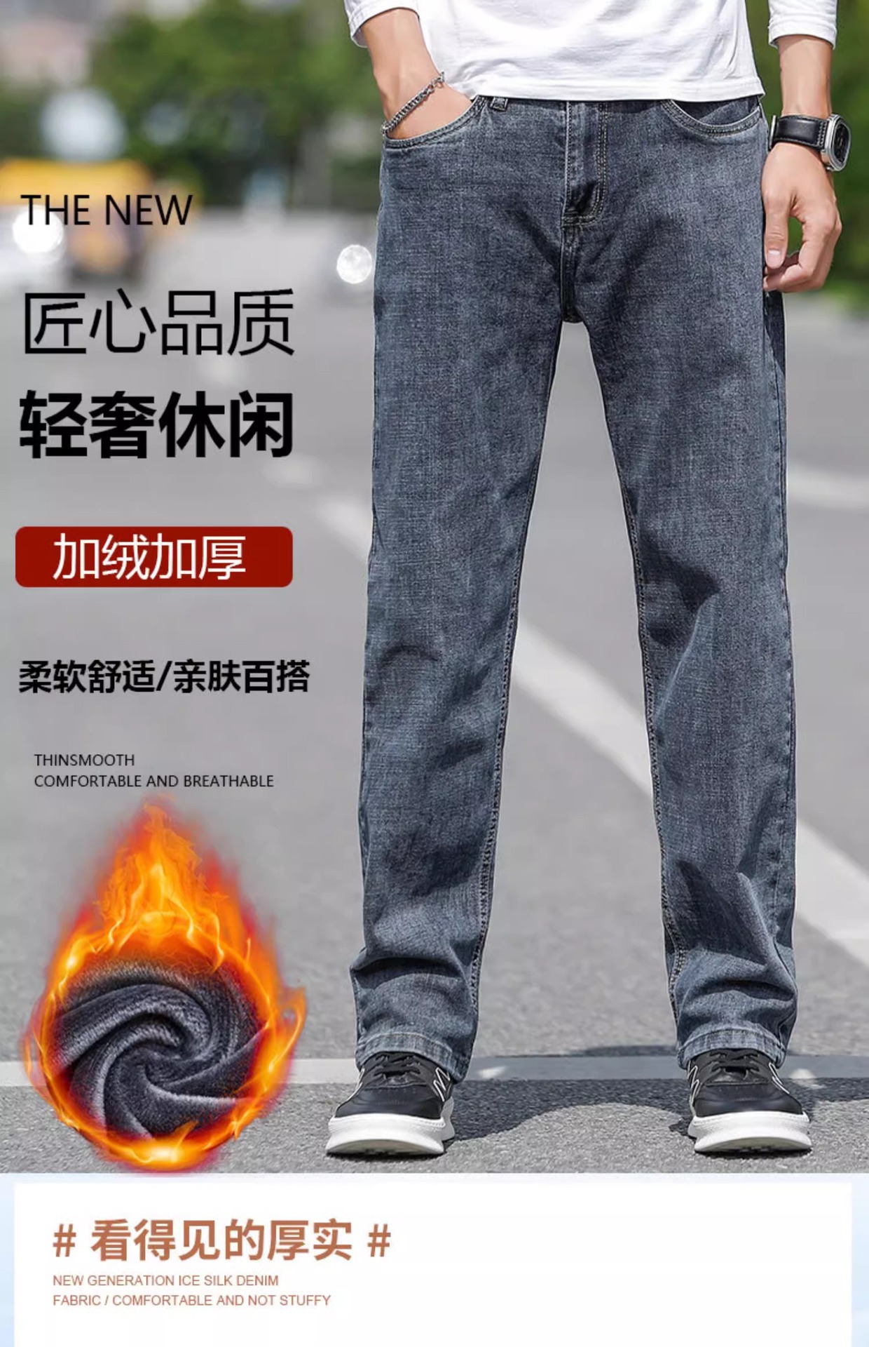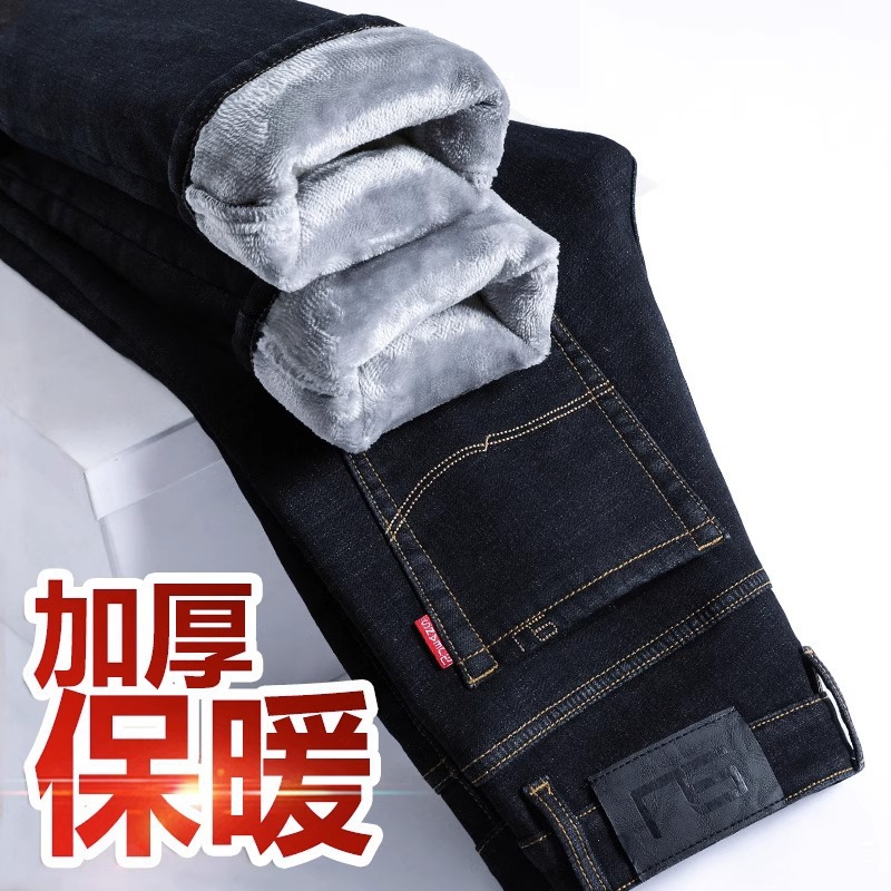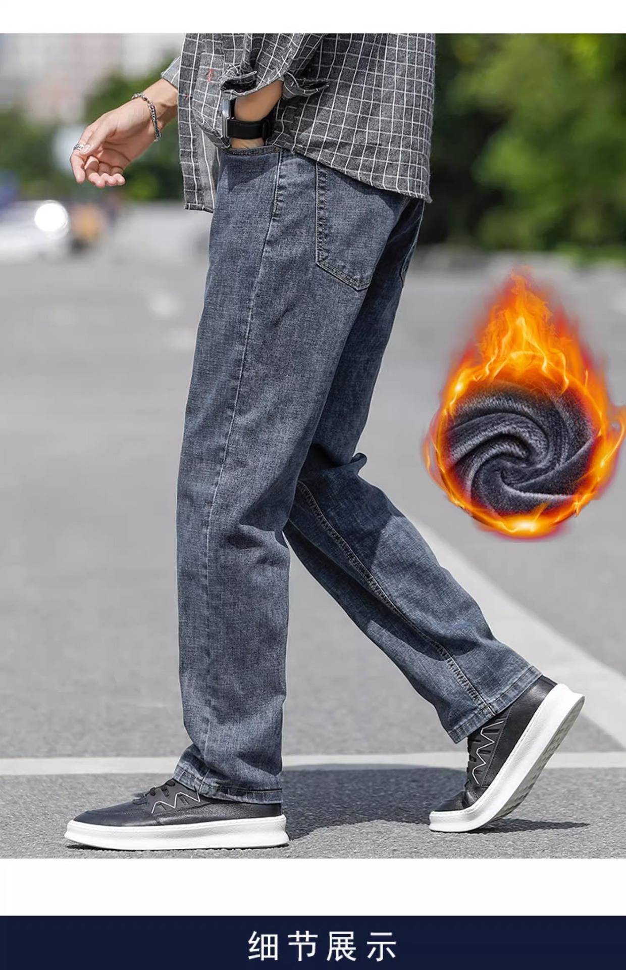 Мужские зимние утепленные джинсы на флисе 2025 года, теплые, больших размеров, для мужчин среднего возраста, свободные прямые брюки из фланели