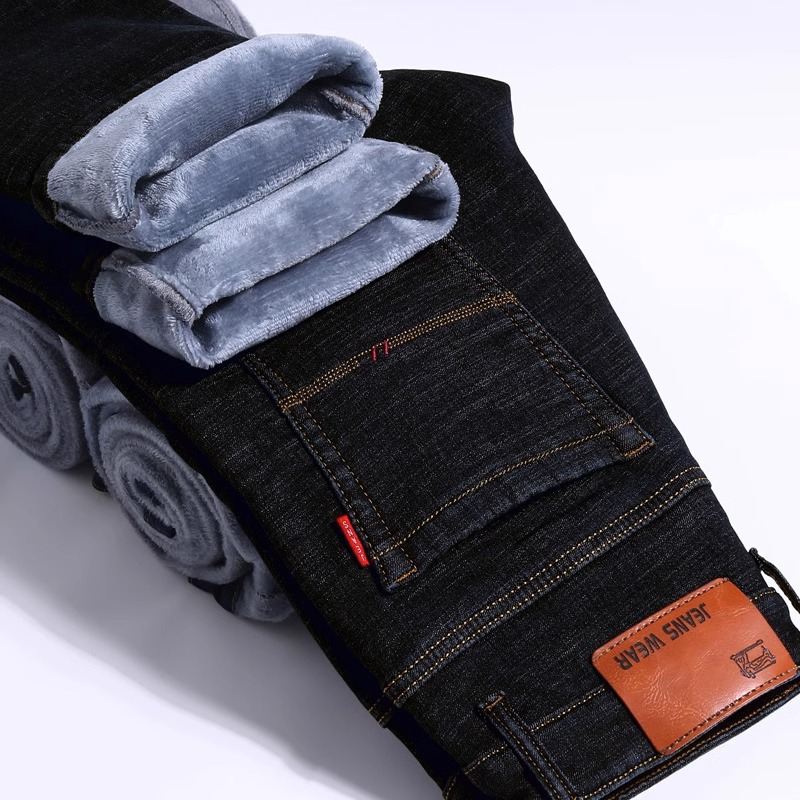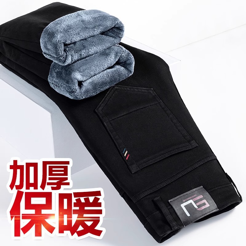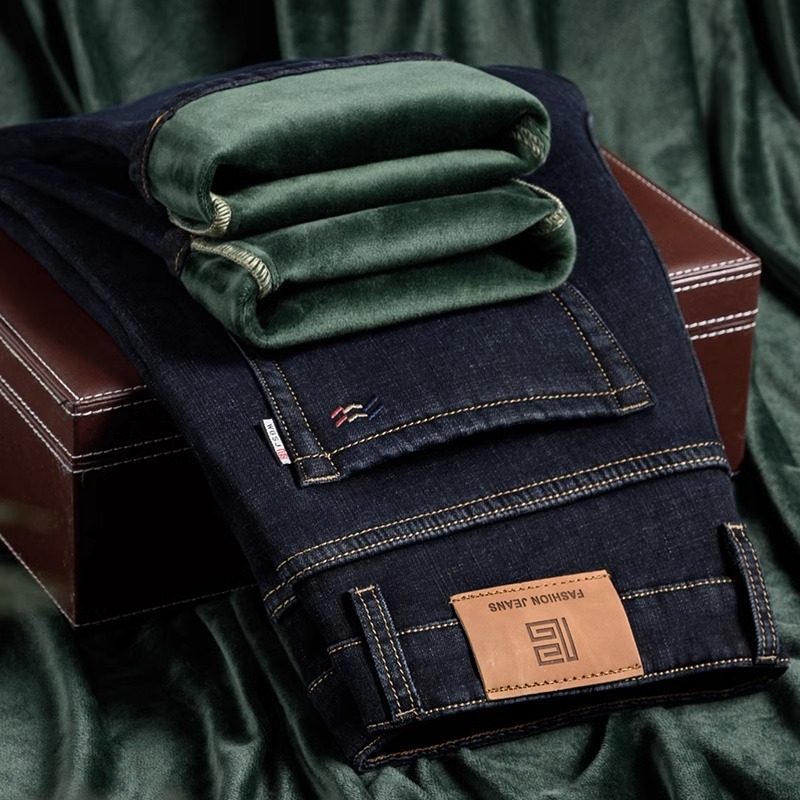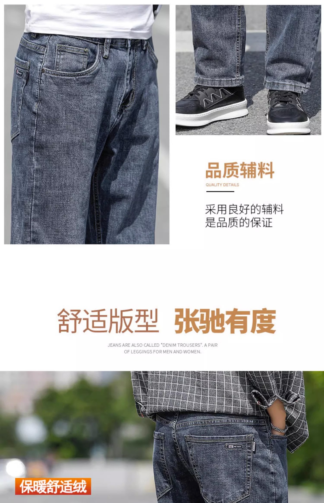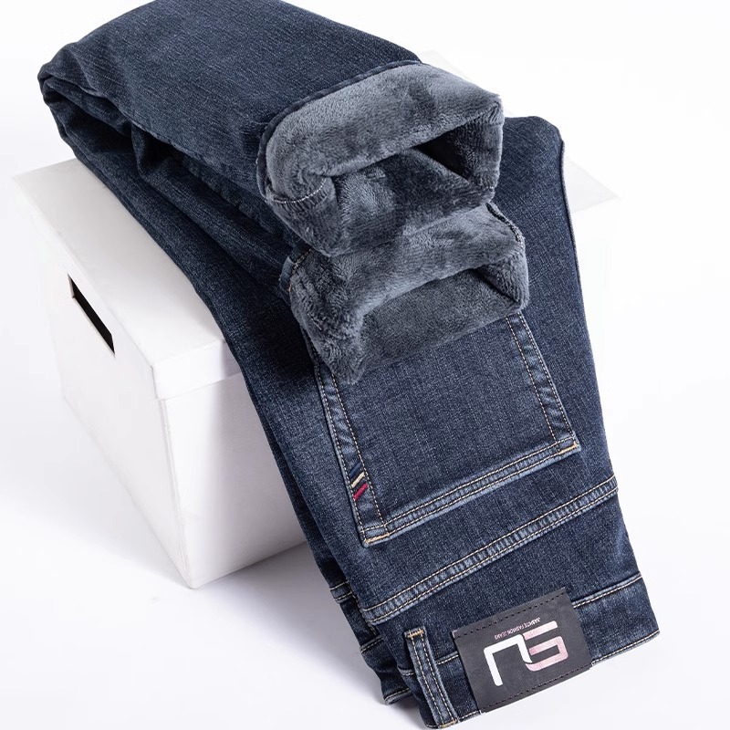 Мужские зимние утепленные джинсы на флисе 2025 года, теплые, больших размеров, для мужчин среднего возраста, свободные прямые брюки из фланели