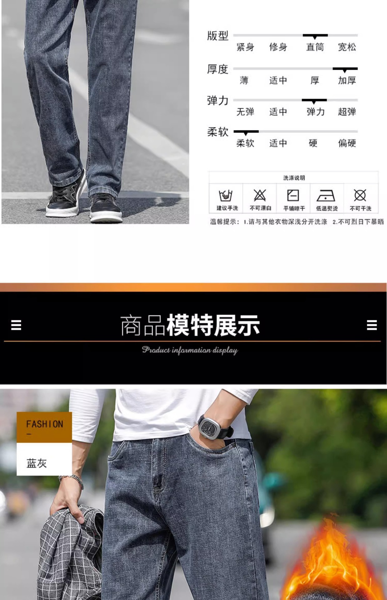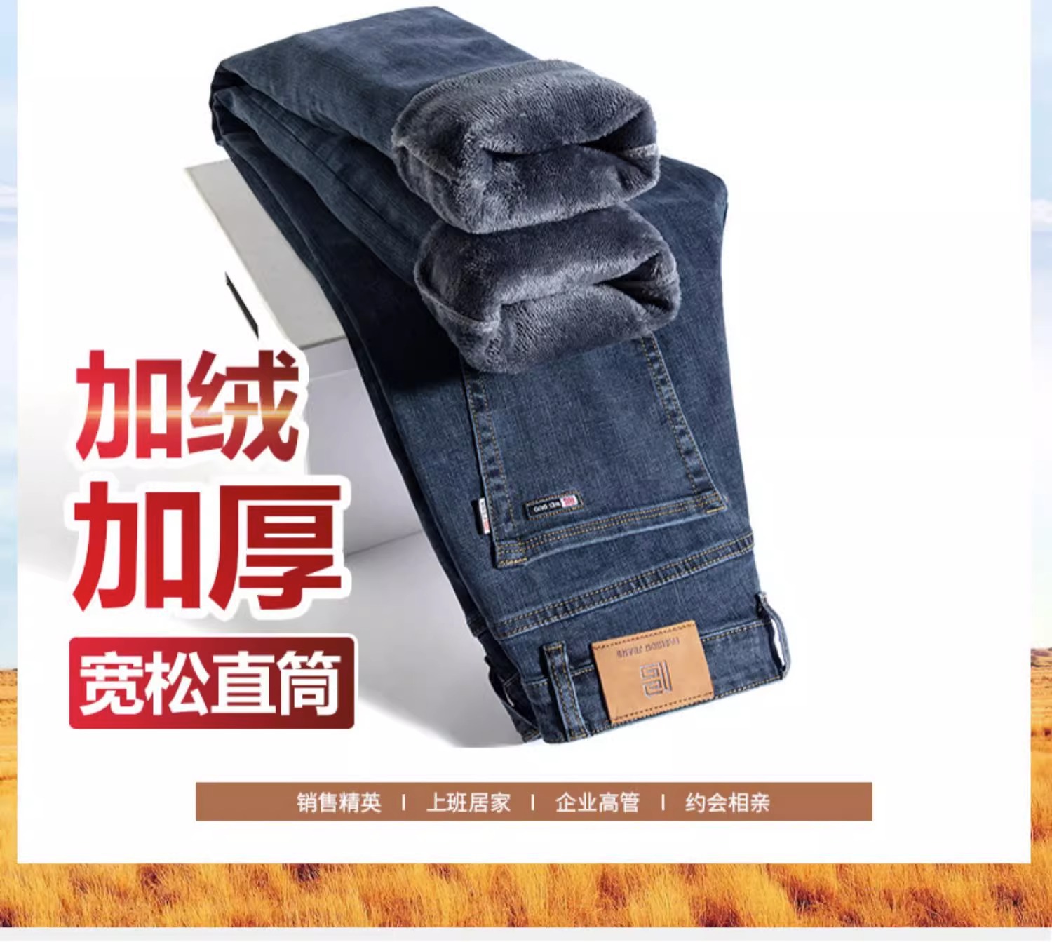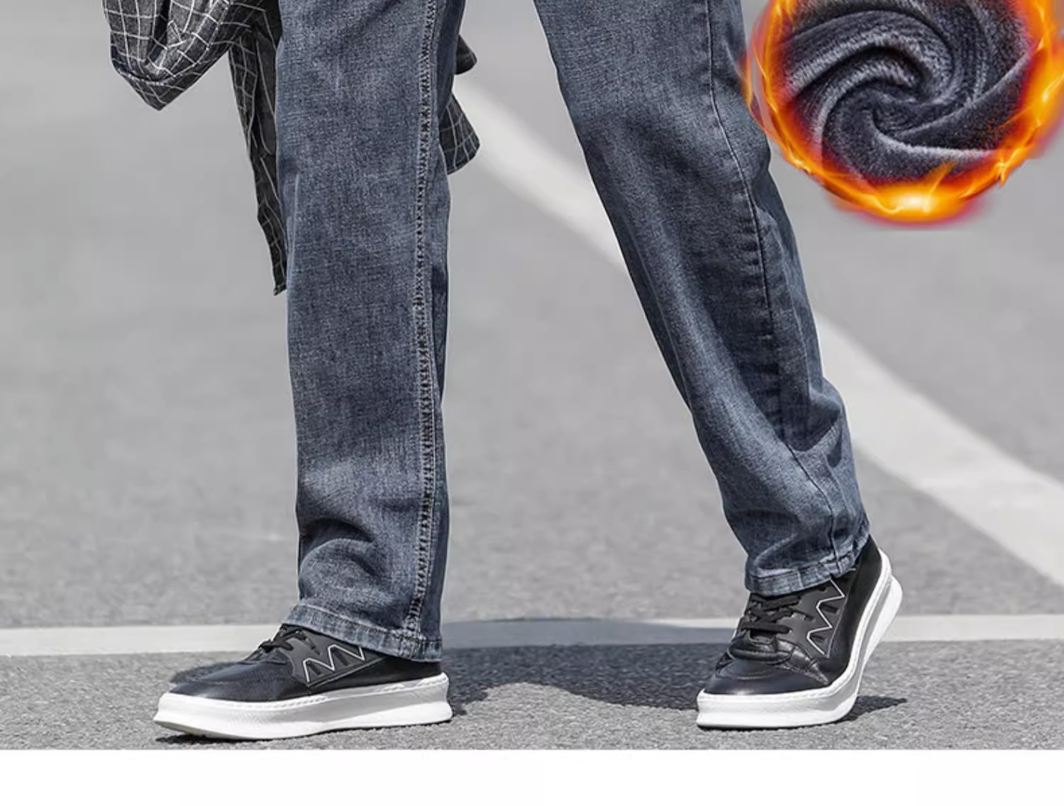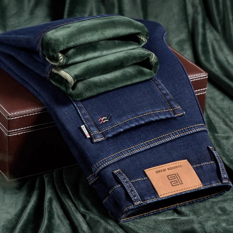 Мужские зимние утепленные джинсы на флисе 2025 года, теплые, больших размеров, для мужчин среднего возраста, свободные прямые брюки из фланели