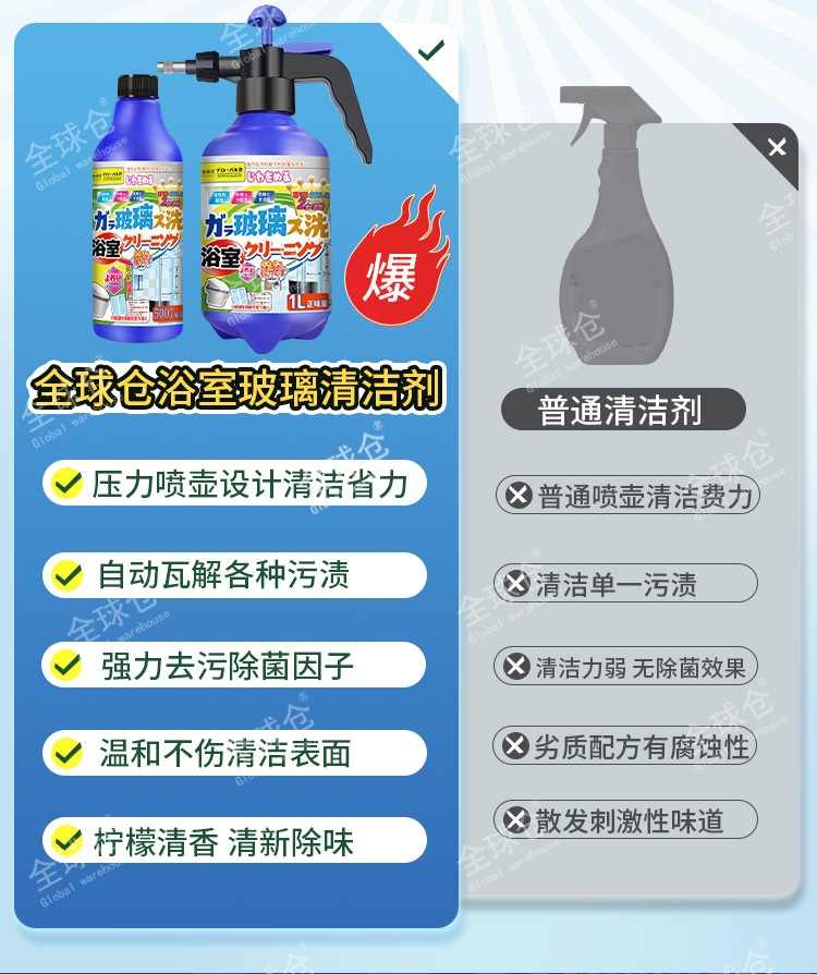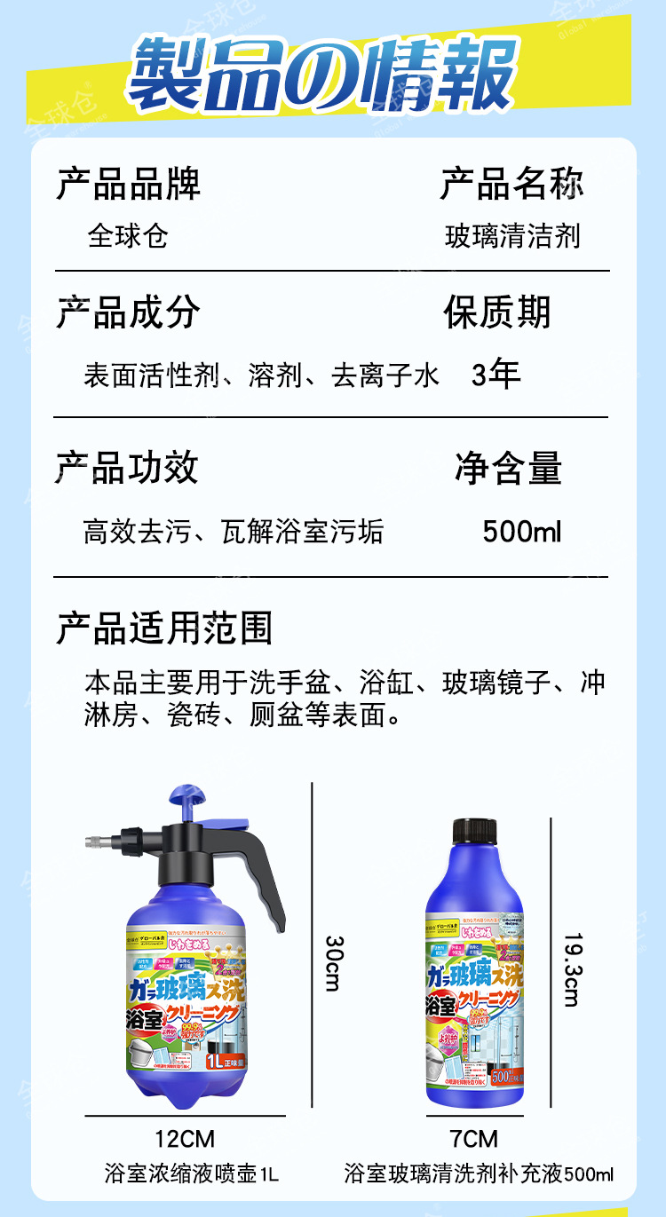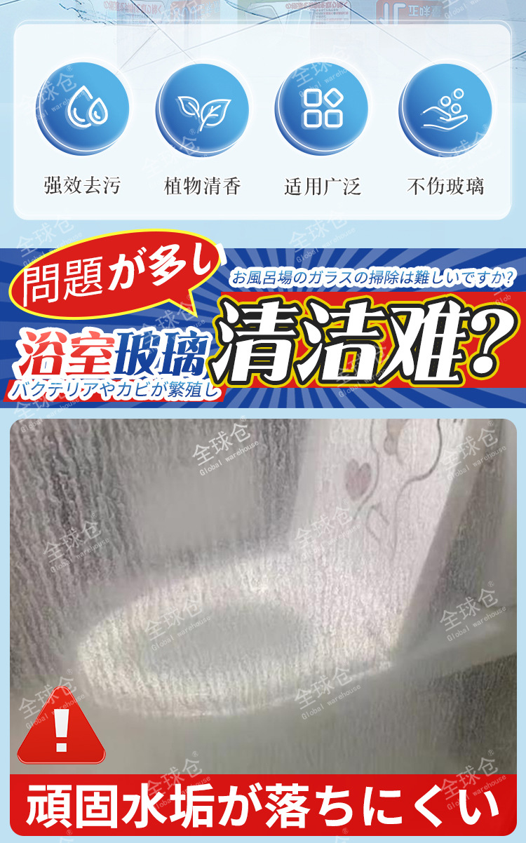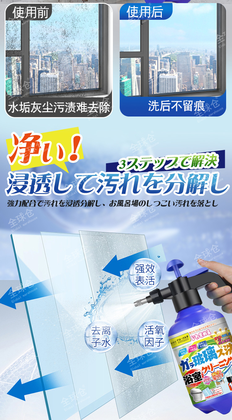Глобальные очистители для ванной комнаты стеклянная ванная комната для удаления накипи моющие плитки Сильная дезактивация ванной ванной ванной ванной пятна воды