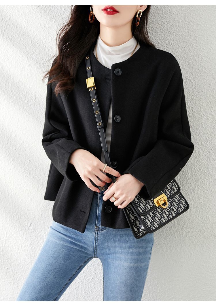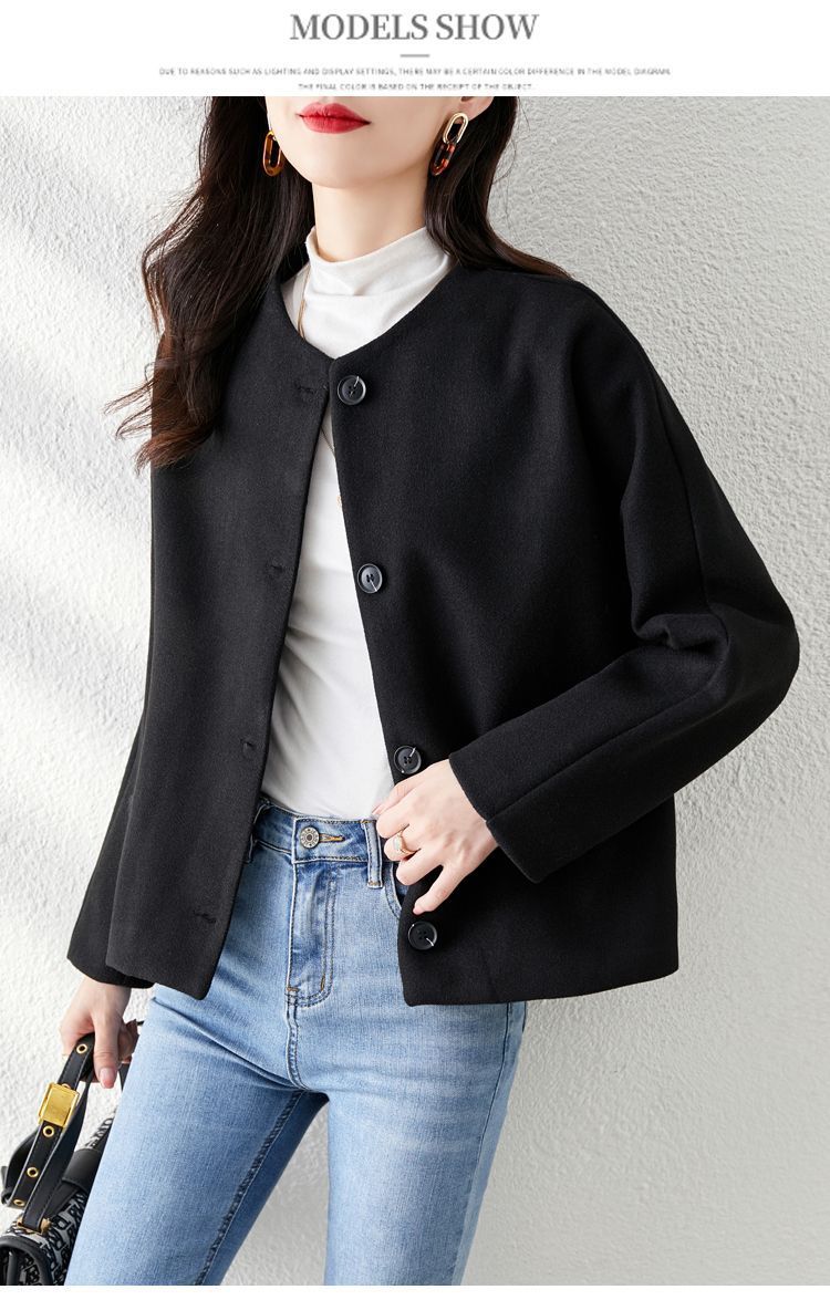 Осенняя и зимняя новая сплошная шерстяная шерстяная куртка женская короткая мода высокого класса свободный маленький топ шерстяная куртка