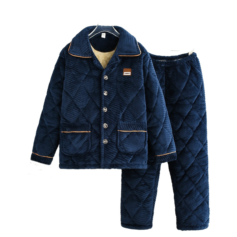 Зимние мужчины среднего и пожилого возраста пижамы фланелевый трехслойный хлопок теплая и утолщая домашняя одежда Молочный бархат мужская одежда оптом
