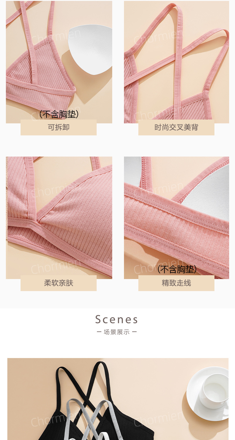 Европейский и американский спортивный стиль дамы съемный дышащий резьбовой хлопок для комфорта без стального кольца нижнее белье тонкая с скрещенными спинами бюстгальтер для женщин