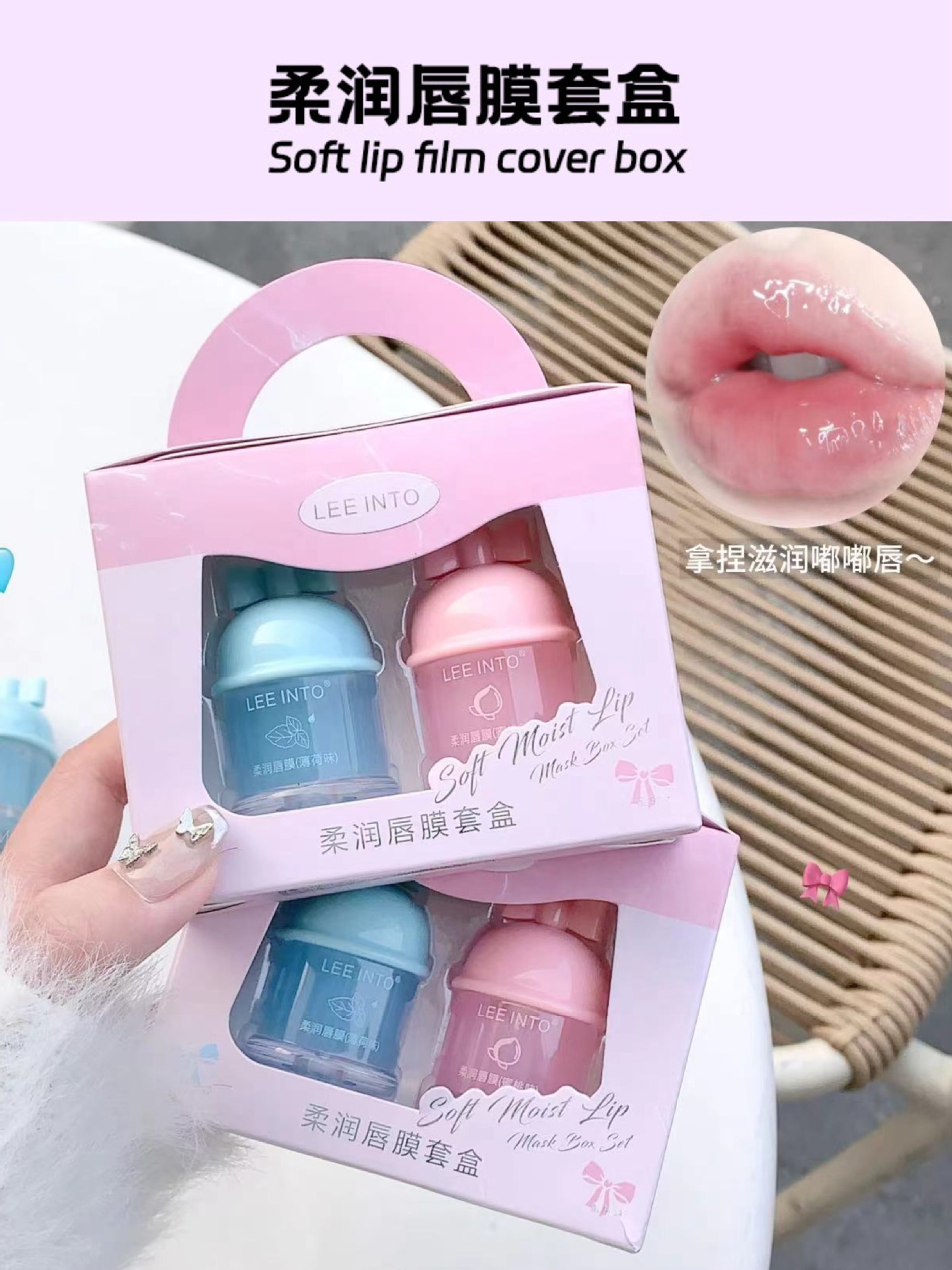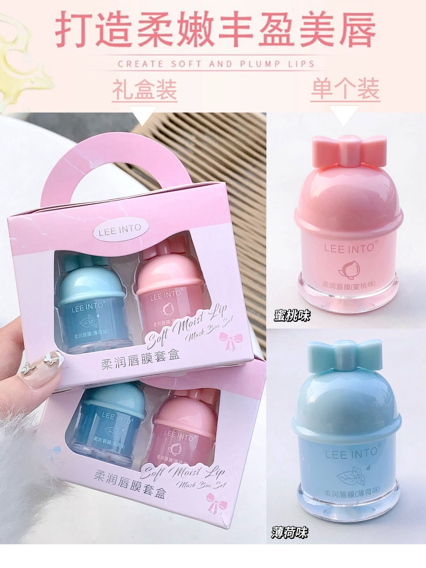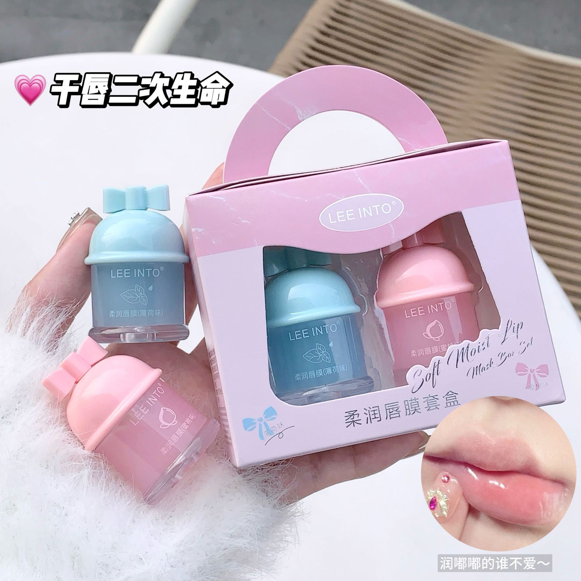 LEEINTO Мягкая маска для губ портативная подарочная коробка, комбинированная дневная и ночная молочная крем, увлажняющая и осветлительная губная губная губная помада