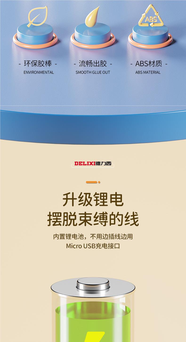 Delixi термоплавкий клей Беспроводная детская ручная бытовая термоплавкая клей зарядная литиевая электрическая небольшая резиновая палочка Горячий растворитель