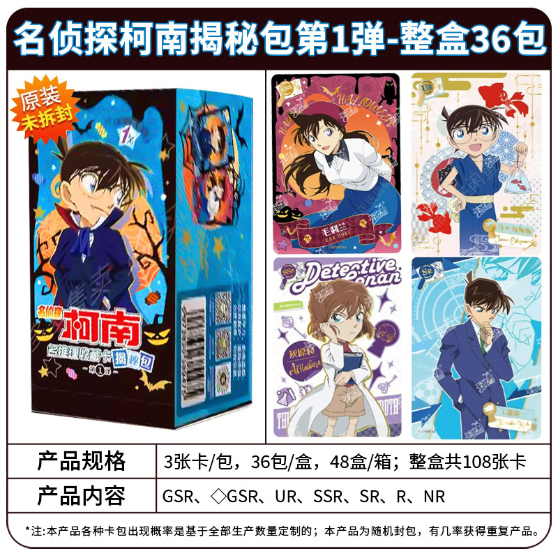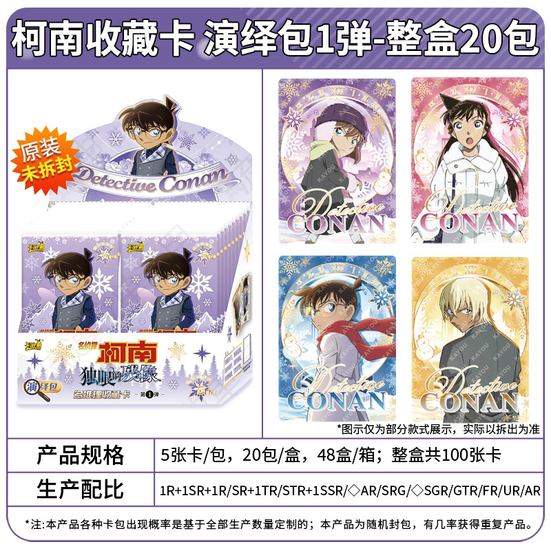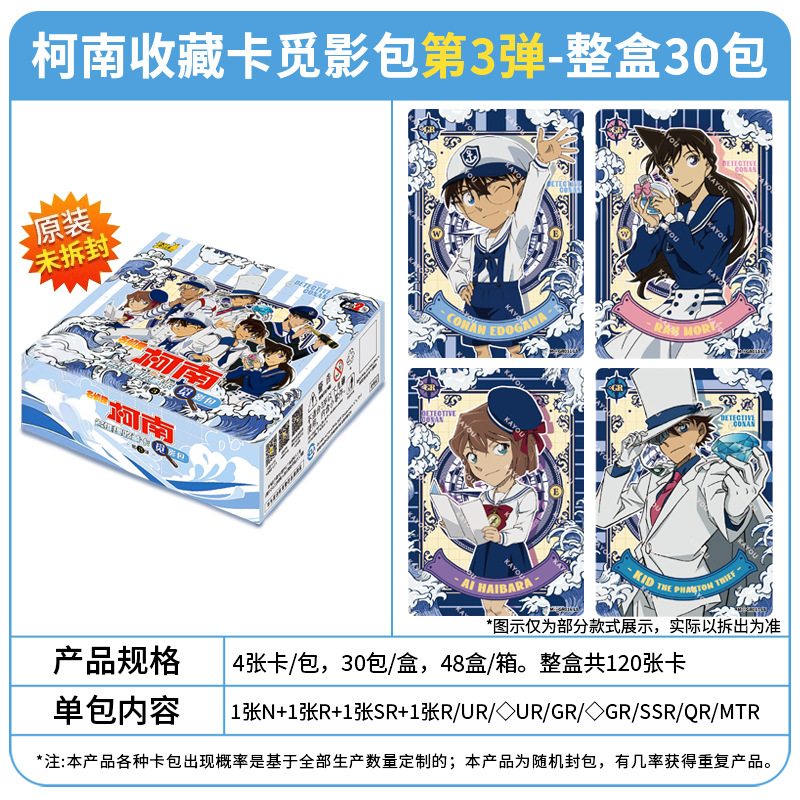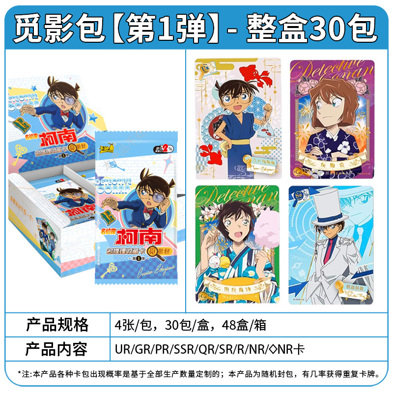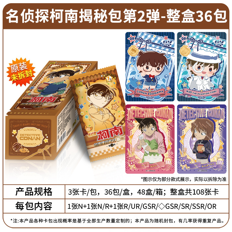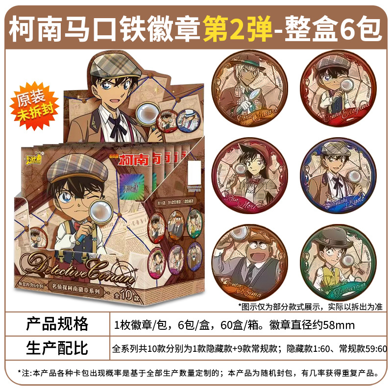 Конан Яо Йе, издание: 5 бомб, 1 маленькая коробка, 12 упаковок (розничная цена: 9 юаней за упаковку); Conan Yaoye Edition 4 пули 1 маленькая коробка 12 упаковок (в розничной упаковке 9 юаней); 6-бомбовый пакет Conan Insight Pack, коробка из 18 упаковок (розничная упаковка по 10 юаней); Пакет Conan Insight Pack с 5 бомбами, коробка из 18 упаковок (розничная упаковка по 10 юаней); 4-бомбовый пакет Conan Insight Pack, коробка из 18 упаковок (розничная упаковка по 10 юаней); Пакет для интерпретации конуса поставляется в коробке по 20 упаковок (в розничной упаковке 5 юаней).; 1 сумка для теней «Бомба Конан», коробка из 5 пакетов (розничная цена 25,6 юаней); Conan Dawn Edition 6 пуль в коробке по 12 штук (в розницу 10 юаней за штуку); Conan Dawn Edition 5 пуль в коробке по 12 штук (в розницу 10 юаней за штуку); Значок из жести Конана, 2 бомбы, коробка из 6 упаковок (розничная цена 15 юаней за упаковку); Значок с одной глазкой статуи Конна поставляется в коробке по 6 упаковок (в розницу 15 юаней в упаковке).; Коробка с подарочным значком на годовщину Конан, 6 упаковок (розничная торговля 15 юаней, 1 упаковка); Конан*анимация*тематические значки, коробка из 6 упаковок (розничная цена 15 юаней за упаковку); Значок с тематикой комиксов Конана, 2 упаковки в коробке по 6 упаковок (розничная цена 15 юаней за упаковку); Значки на тему комиксов Конана в коробке по 6 упаковок (розничная цена 15 юаней за упаковку); Коробка значков ко 30-летию Конана, 6 упаковок (розничная цена 15 юаней за упаковку); Резной золотой значок Конан (6 упаковок во всей коробке); 3 пули Версия Starlight Conan, 12 упаковок в коробке (в розничной упаковке 30 юаней); 1 коробка Conan Starlight Edition, 12 упаковок (розничная упаковка 30 юаней); 3 бомбы Conan's Shadow Pack, коробка из 30 упаковок (розничная цена 2 юаня за упаковку); 2-пакетный пакет Conan Shadow Pack, коробка из 30 пакетов (розничная упаковка по 2 юаня); 1 коробка набора «Охота за тенями Конана», 30 упаковок (розничная упаковка по 2 юаня); 1 коллекционная книга истины (розничная цена 128 юаней); Conan Standing Puzzle Edition, 3-е издание, полная коробка из 12 упаковок (розничная упаковка за 20 юаней); Магниты на тему комиксов Конана в коробке по 6 упаковок (розничная упаковка 20 юаней); Conan Revealed Pack 1 Bullet Полная коробка из 36 упаковок (розничная упаковка по 1 юаню); Conan's Mystery Pack Vol. 2 — полная коробка из 36 упаковок (розничная цена: 1 юань за упаковку)