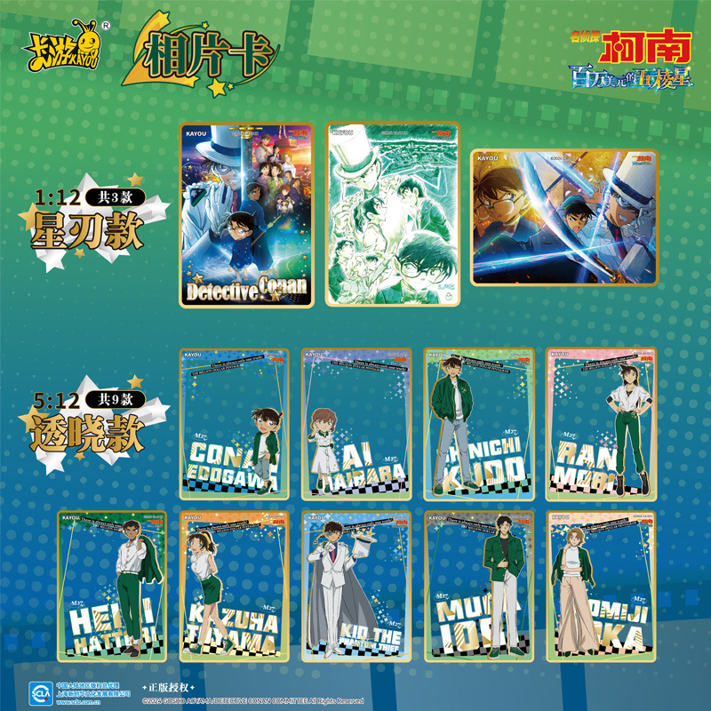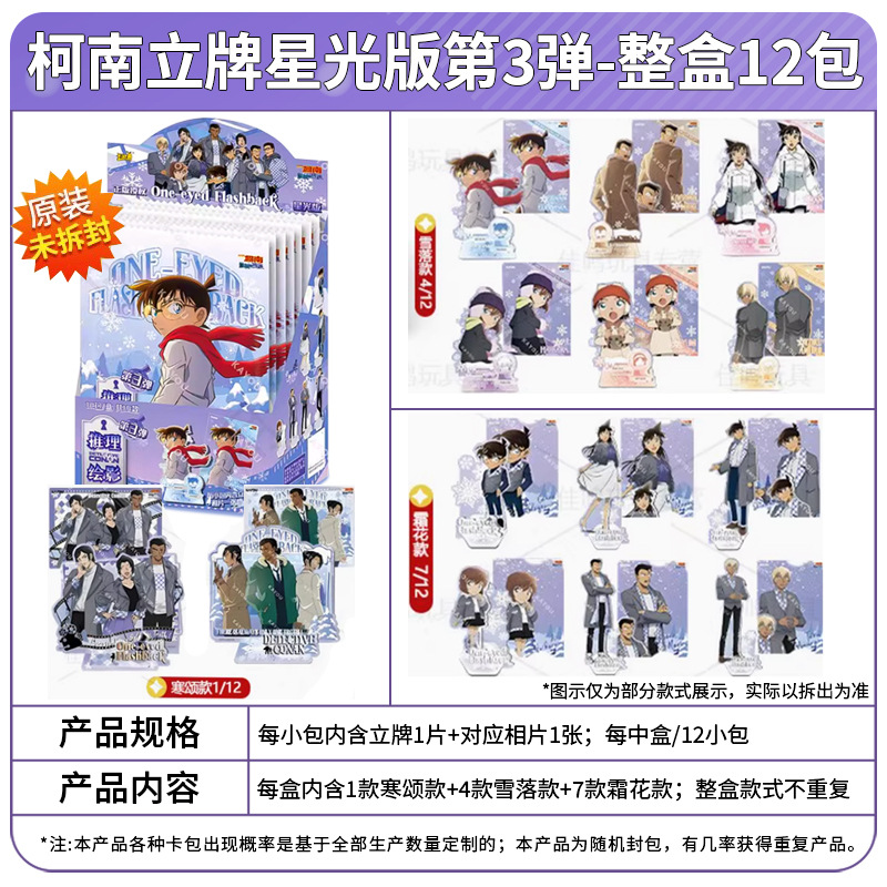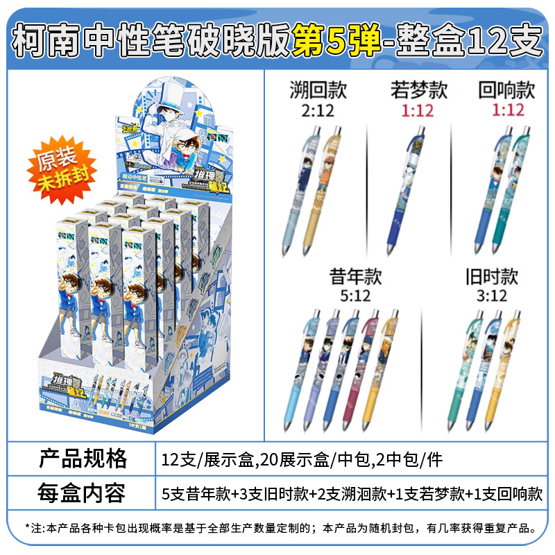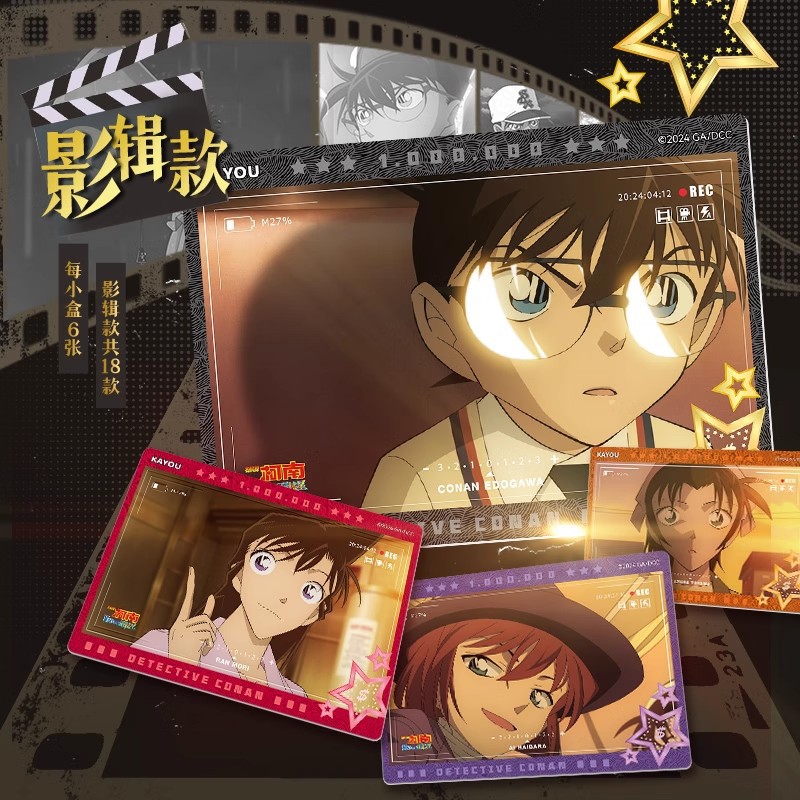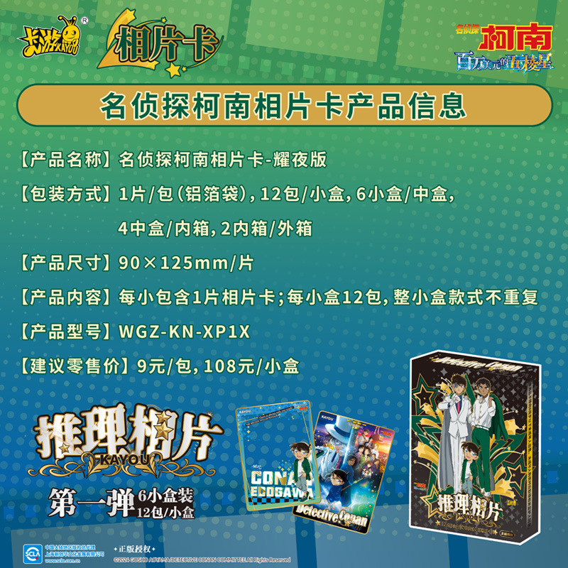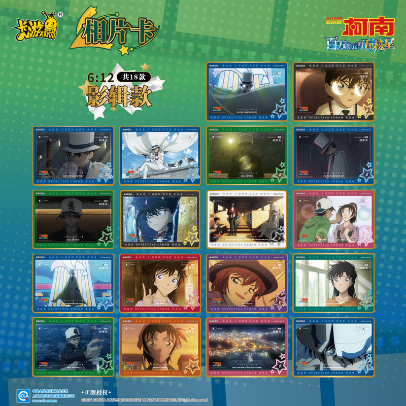 Конан Яо Йе, издание: 5 бомб, 1 маленькая коробка, 12 упаковок (розничная цена: 9 юаней за упаковку); Conan Yaoye Edition 4 пули 1 маленькая коробка 12 упаковок (в розничной упаковке 9 юаней); 6-бомбовый пакет Conan Insight Pack, коробка из 18 упаковок (розничная упаковка по 10 юаней); Пакет Conan Insight Pack с 5 бомбами, коробка из 18 упаковок (розничная упаковка по 10 юаней); 4-бомбовый пакет Conan Insight Pack, коробка из 18 упаковок (розничная упаковка по 10 юаней); Пакет для интерпретации конуса поставляется в коробке по 20 упаковок (в розничной упаковке 5 юаней).; 1 сумка для теней «Бомба Конан», коробка из 5 пакетов (розничная цена 25,6 юаней); Conan Dawn Edition 6 пуль в коробке по 12 штук (в розницу 10 юаней за штуку); Conan Dawn Edition 5 пуль в коробке по 12 штук (в розницу 10 юаней за штуку); Значок из жести Конана, 2 бомбы, коробка из 6 упаковок (розничная цена 15 юаней за упаковку); Значок с одной глазкой статуи Конна поставляется в коробке по 6 упаковок (в розницу 15 юаней в упаковке).; Коробка с подарочным значком на годовщину Конан, 6 упаковок (розничная торговля 15 юаней, 1 упаковка); Конан*анимация*тематические значки, коробка из 6 упаковок (розничная цена 15 юаней за упаковку); Значок с тематикой комиксов Конана, 2 упаковки в коробке по 6 упаковок (розничная цена 15 юаней за упаковку); Значки на тему комиксов Конана в коробке по 6 упаковок (розничная цена 15 юаней за упаковку); Коробка значков ко 30-летию Конана, 6 упаковок (розничная цена 15 юаней за упаковку); Резной золотой значок Конан (6 упаковок во всей коробке); 3 пули Версия Starlight Conan, 12 упаковок в коробке (в розничной упаковке 30 юаней); 1 коробка Conan Starlight Edition, 12 упаковок (розничная упаковка 30 юаней); 3 бомбы Conan's Shadow Pack, коробка из 30 упаковок (розничная цена 2 юаня за упаковку); 2-пакетный пакет Conan Shadow Pack, коробка из 30 пакетов (розничная упаковка по 2 юаня); 1 коробка набора «Охота за тенями Конана», 30 упаковок (розничная упаковка по 2 юаня); 1 коллекционная книга истины (розничная цена 128 юаней); Conan Standing Puzzle Edition, 3-е издание, полная коробка из 12 упаковок (розничная упаковка за 20 юаней); Магниты на тему комиксов Конана в коробке по 6 упаковок (розничная упаковка 20 юаней); Conan Revealed Pack 1 Bullet Полная коробка из 36 упаковок (розничная упаковка по 1 юаню); Conan's Mystery Pack Vol. 2 — полная коробка из 36 упаковок (розничная цена: 1 юань за упаковку)
