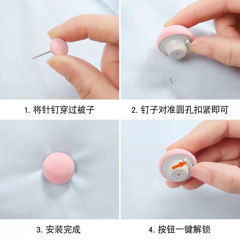 Простыня, одеяло, пододеяльник, противоскользящие крепления, невидимые булавки для крепления наполнителя одеяла, инструмент для предотвращения скольжения.