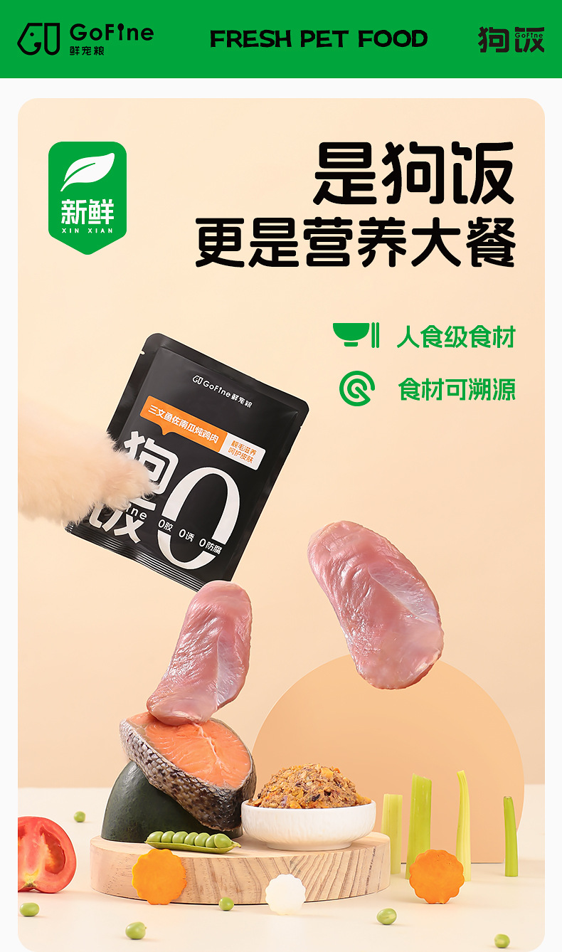 GoFine полнокачественный питательный свежий мясной влажный корм для собак с рисом, универсальный основной корм для собак маленьких размеров, свежий корм для собак, консервированные закуски для собак