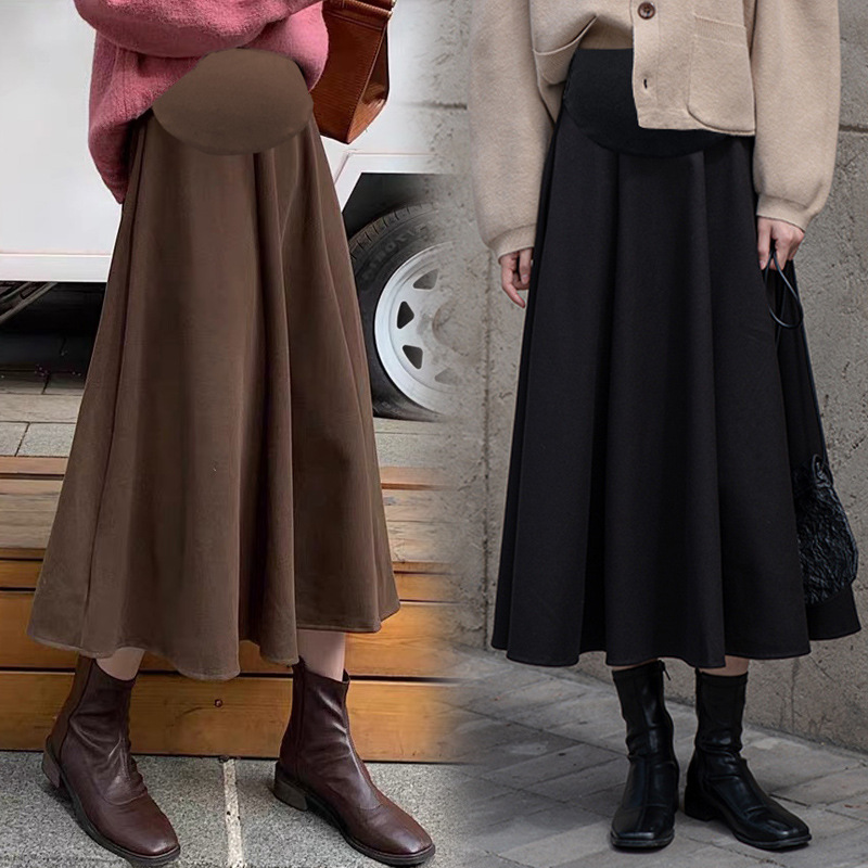 Спотовая одежда для беременных шерстяная 2024 новая юбка с бюстом осенью и зимой носить тонкую среднюю и длинную юбку с высокой талией