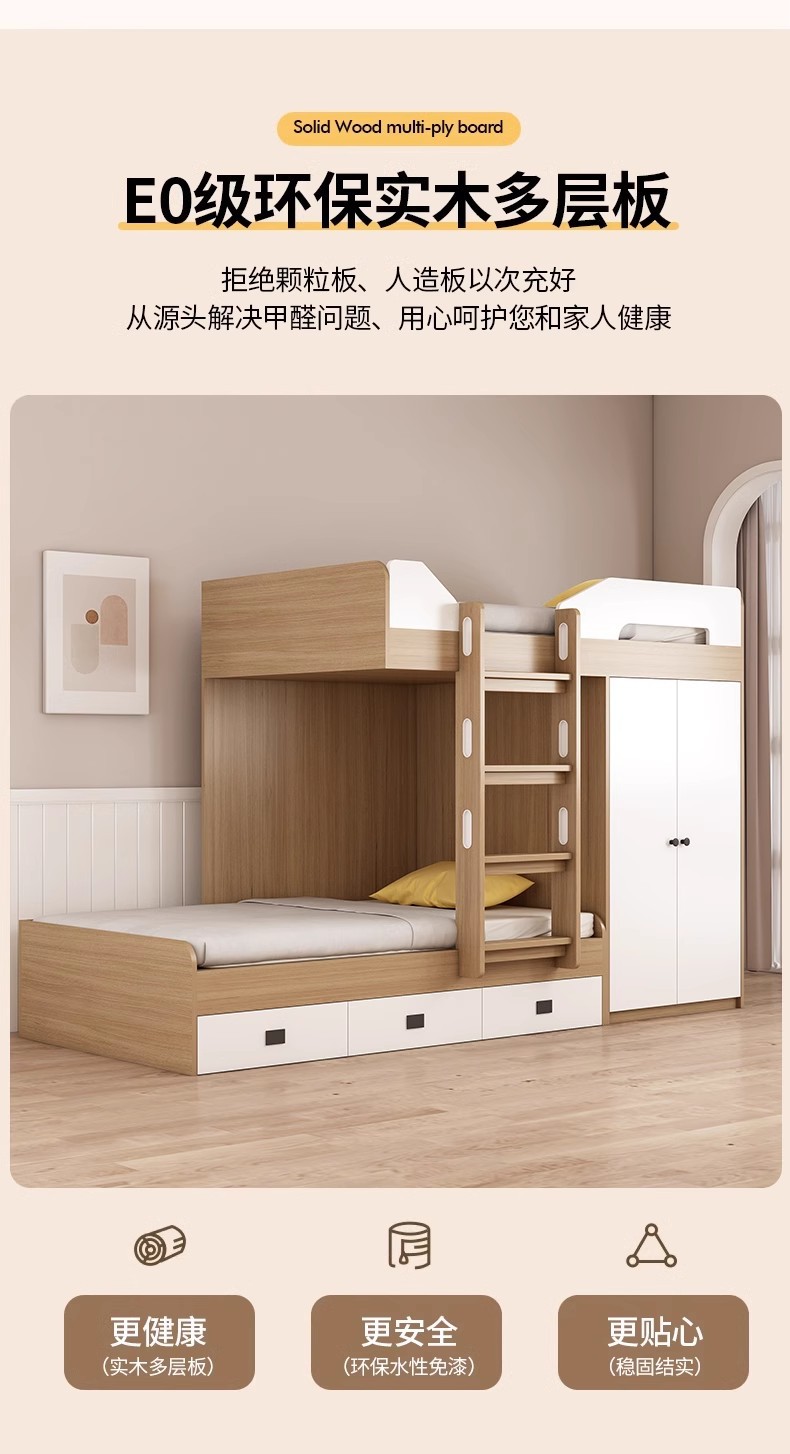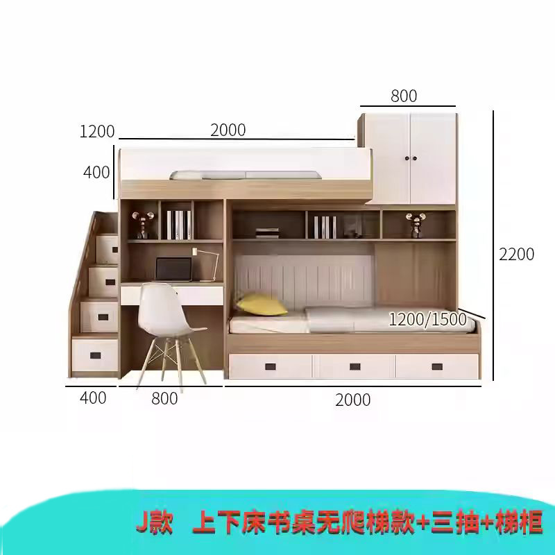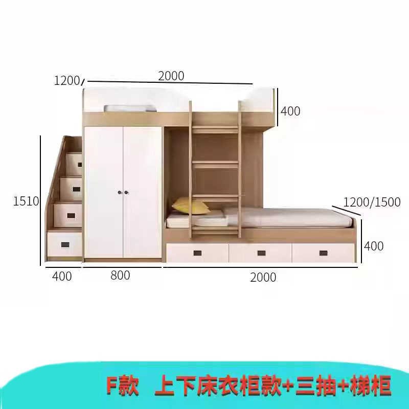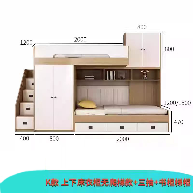Двухъярусная кровать с гардеробной, комбинированная кровать, двухъярусная кровать для маленькой квартиры, высокая и низкая кровать, детская кровать, двуспальная кровать