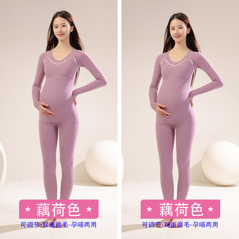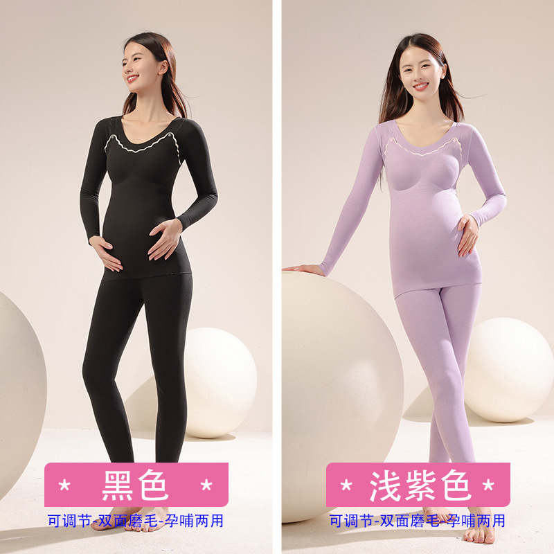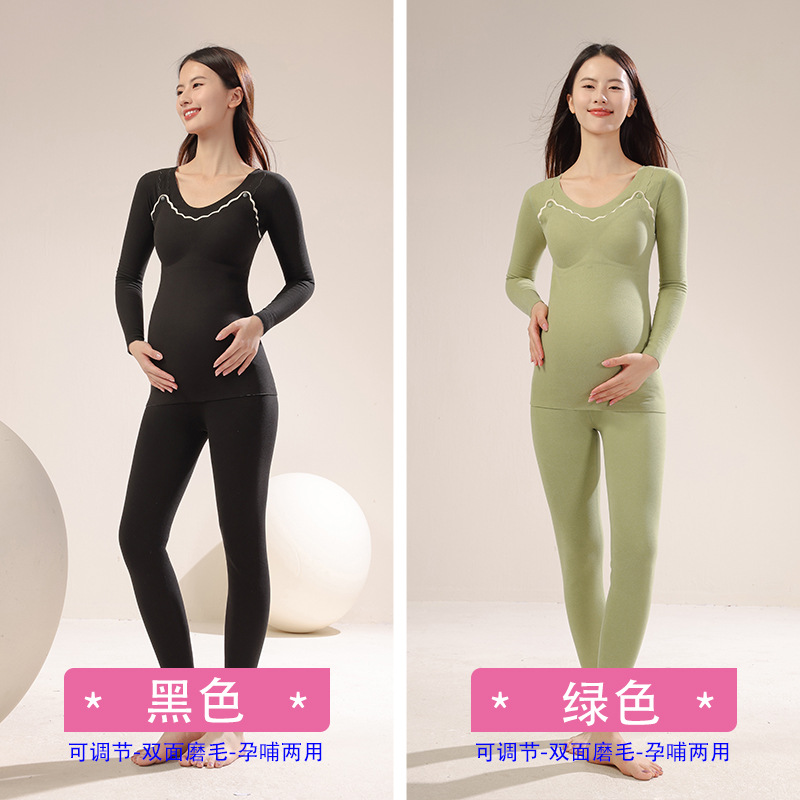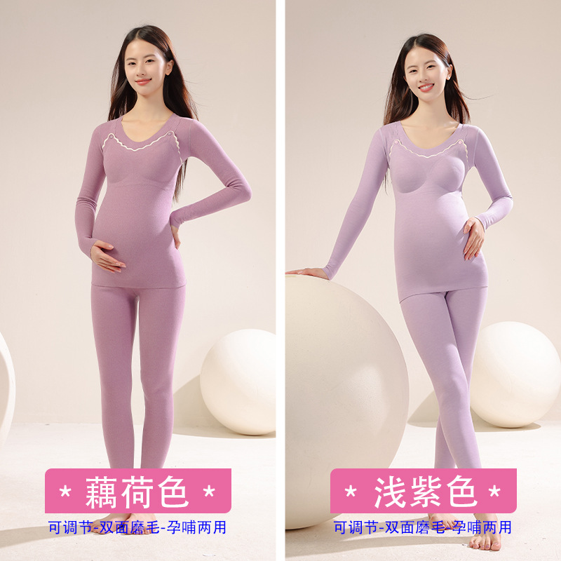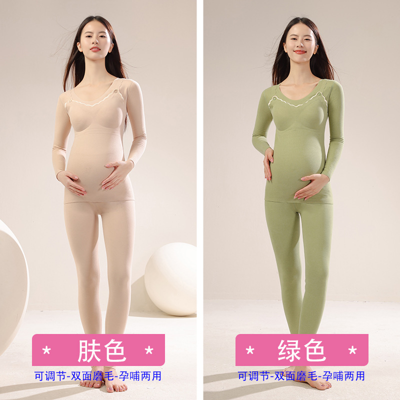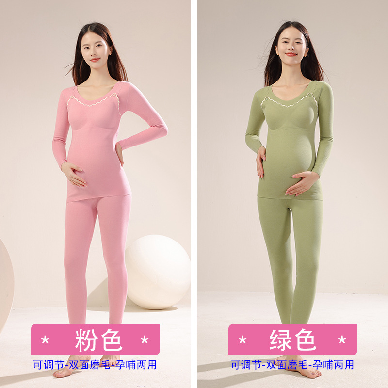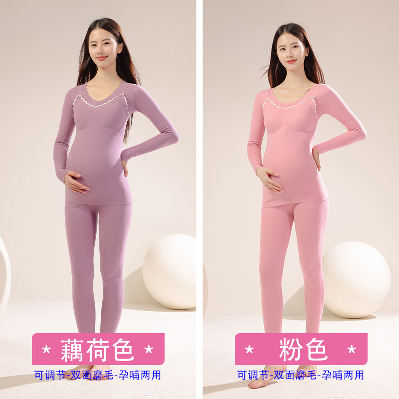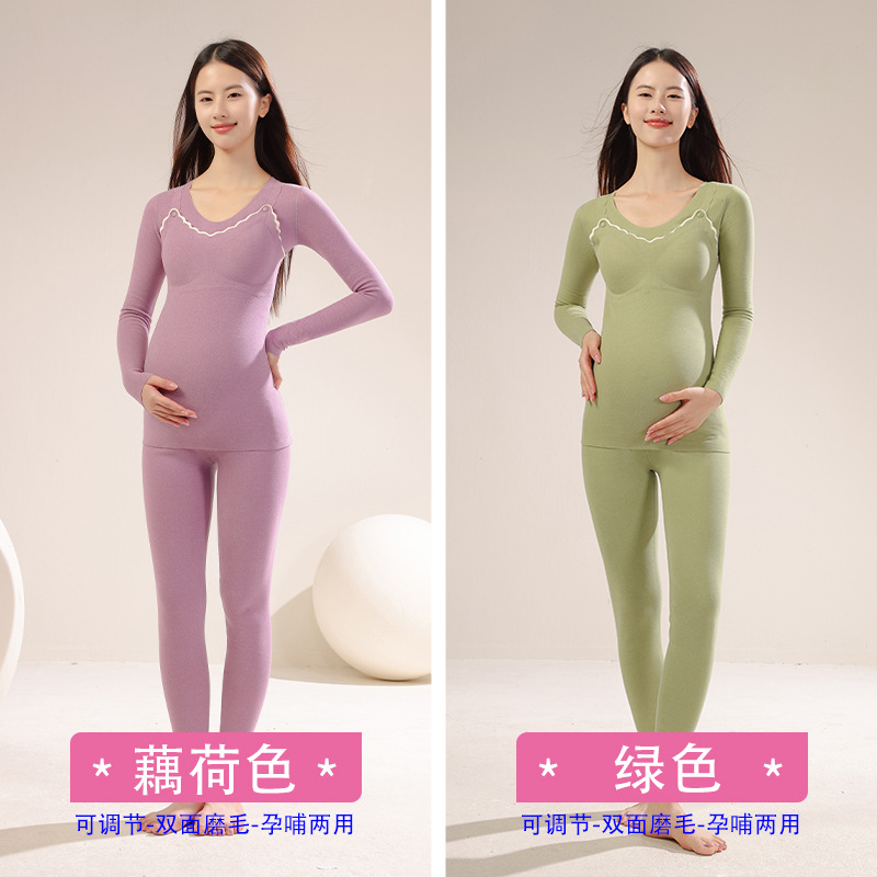 [Один кусок волос] Беременные женщины без бюстгальтера плюс бархатное термобелье Материнства комплект осенняя одежда осенние брюки кормящие 666