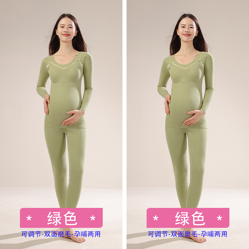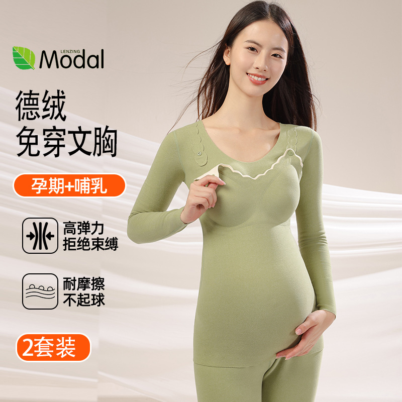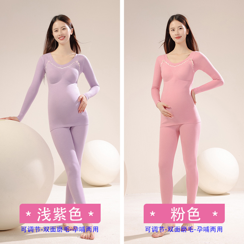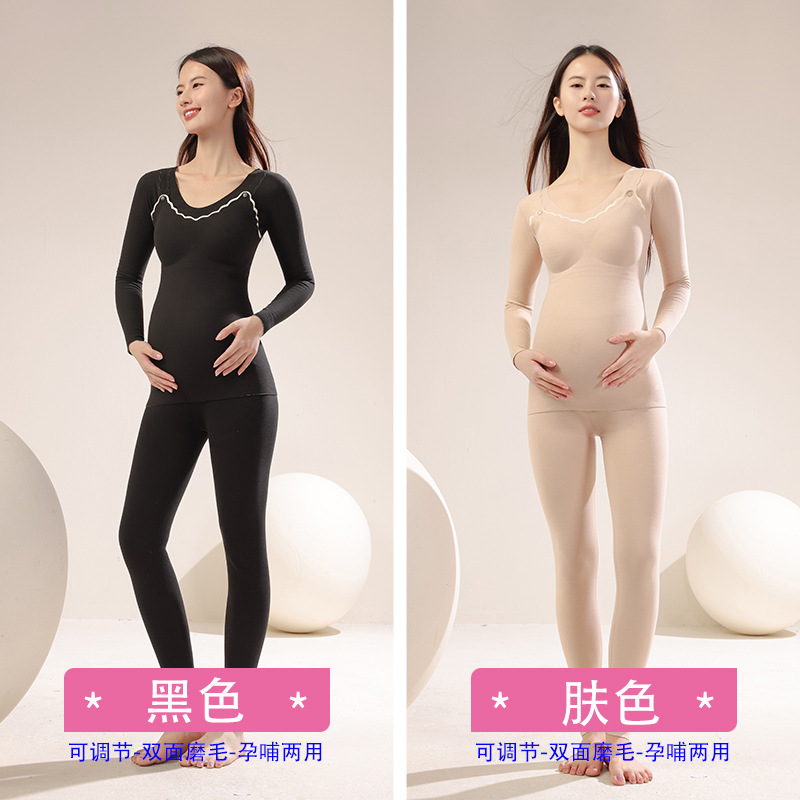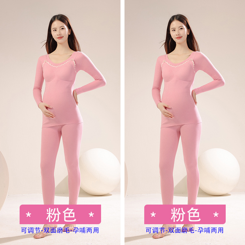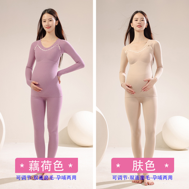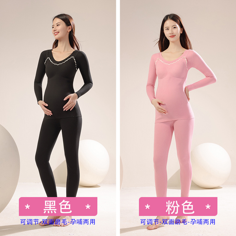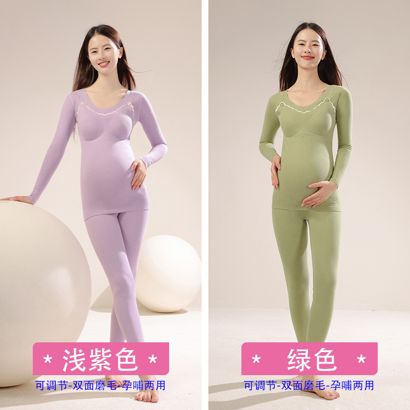 [Один кусок волос] Беременные женщины без бюстгальтера плюс бархатное термобелье Материнства комплект осенняя одежда осенние брюки кормящие 666