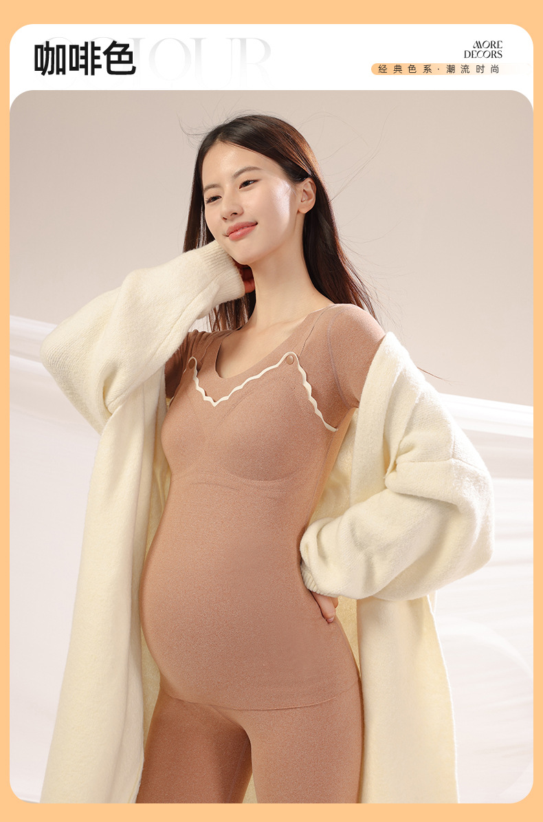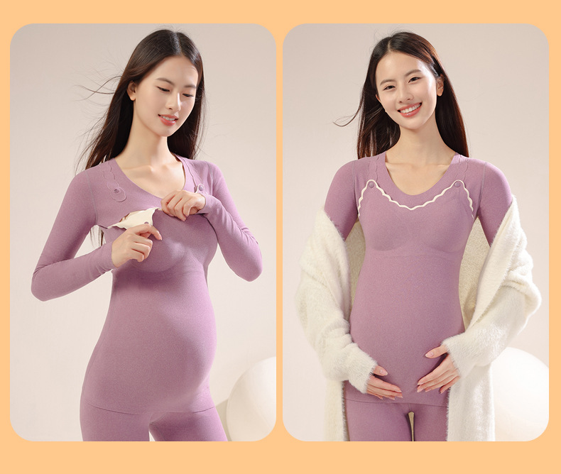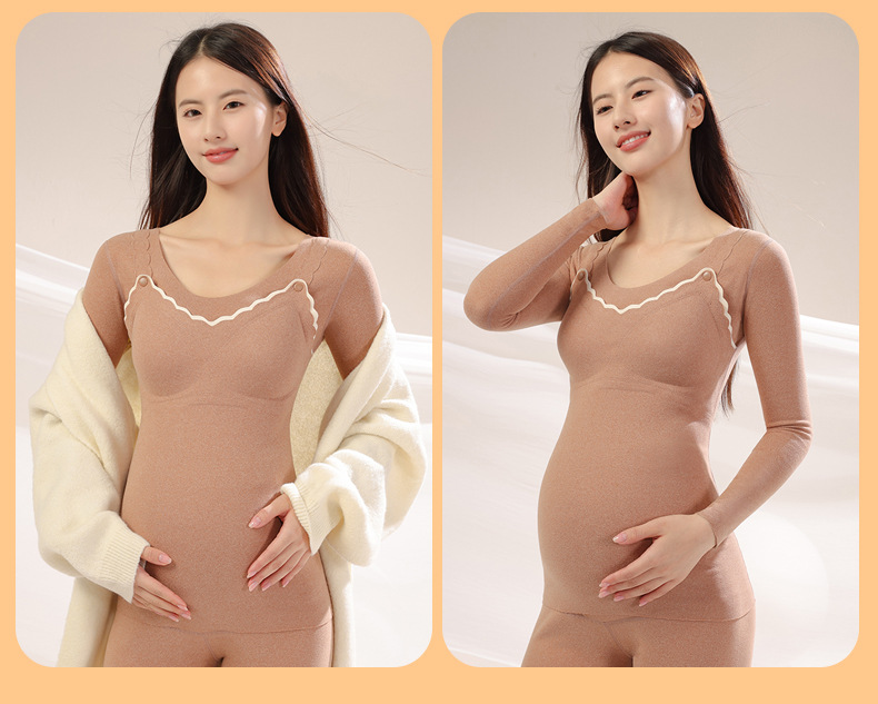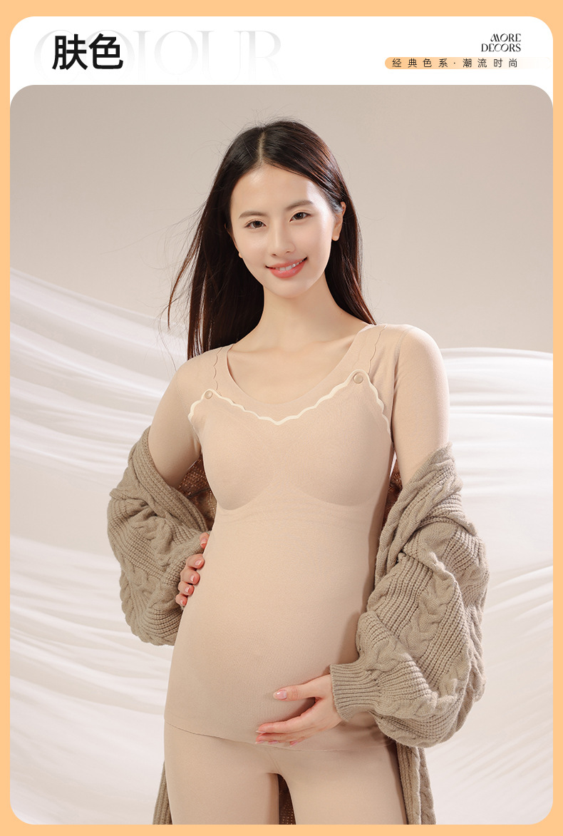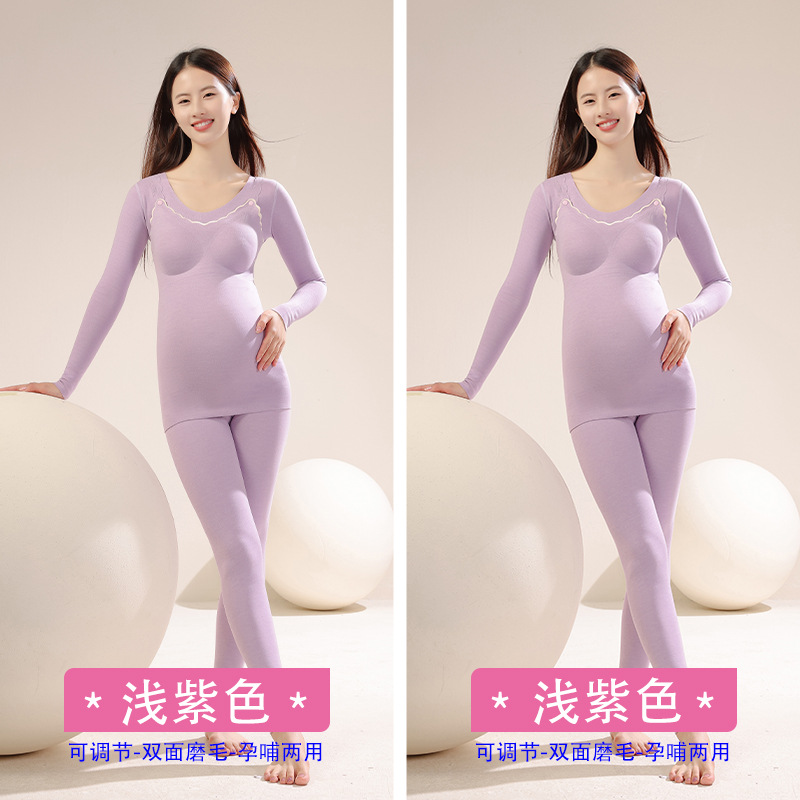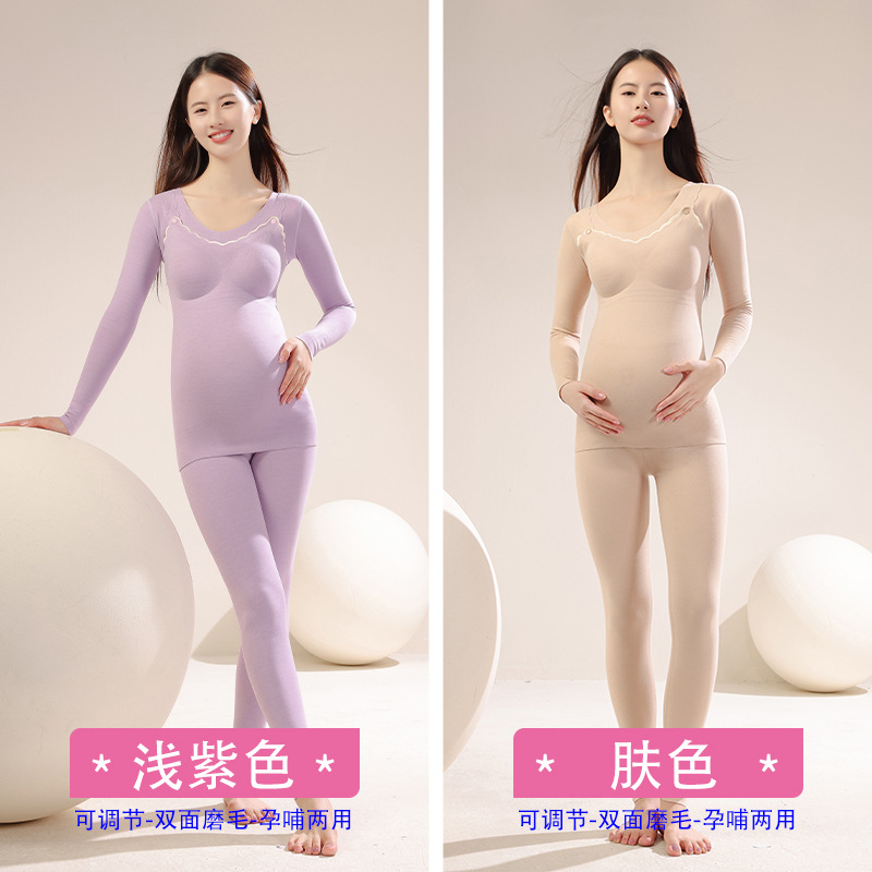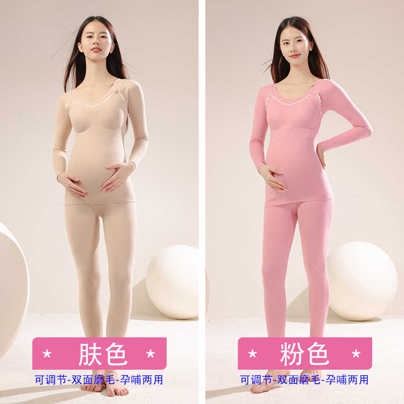 [Один кусок волос] Беременные женщины без бюстгальтера плюс бархатное термобелье Материнства комплект осенняя одежда осенние брюки кормящие 666