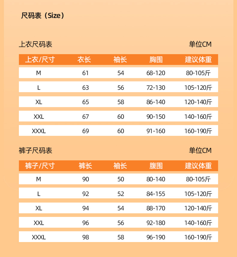 М【 40-52.5kg 】; L【 50-60kg 】; XL【 60-70kg 】; XXL【 70-80kg 】; XXXL【 80-95kg 】