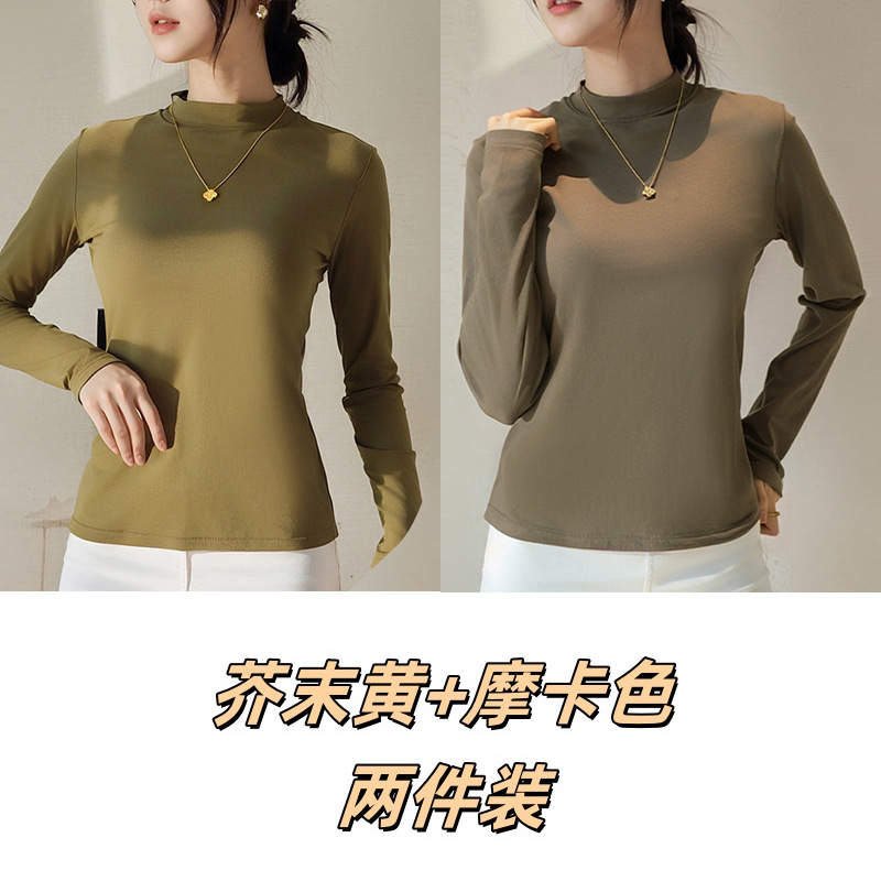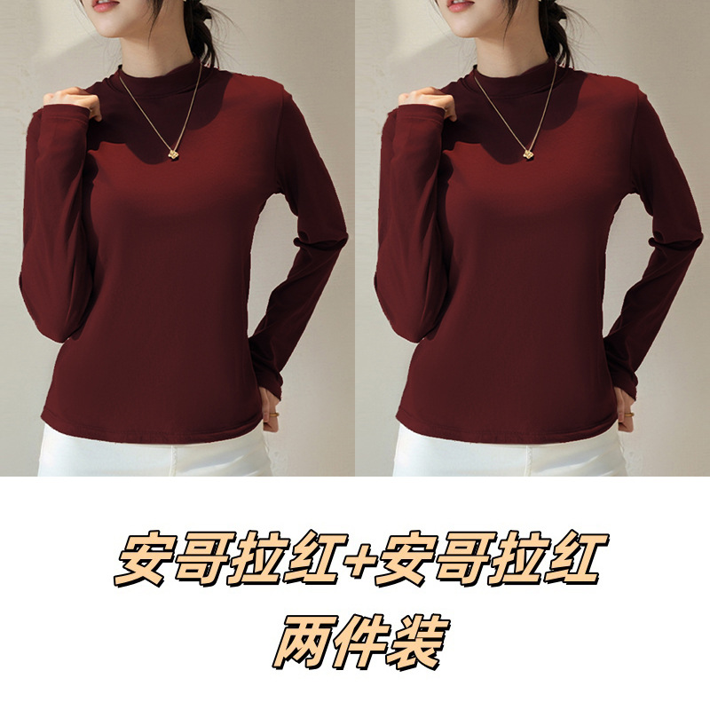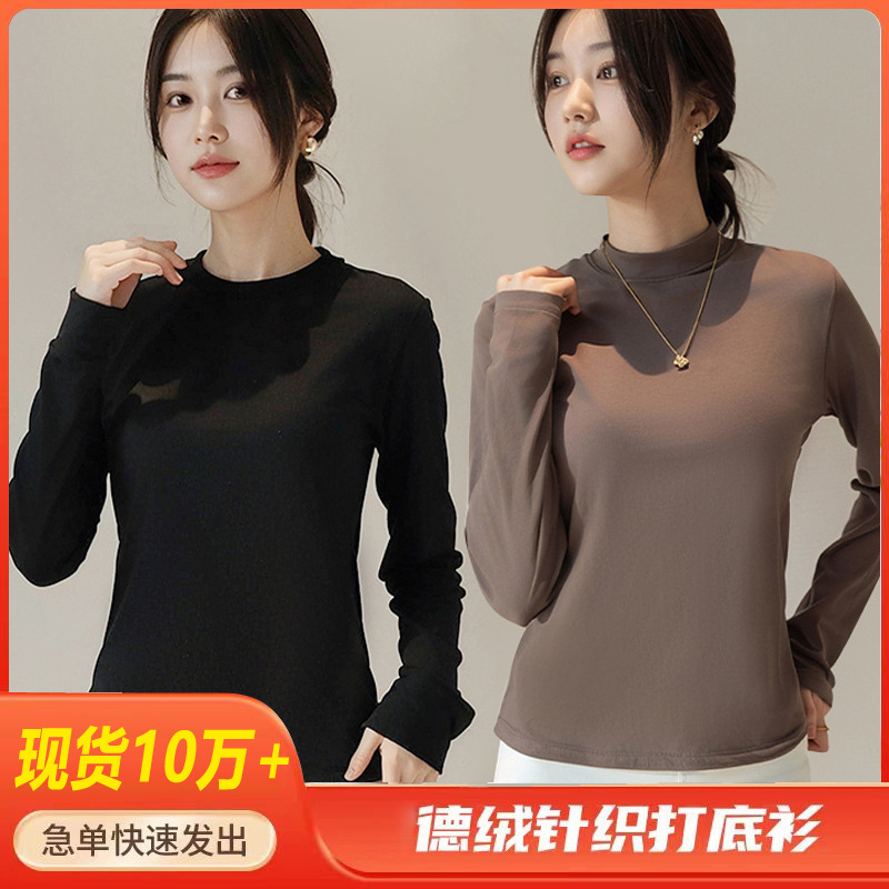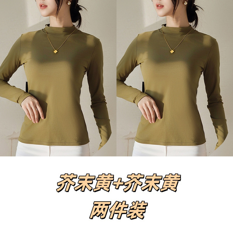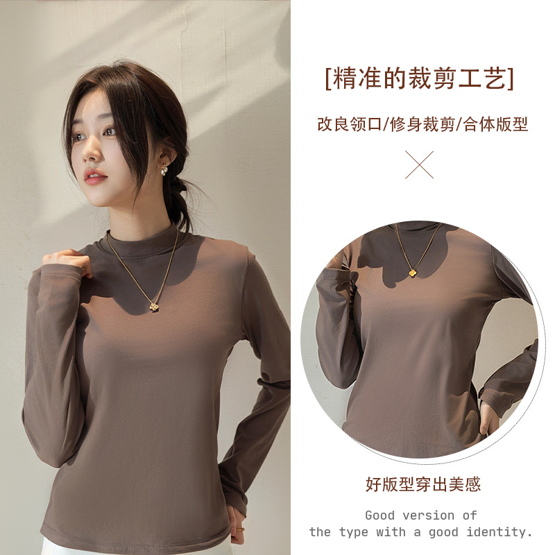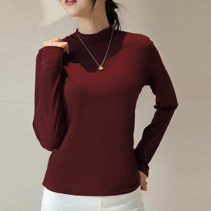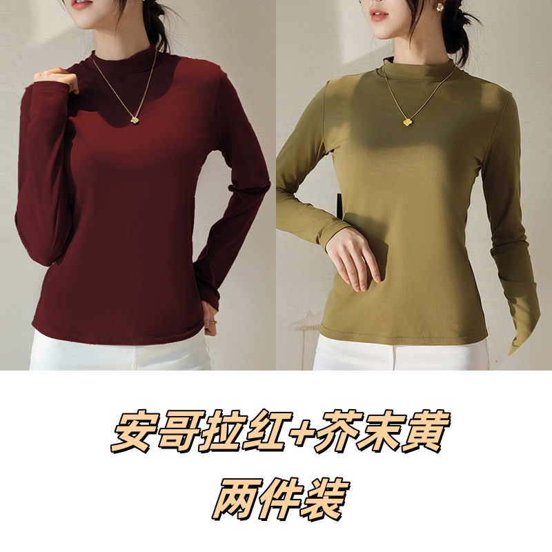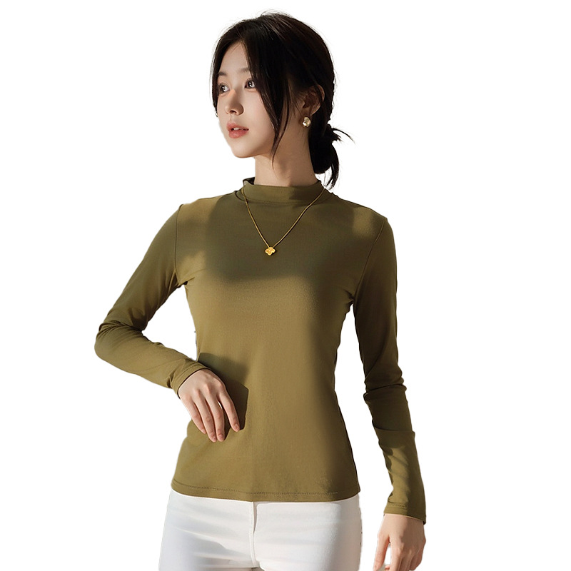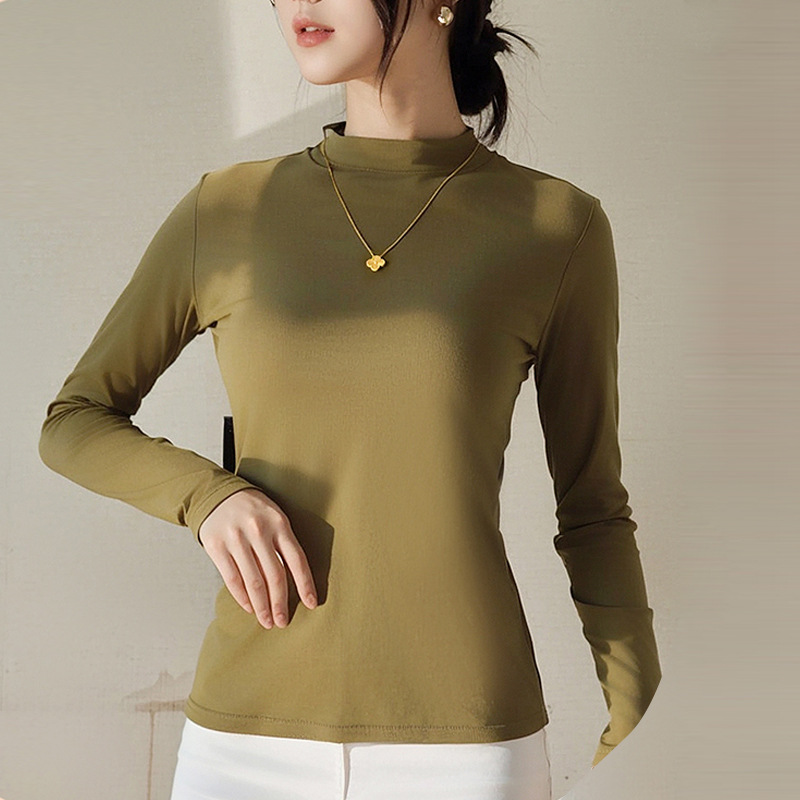 Двусторонняя бархатная рубашка с половиной высоким воротником, новинка весны и осени, облегающий однотонный внутренний топ с длинными рукавами, женский вырез с резьбой