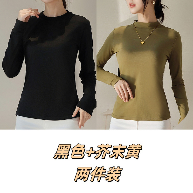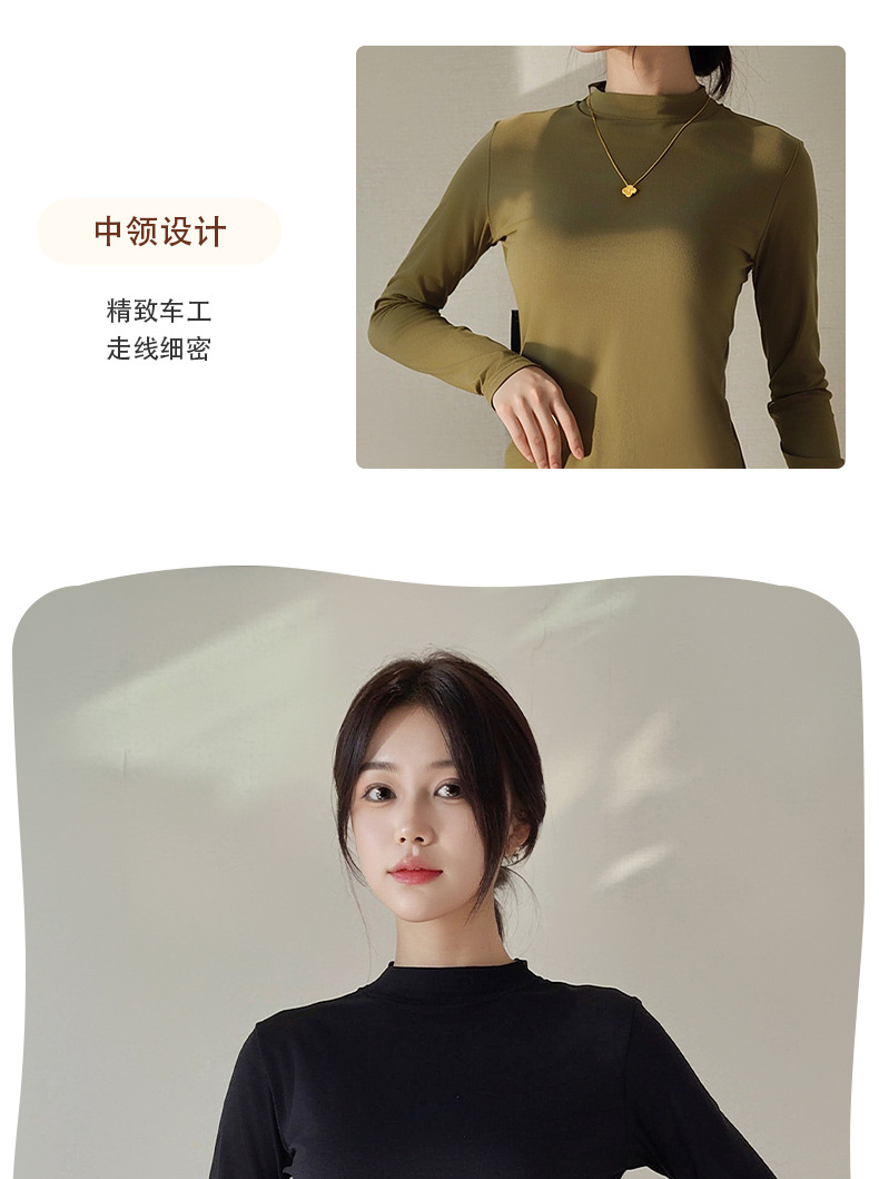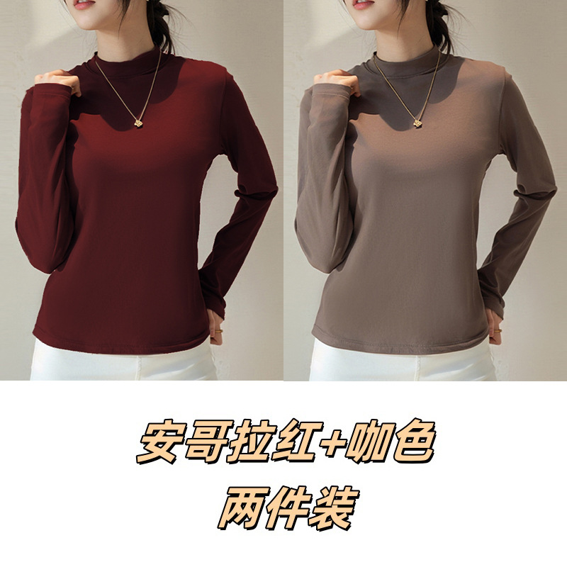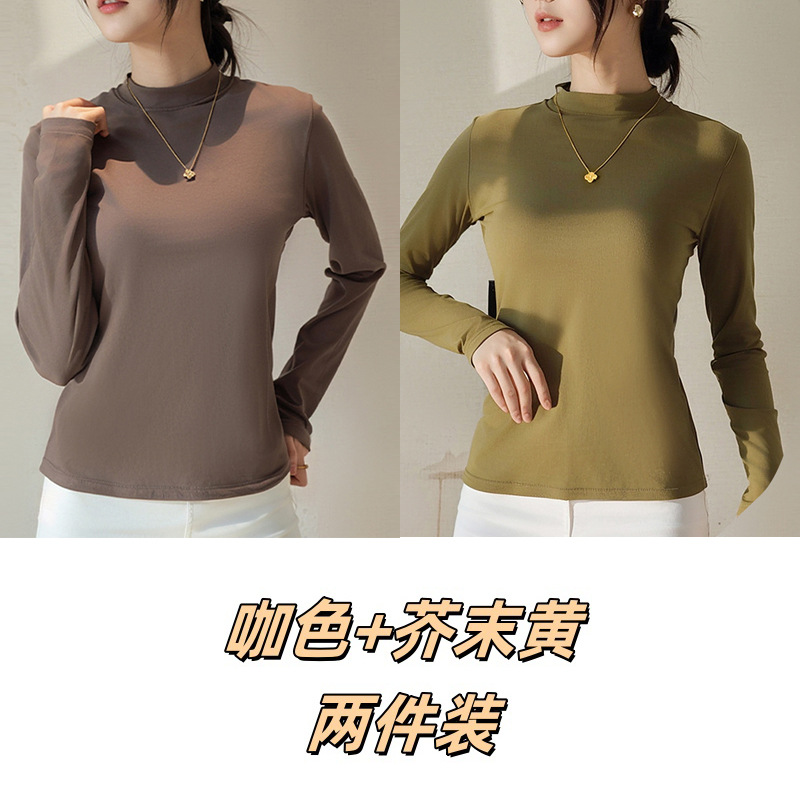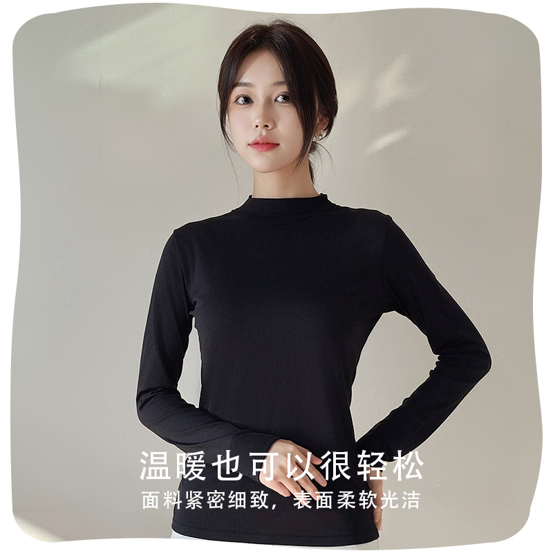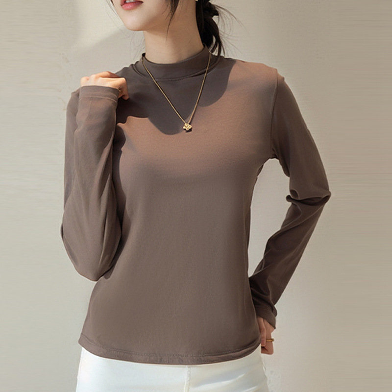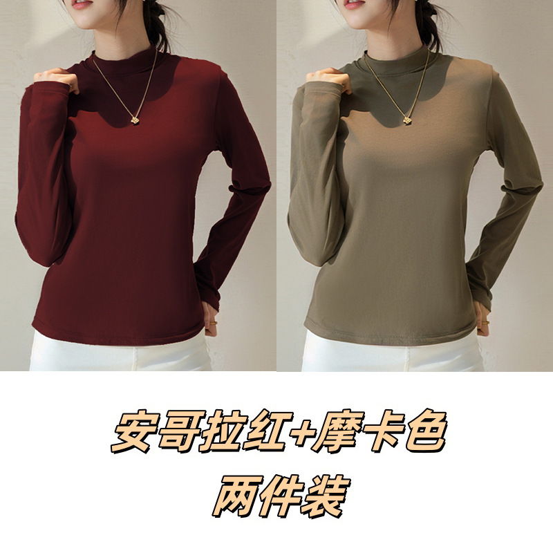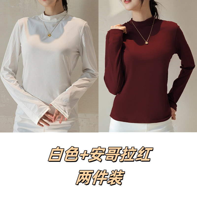 Двусторонняя бархатная рубашка с половиной высоким воротником, новинка весны и осени, облегающий однотонный внутренний топ с длинными рукавами, женский вырез с резьбой