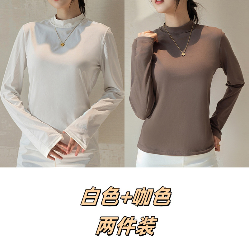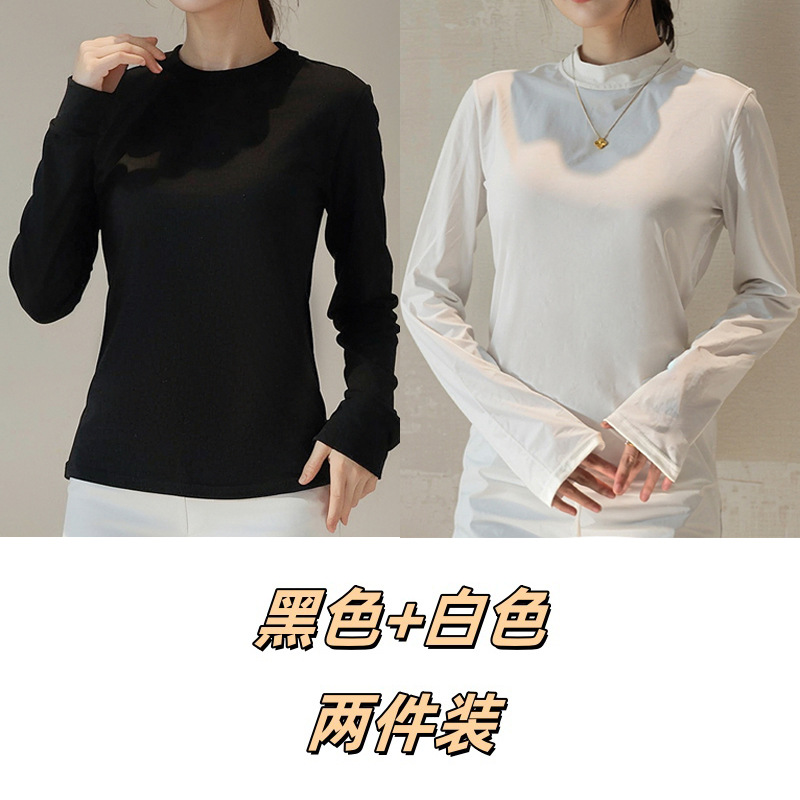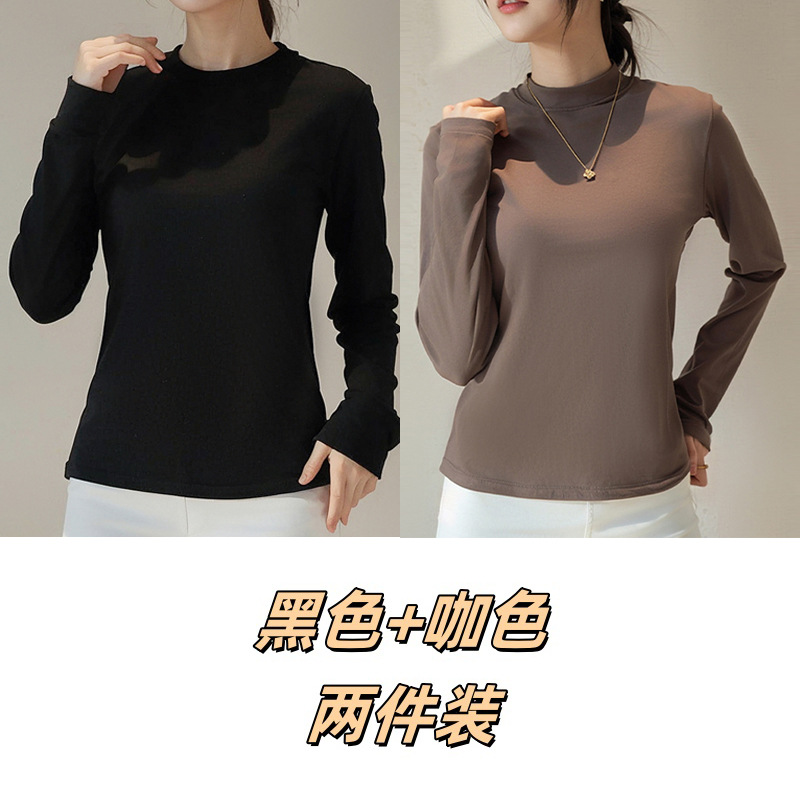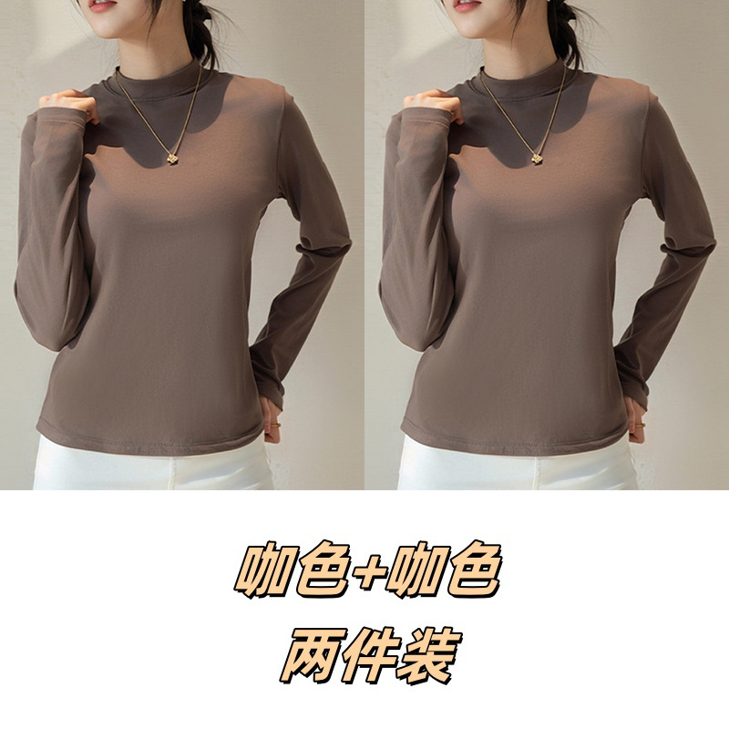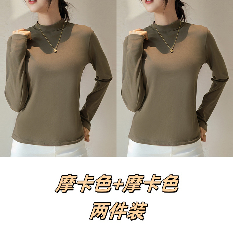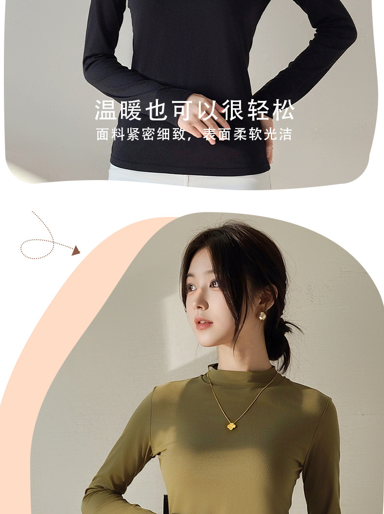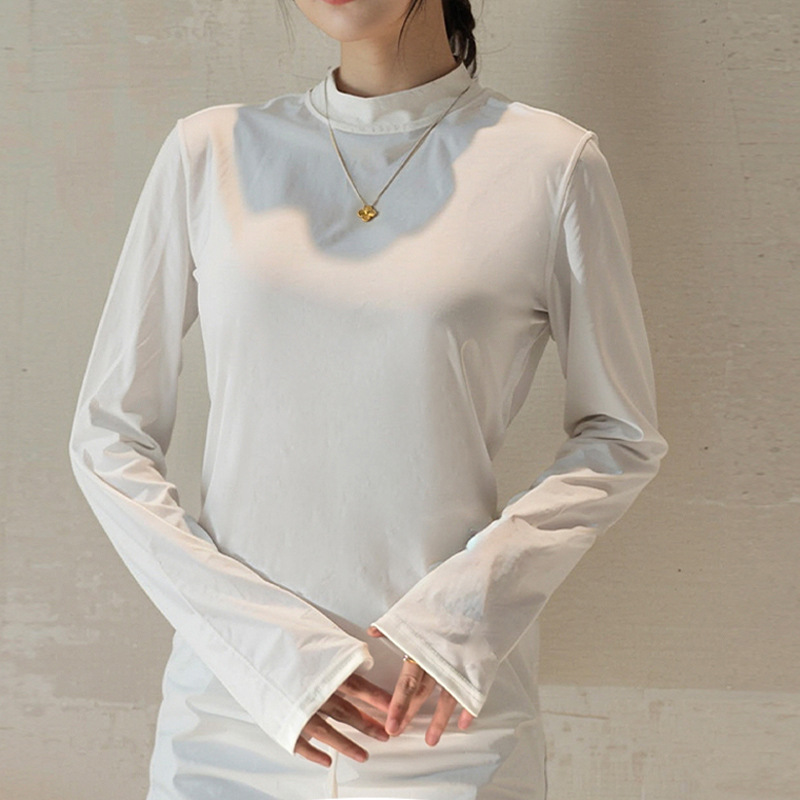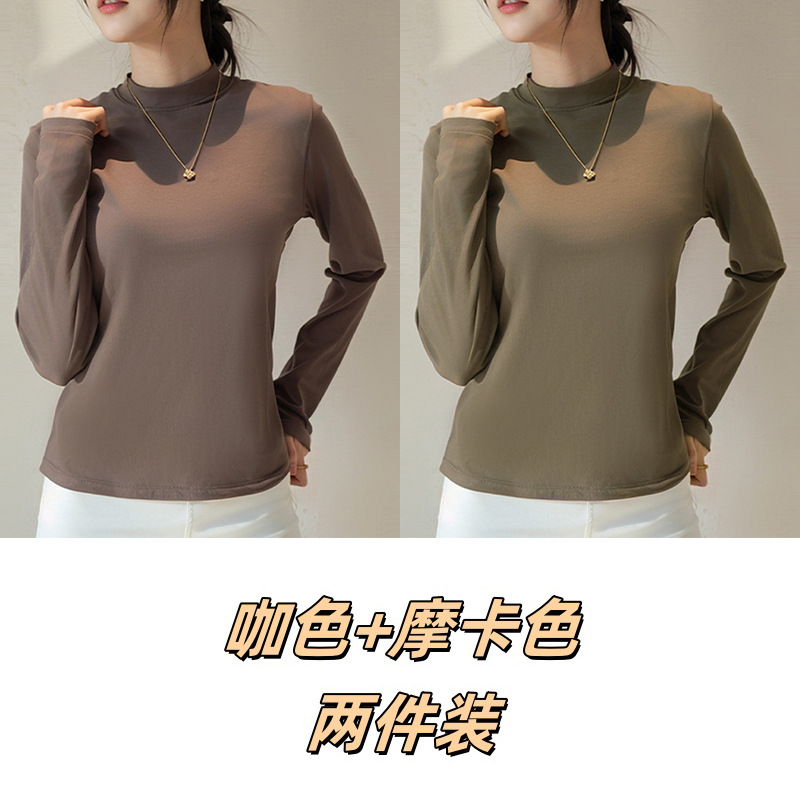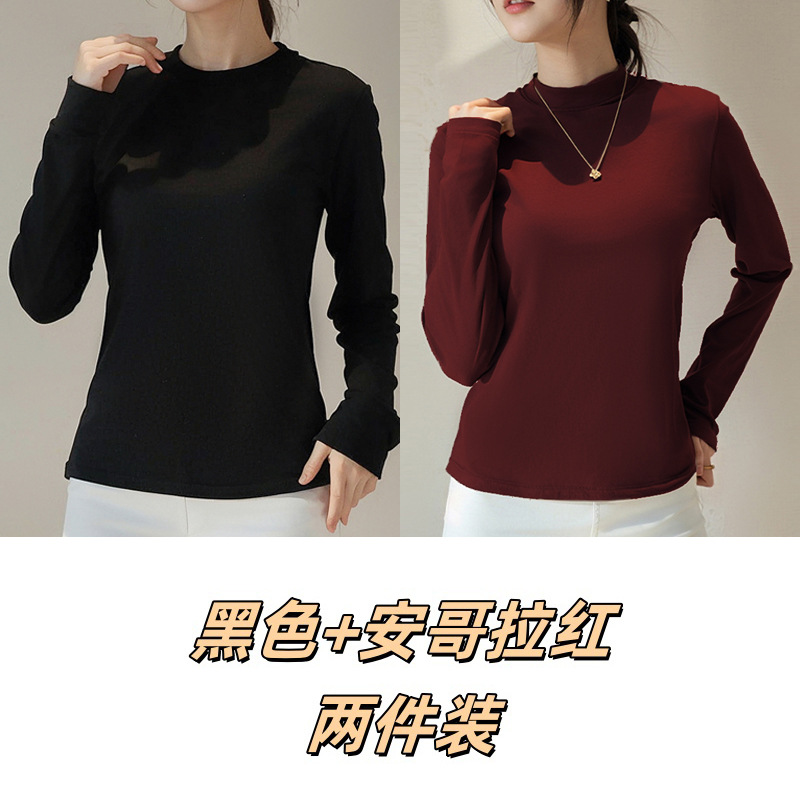 Двусторонняя бархатная рубашка с половиной высоким воротником, новинка весны и осени, облегающий однотонный внутренний топ с длинными рукавами, женский вырез с резьбой