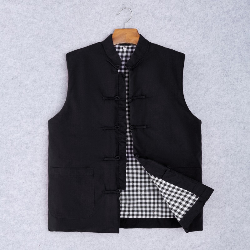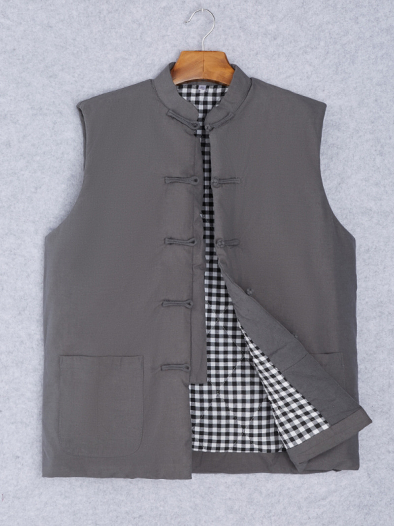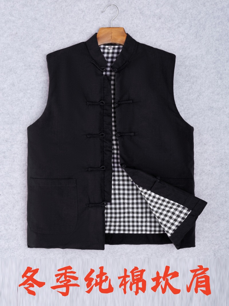Китайский костюм мужской хлопчатобумажный жилет с пряжкой на плече осенний и зимний конюшни китайский стиль ретро жилет мужской хлопок