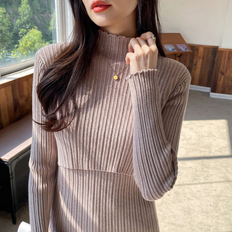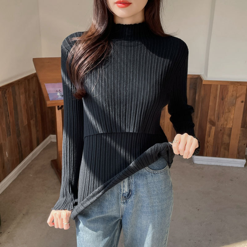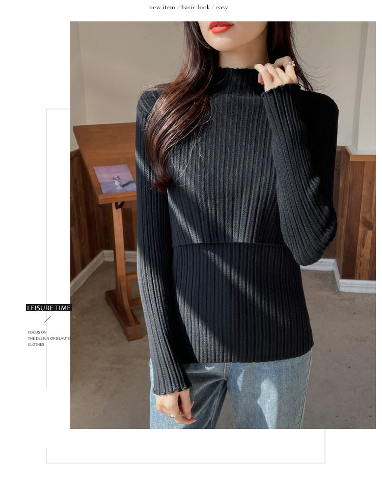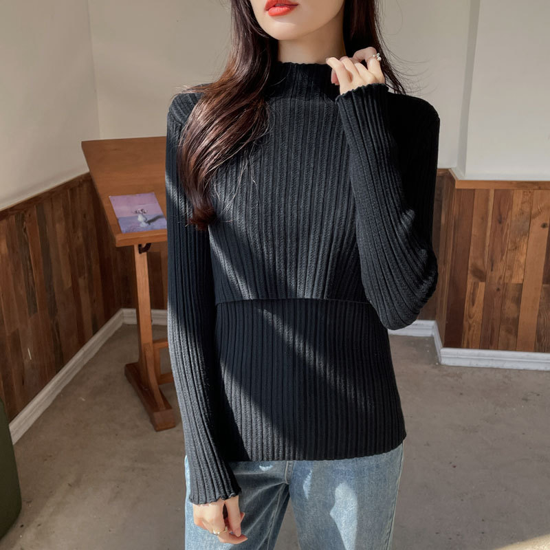 Свитер для кормящих мам на осень и зиму, без молнии, стильный, с полувысоким воротником, утепленный, для грудного вскармливания, послеродовая одежда.