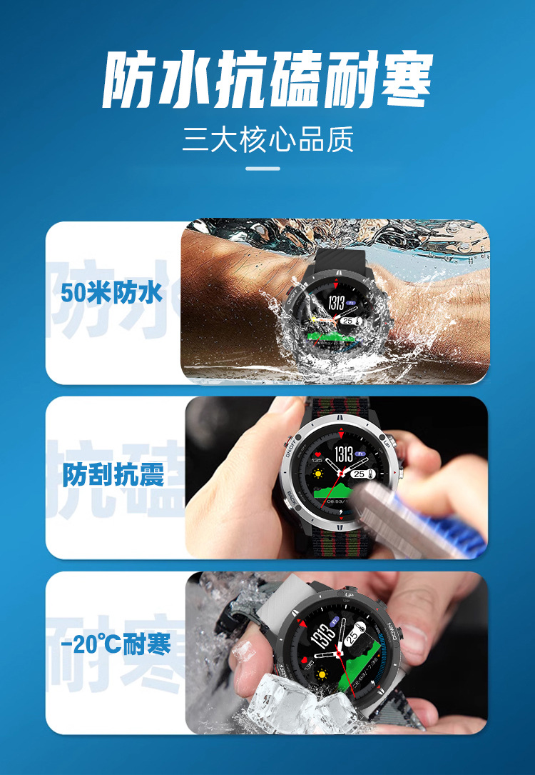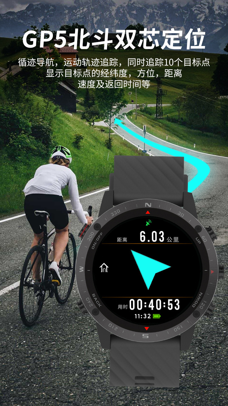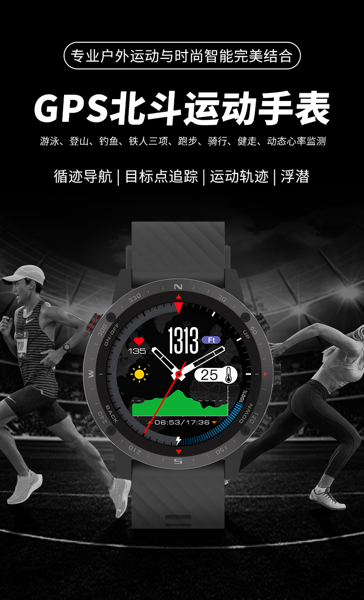北斗GPS运动手表游泳骑行跑步铁三海拔气压指南针防水男士腕表
