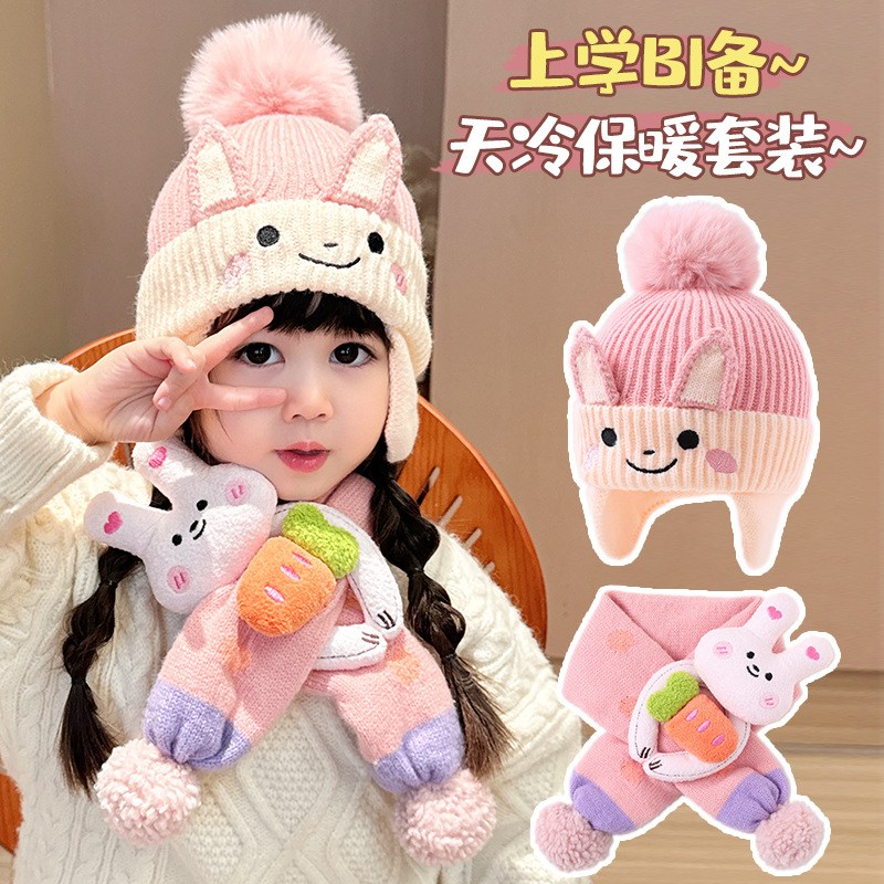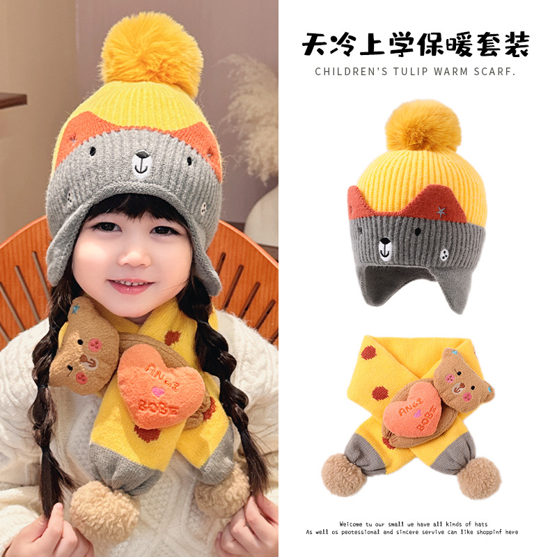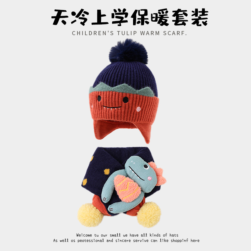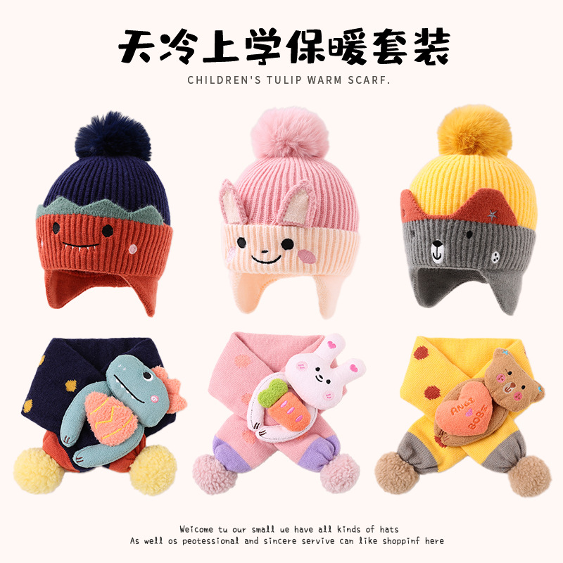 [Дети] Шляпа мальчик зимний ребенок шерстяная шапка защита ушей мальчик шарф набор для девочек осень и зима