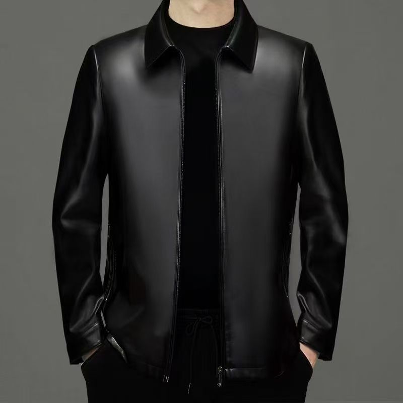 Кожаная куртка для мужчин среднего и старшего возраста, зимняя, средней длины, с воротником из меха лисы, из натуральной кожи, меховая, для мужчин среднего возраста, с флисовой подкладкой, из полиуретана.