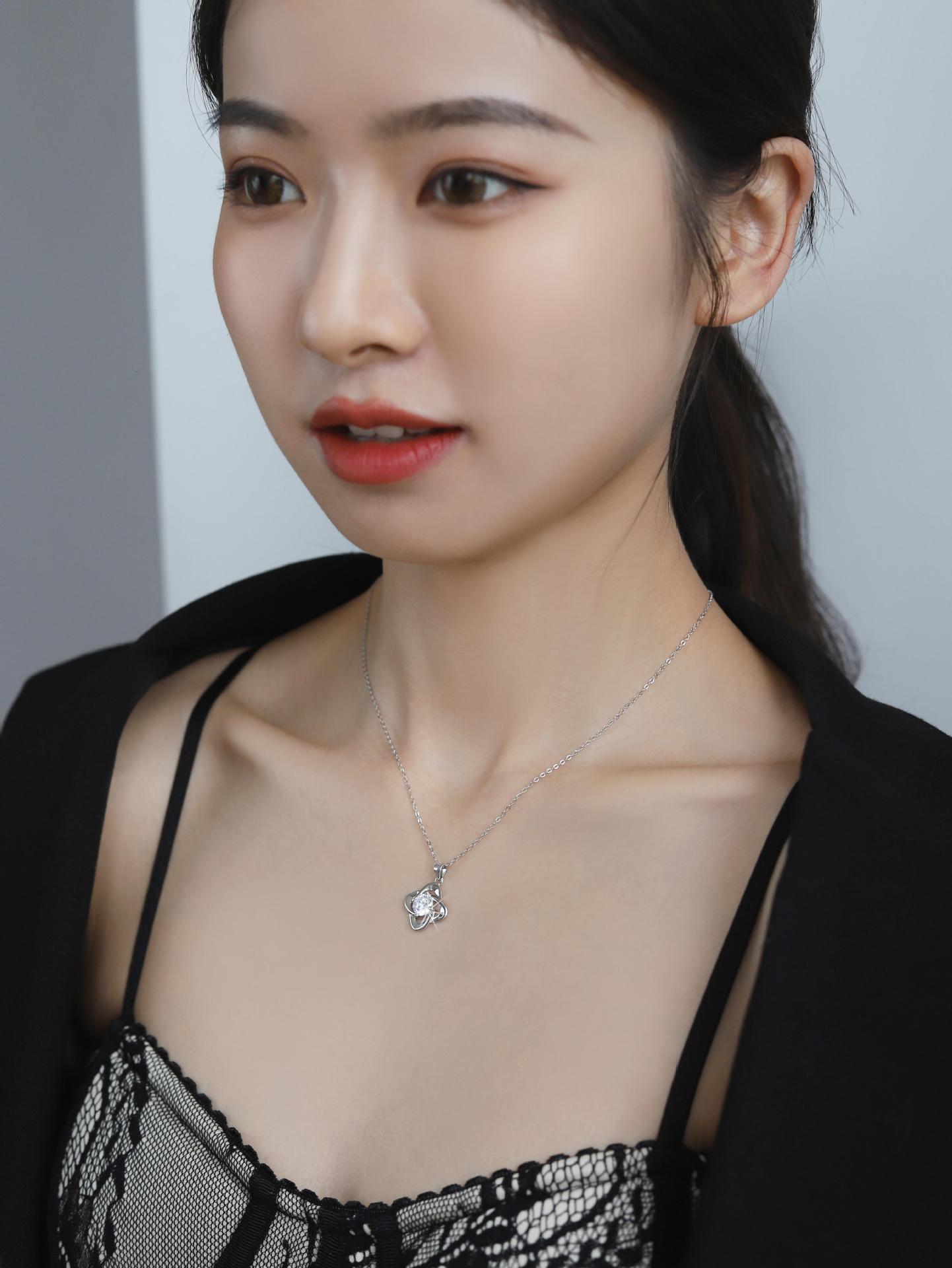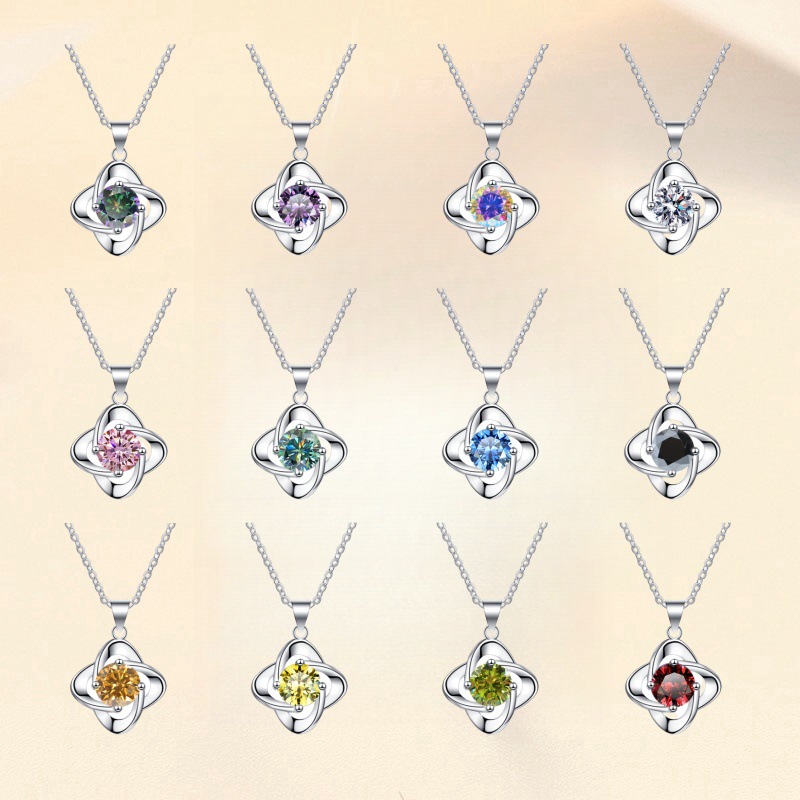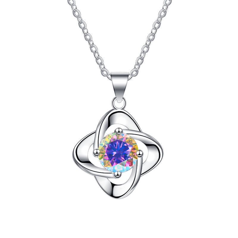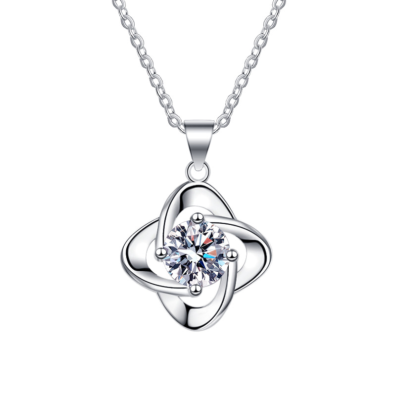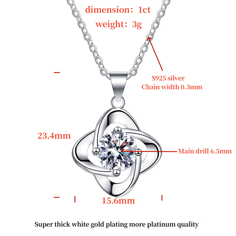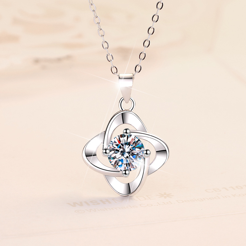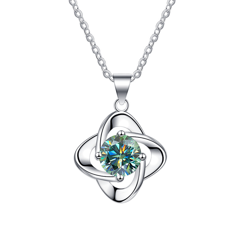 Оптовая продажа с фабрики: простое колье из стерлингового серебра 925 пробы с эффектом высокого класса, модный кулон в виде четырехлистного клевера, моассанит в один карат, для трансграничной торговли.