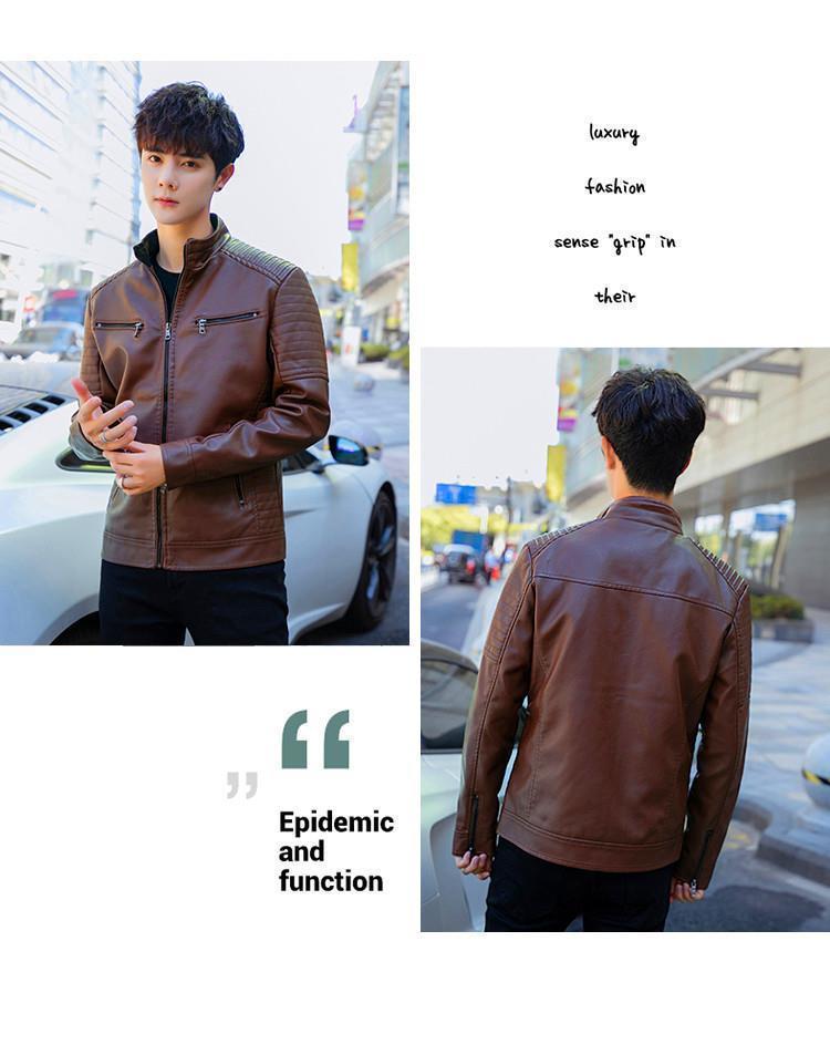 2024 Красивые трендовые куртки молодые студенты кожаные мотоциклы стройные повседневные мужские куртки воротник новая осень-зима