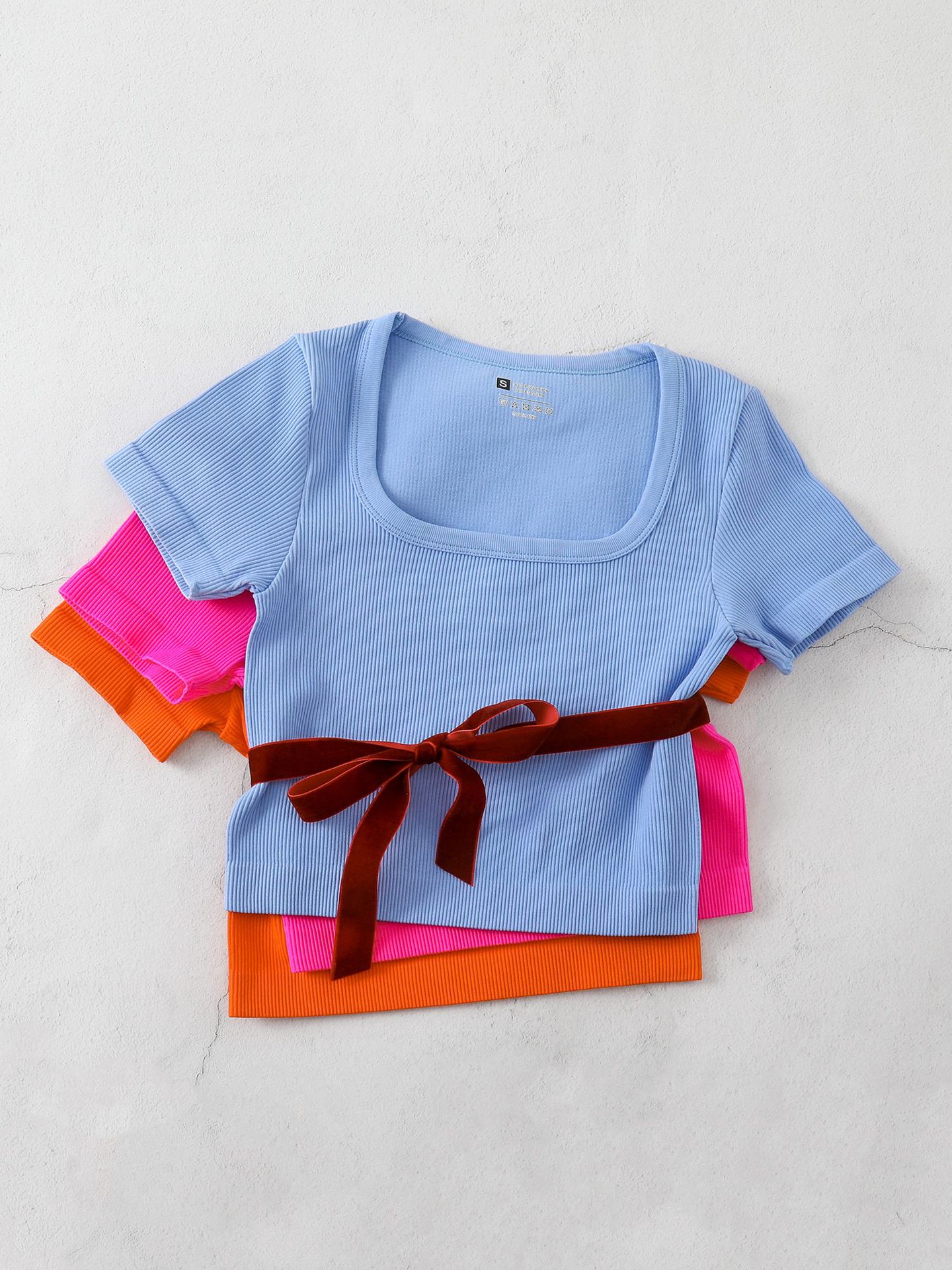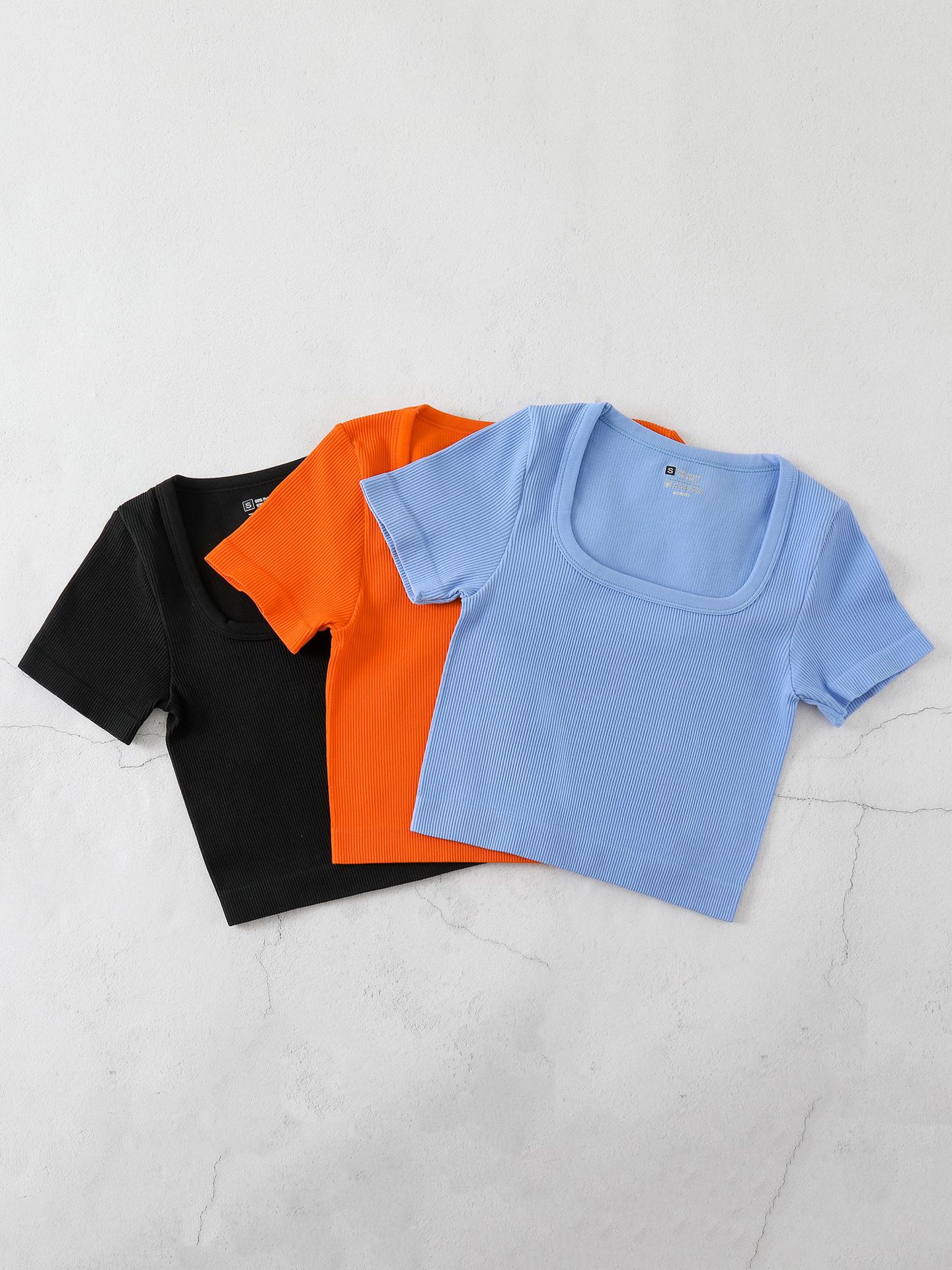 Новая футболка Amazon Кросс-Квадратный воротник Йога Спорт с коротким рукавом Футболка с резьбой обтягания осень-зима топ BX515