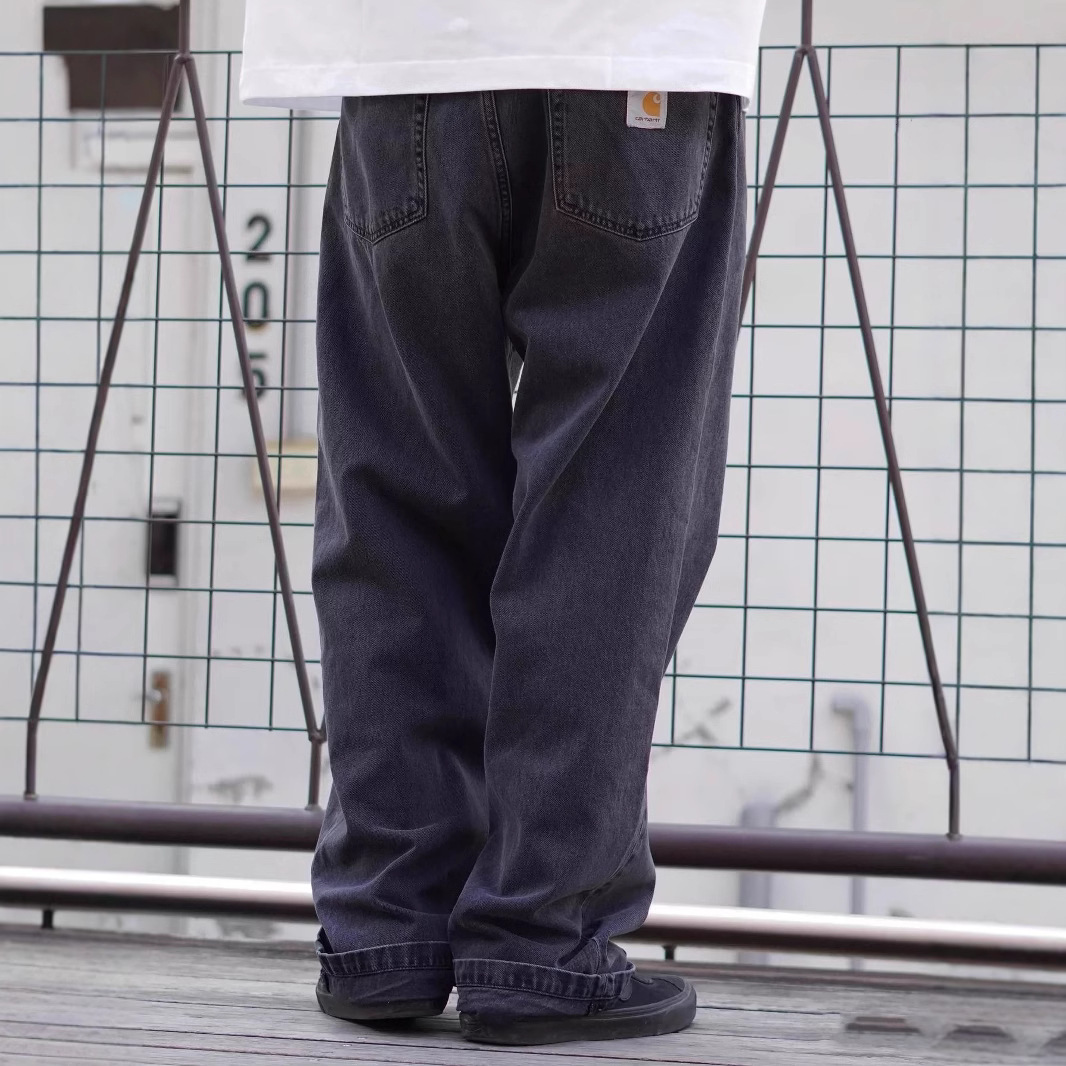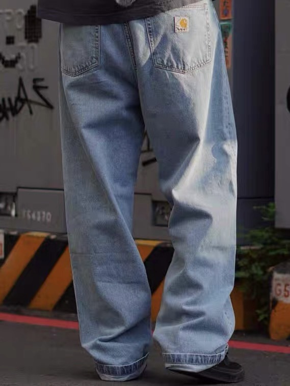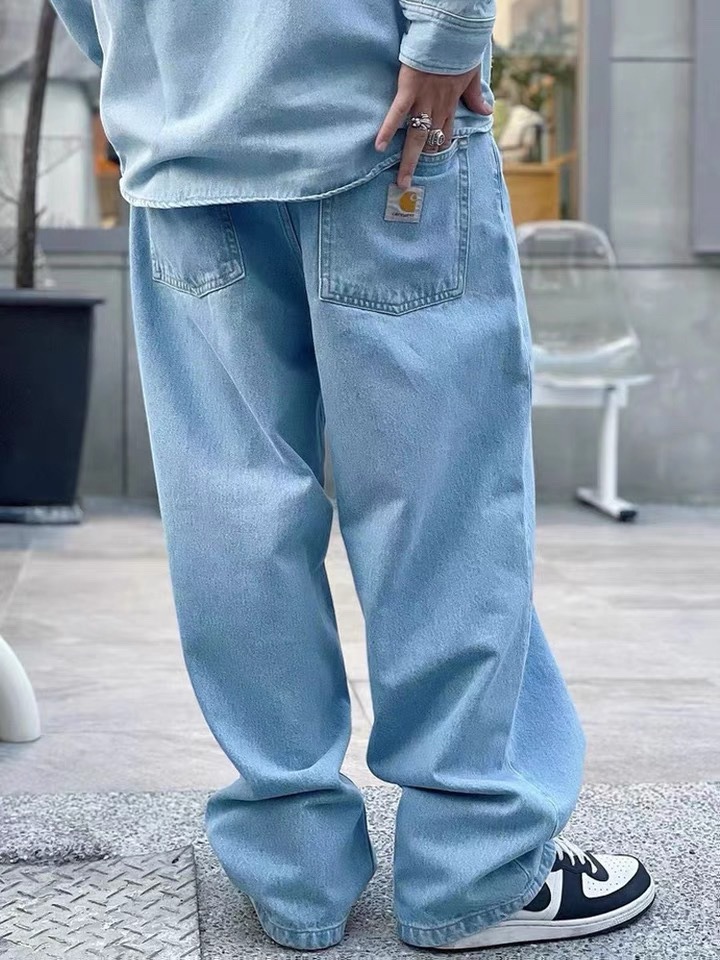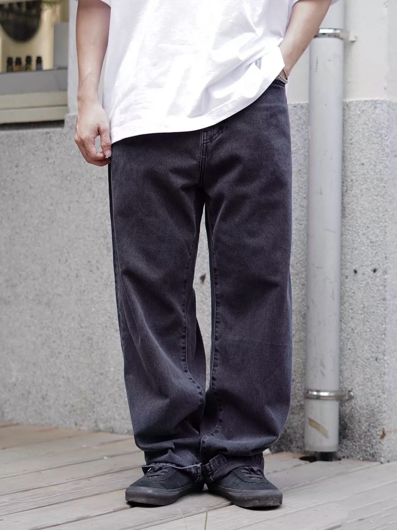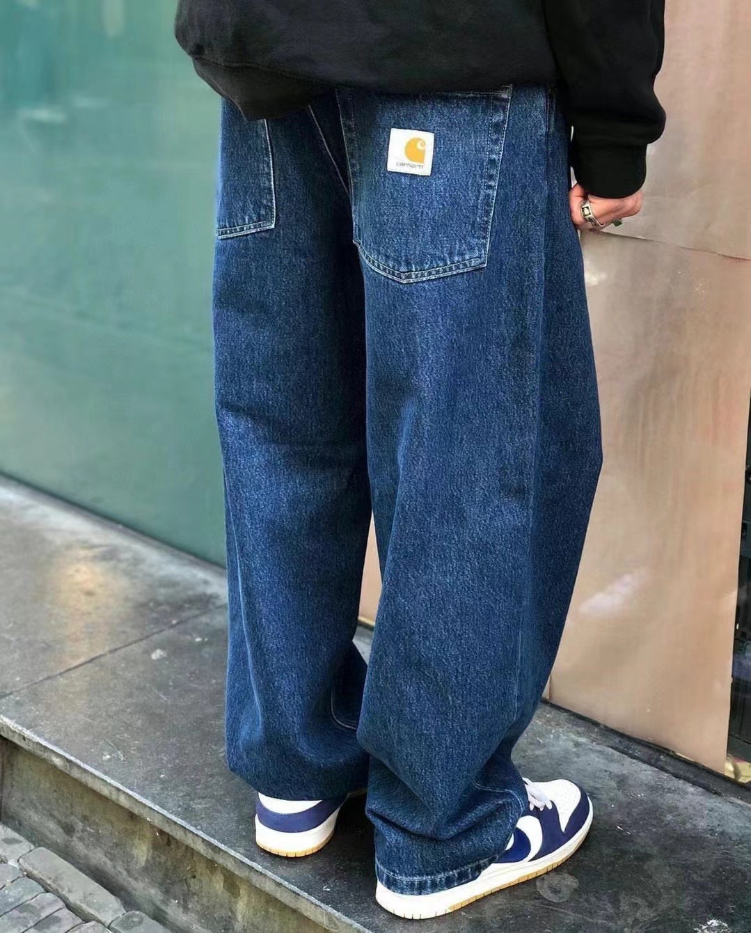 Американские ретро-брюки в стиле хип-хоп, свободные прямые джинсы с эффектом потертости, темно-синие, широкие штанины