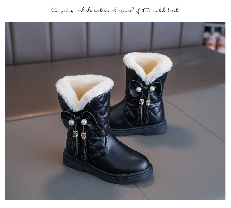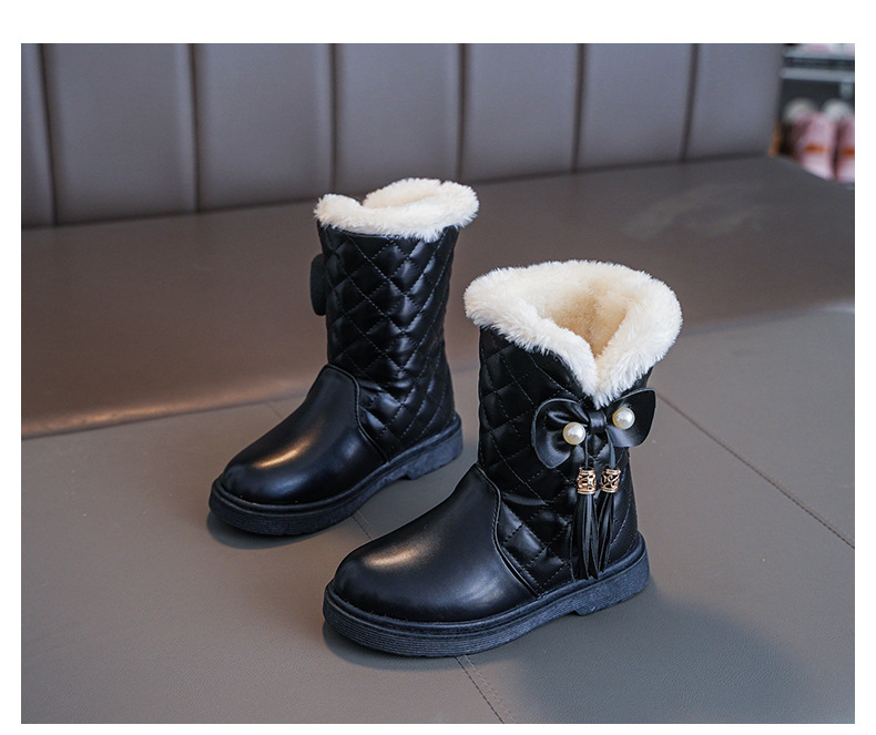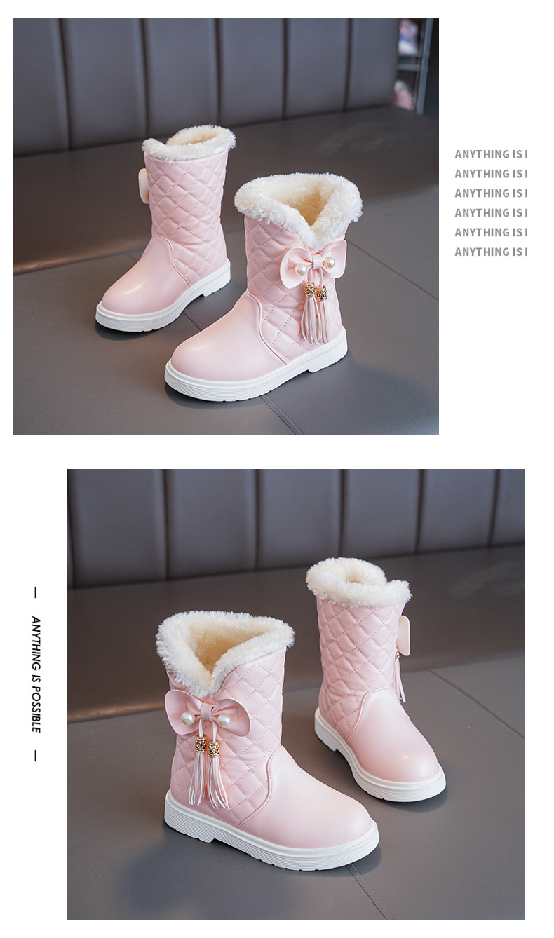 Детские зимние сапоги для девочек 2025 года, новые теплые нескользящие кожаные короткие сапоги-полусапожки для детей постарше, модель «Принцесса»