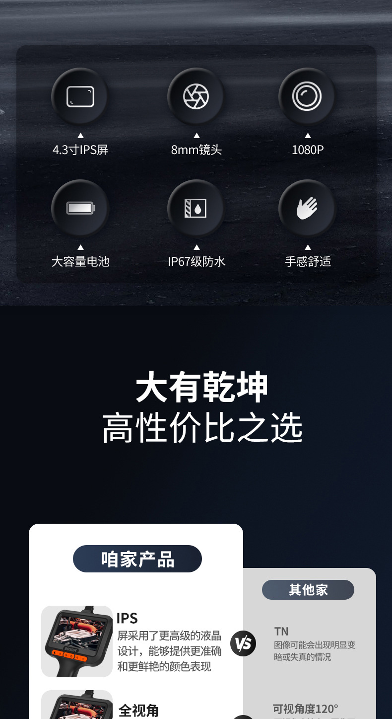 Новый трансграничный продукт, предназначенный для высокой четкости с экраном промышленного эндоскопа 8 мм автомобильный детектор ремонта труб