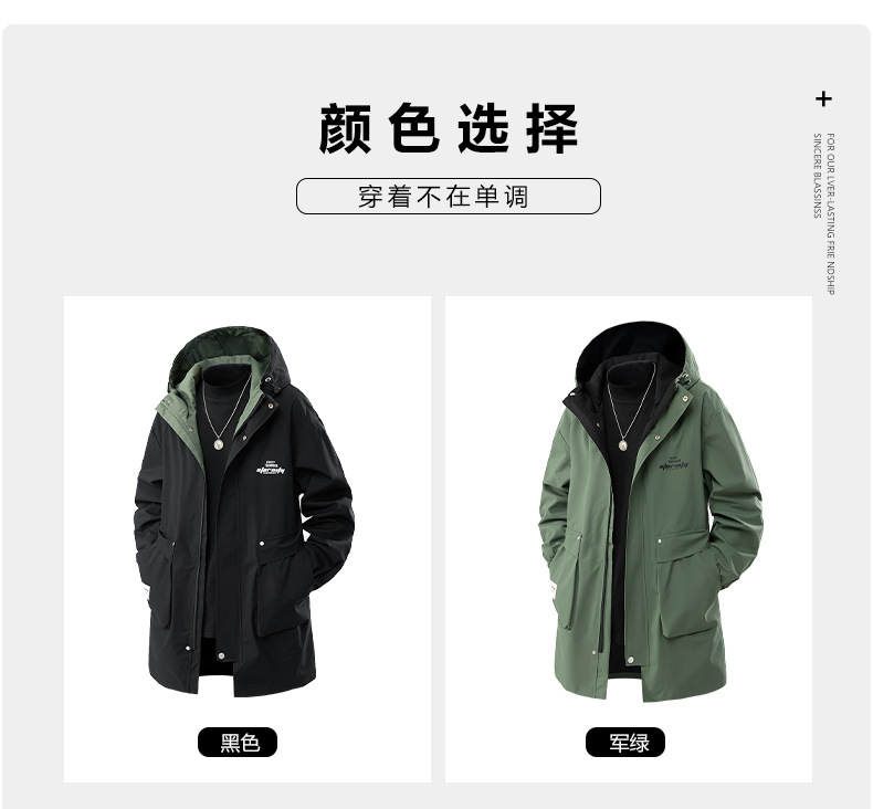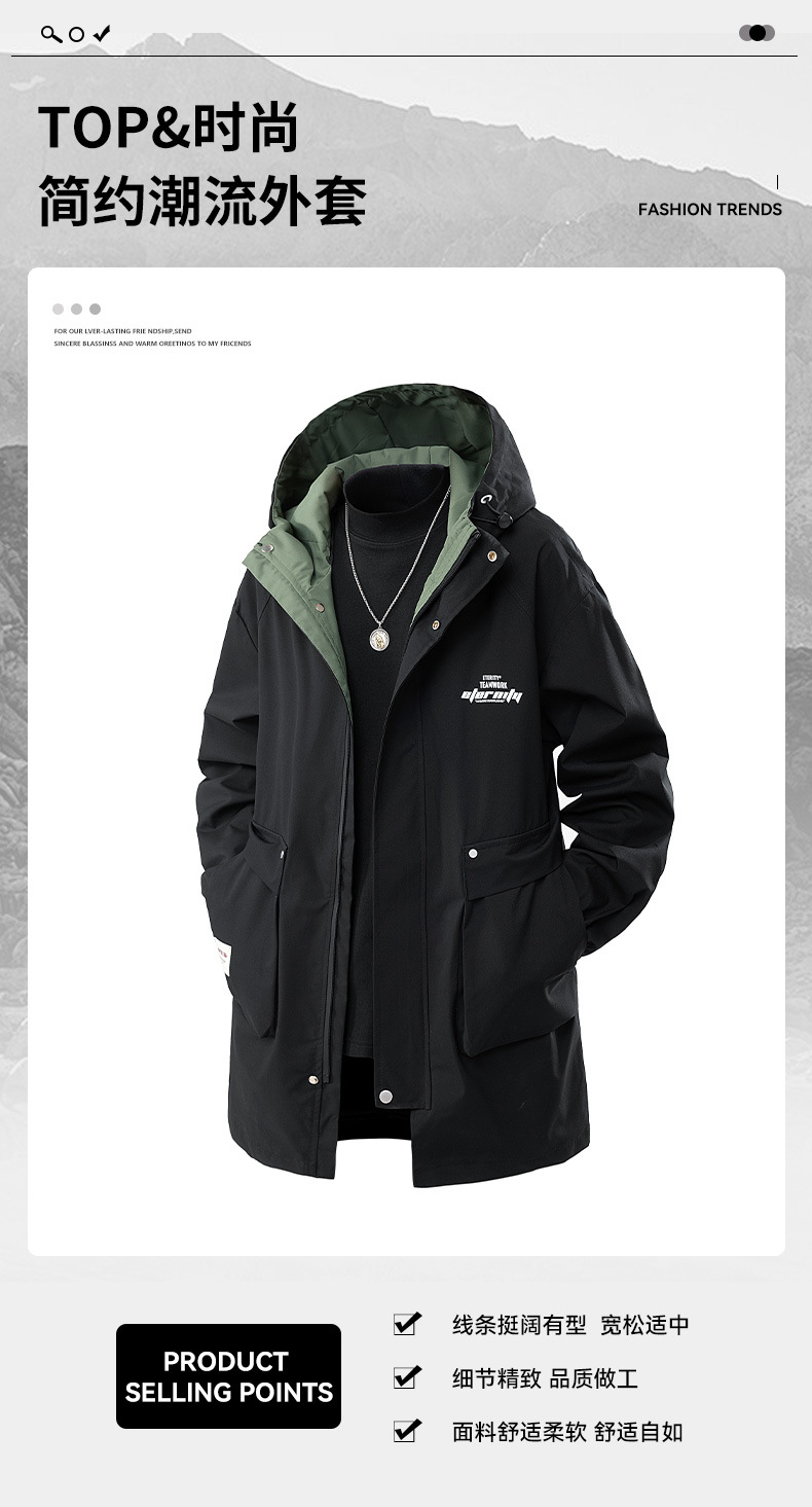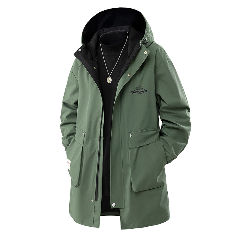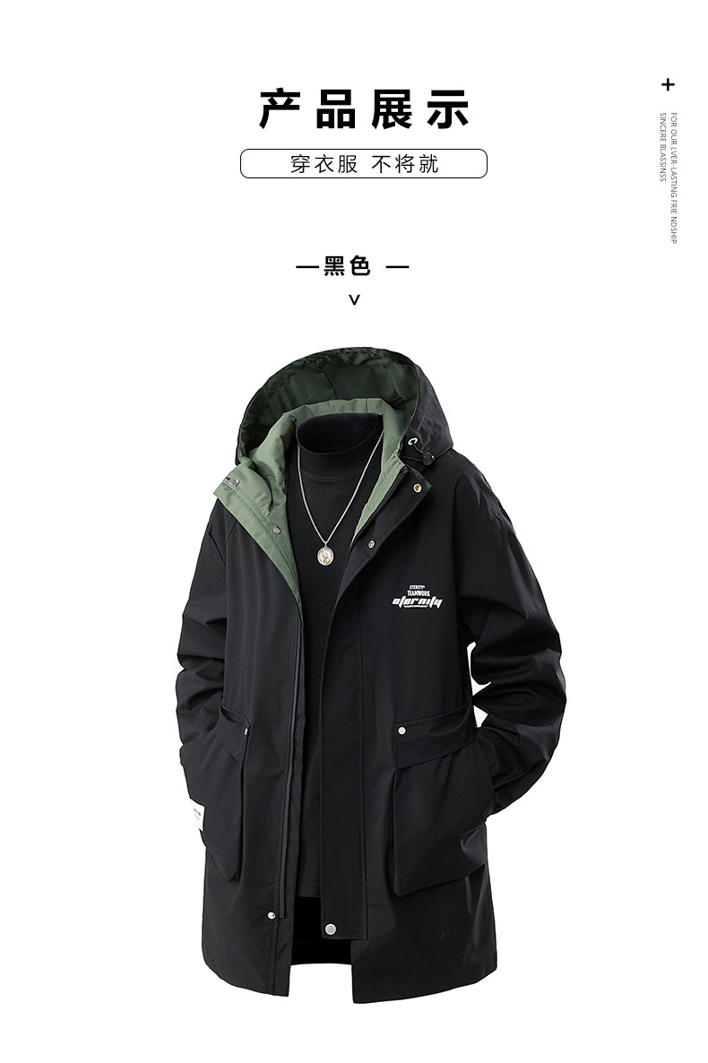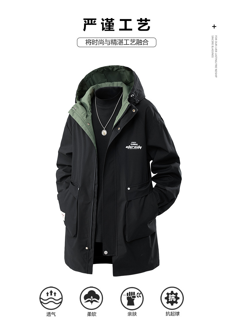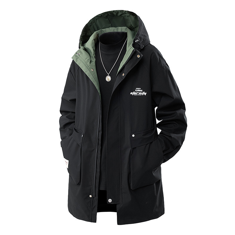 Мужская 2024 весна и осень свободная средняя длинная с капюшоном