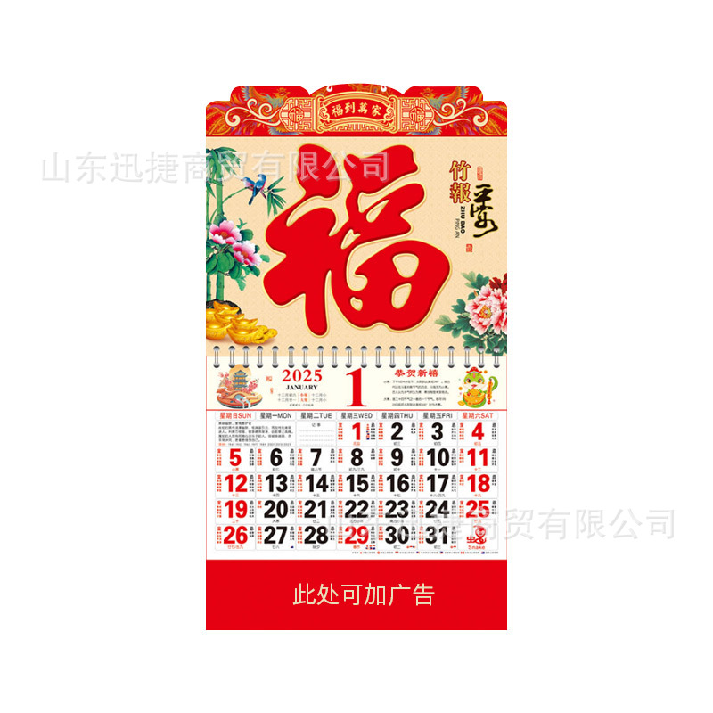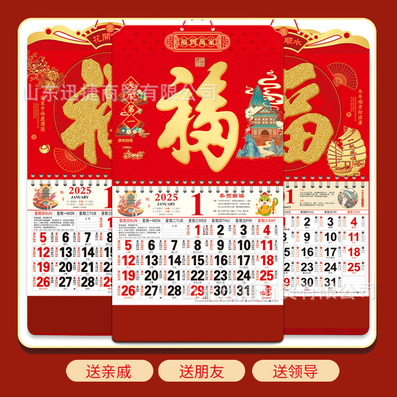 Настенный календарь в китайском стиле с символами удачи, подвесной календарь на год Лошади, новая модель 2026 года, настенный календарь с логотипом компании