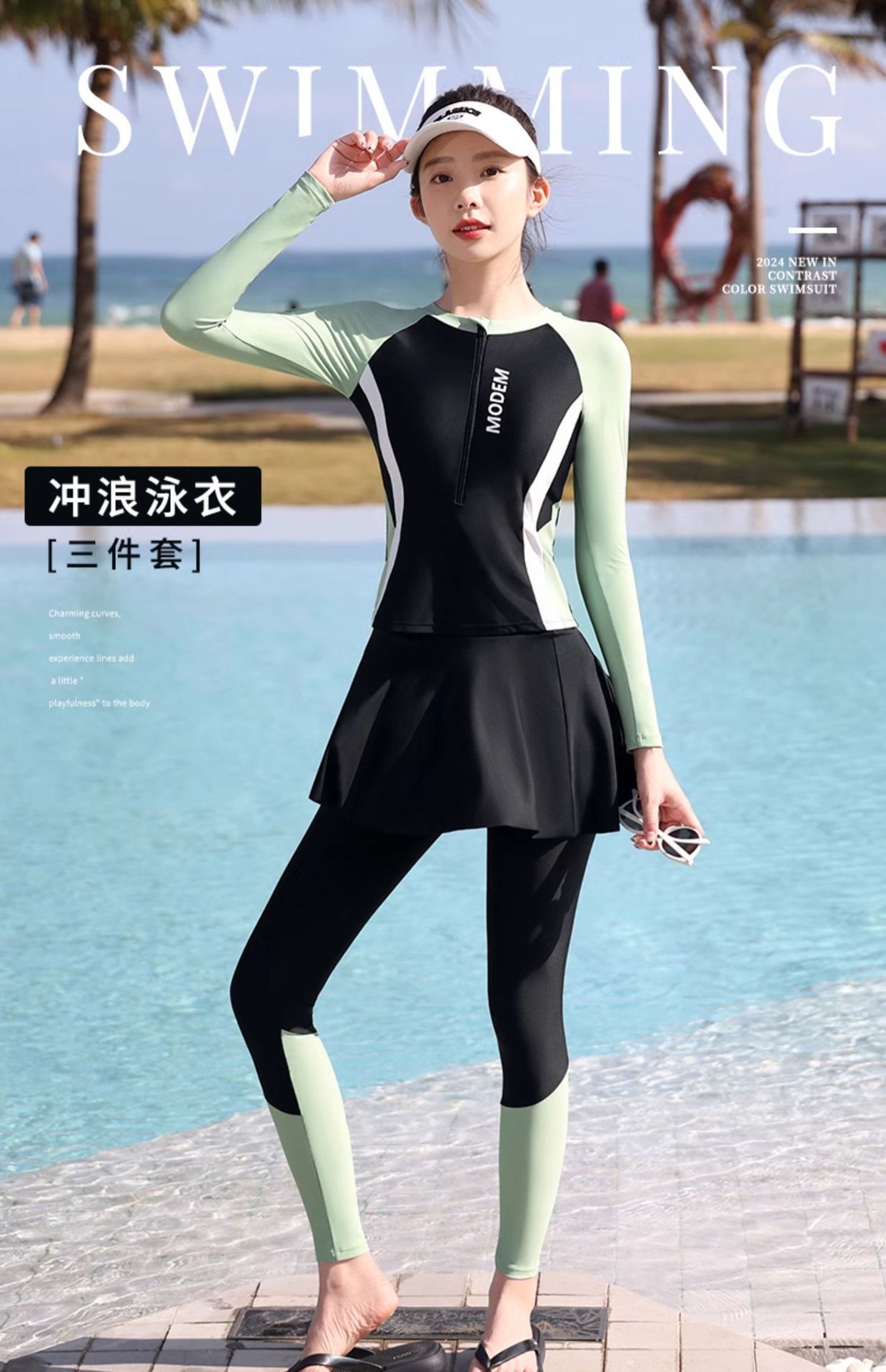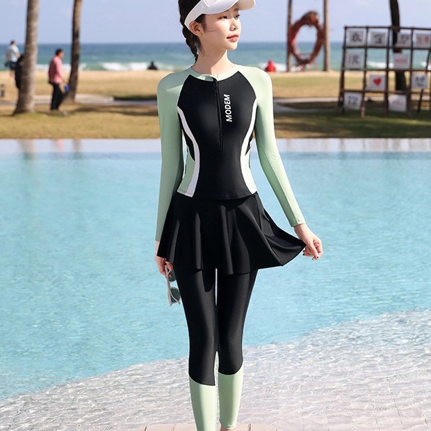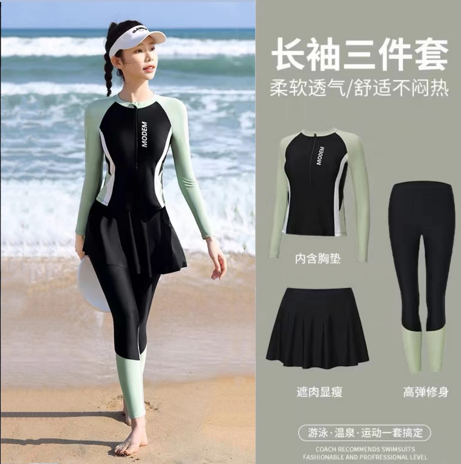 Купальный костюм женский корпус из трех частей новый солнцезащитный крем с длинными рукавами брюки Дайвинг консервативный женский купальник с горячими источниками