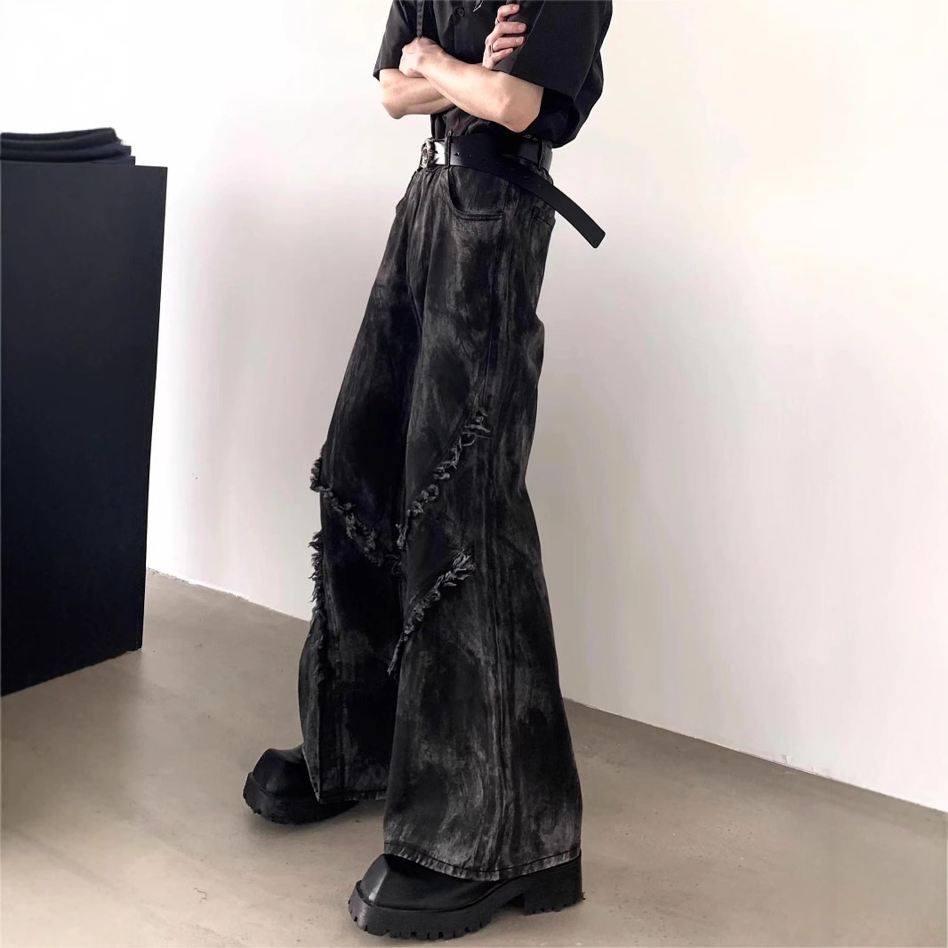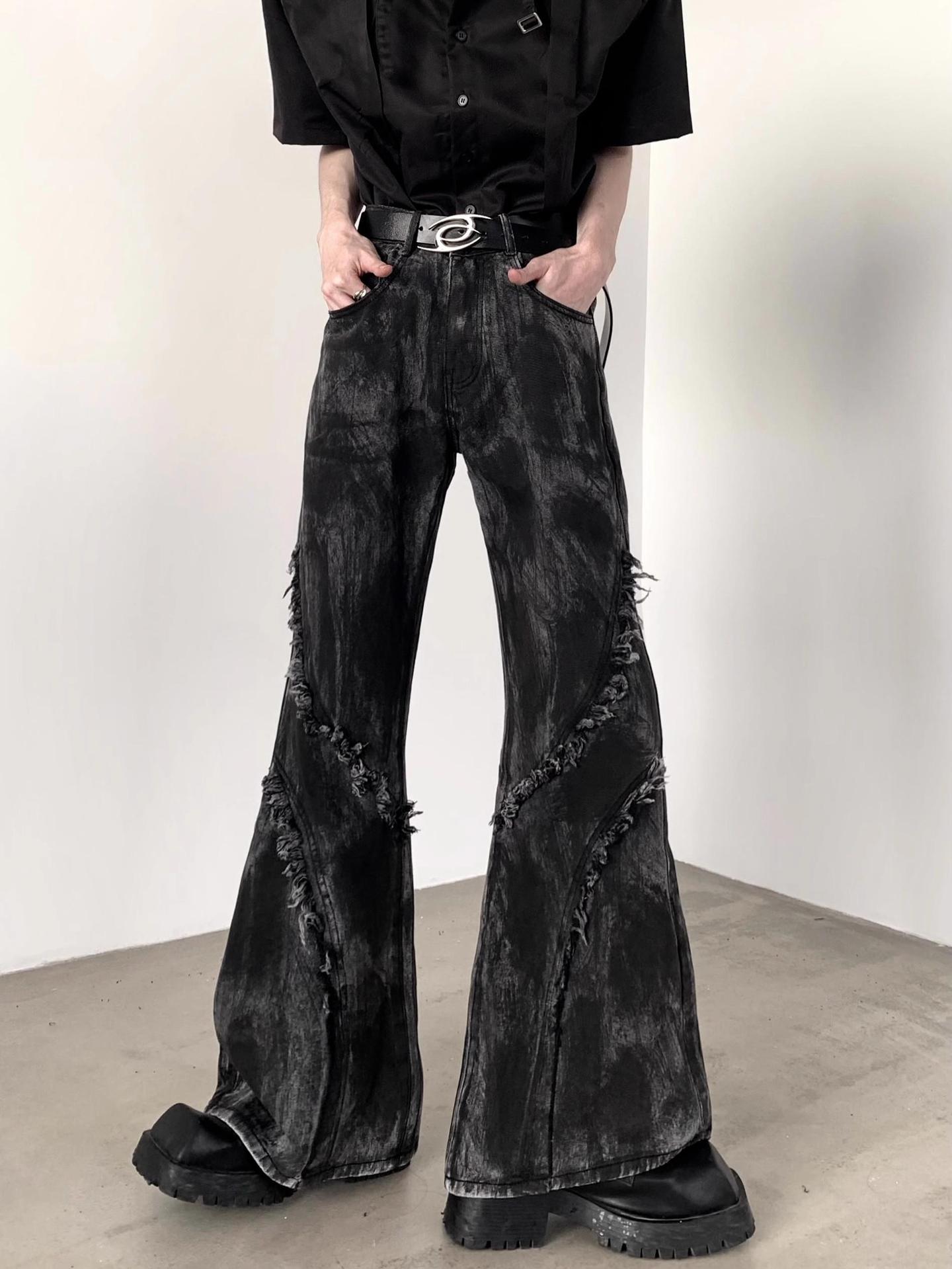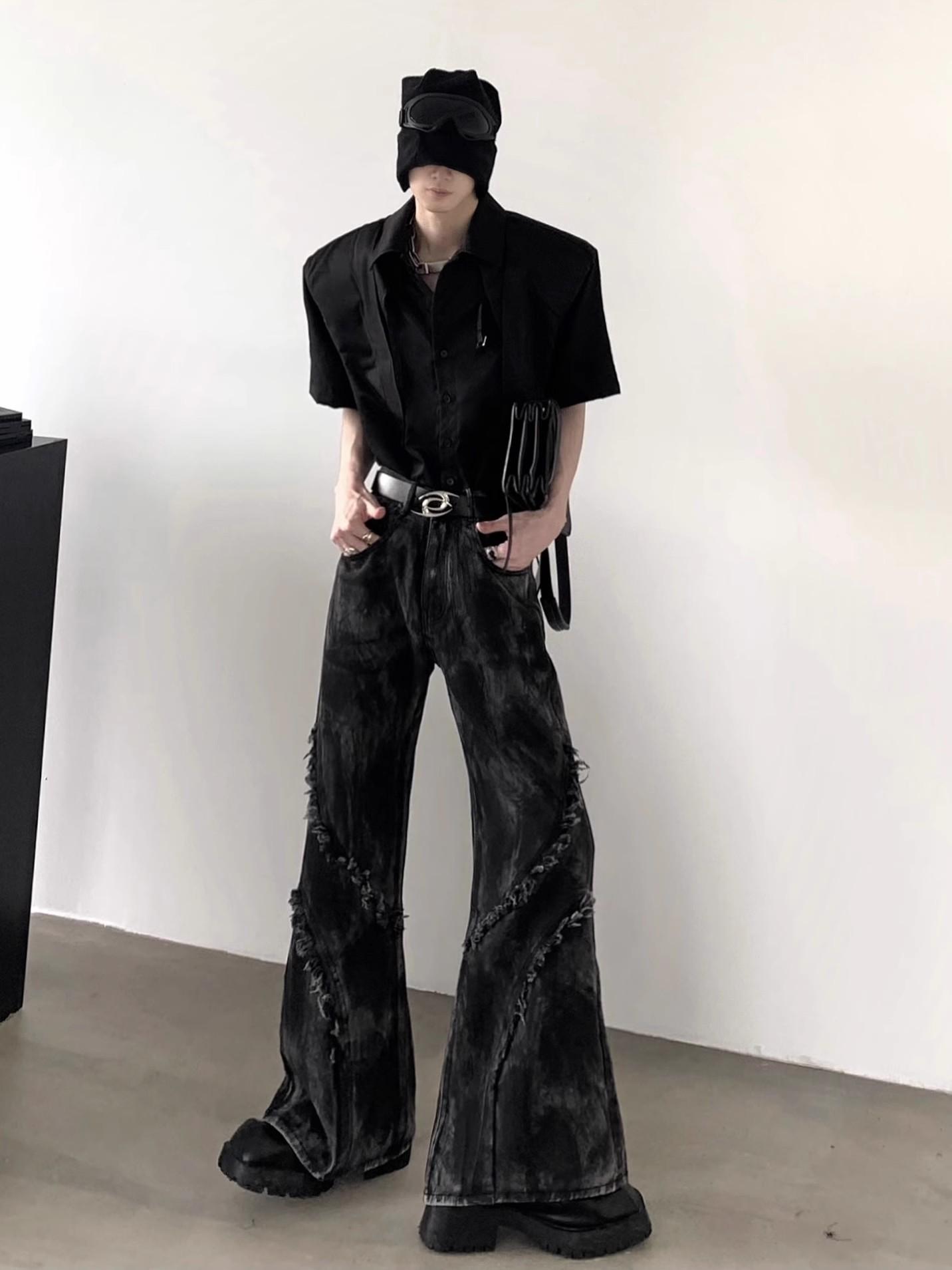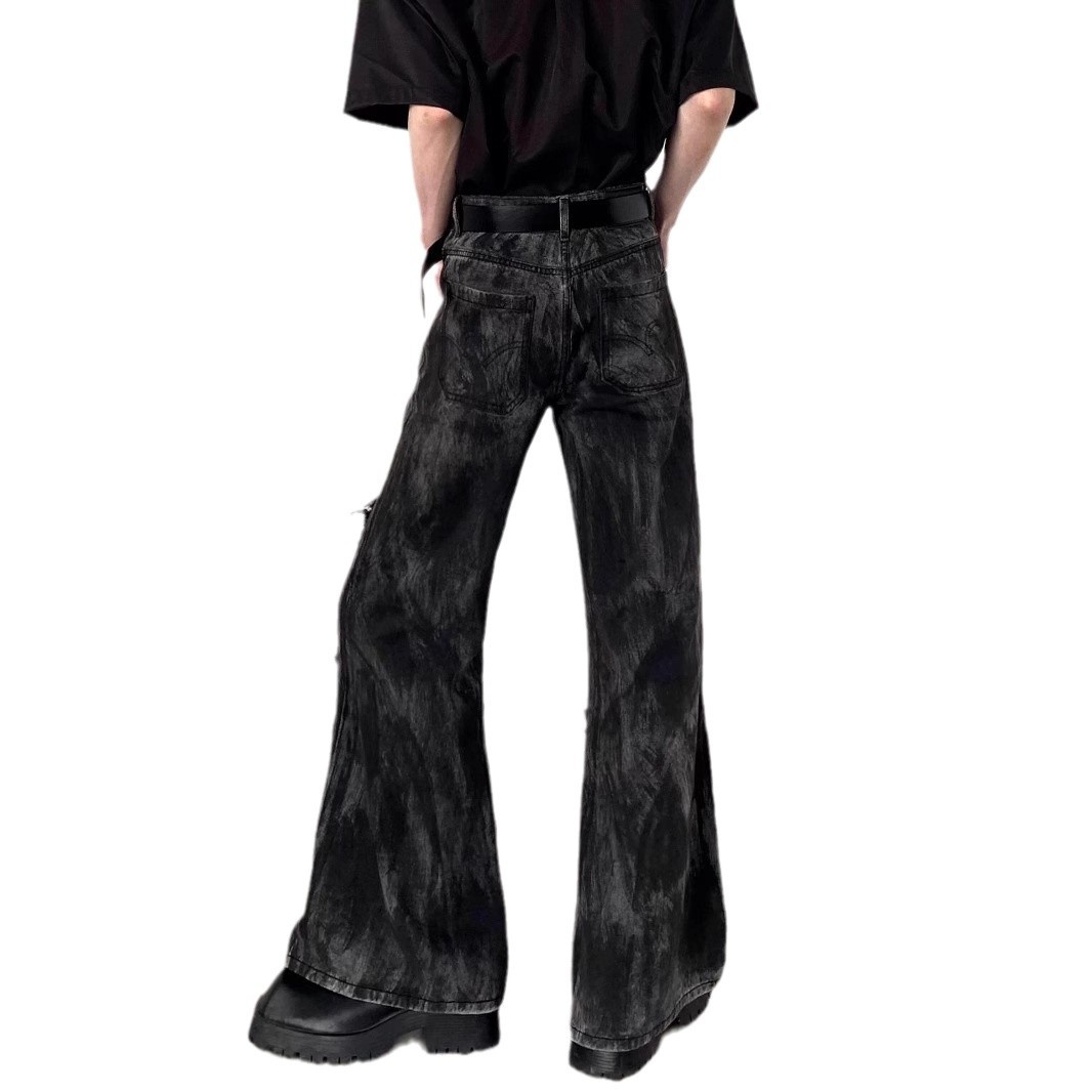 2025 Американские мужские джинсы с высокой посадкой и микро-клеш в стиле High Street, нишевый дизайн, премиум-класс