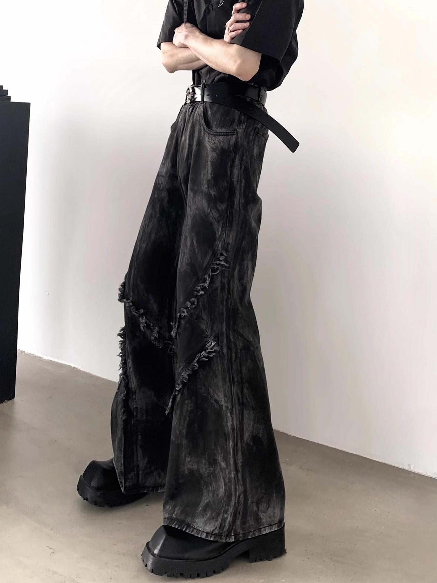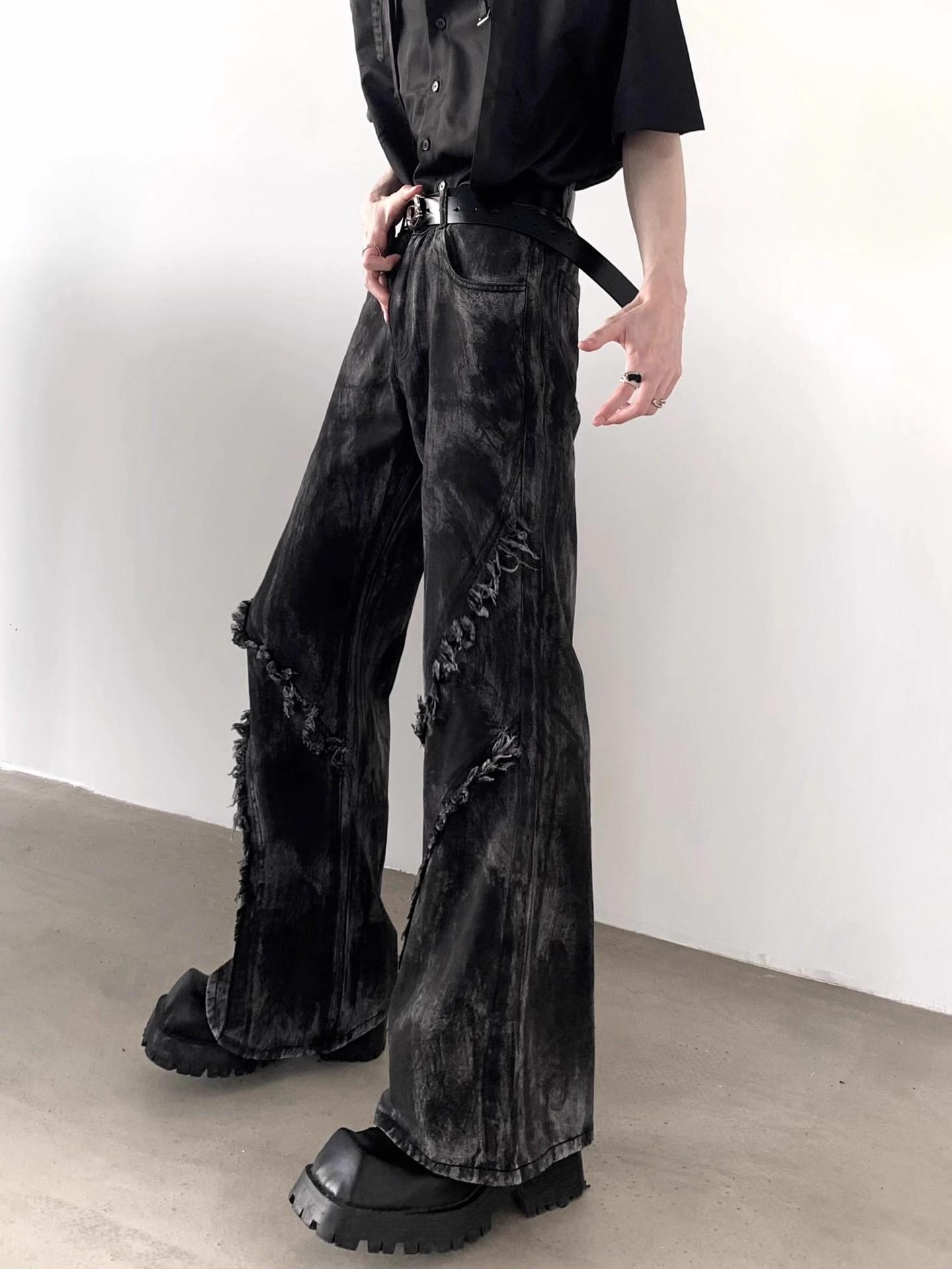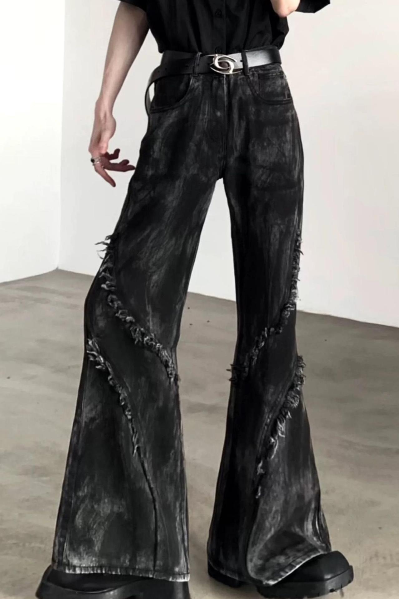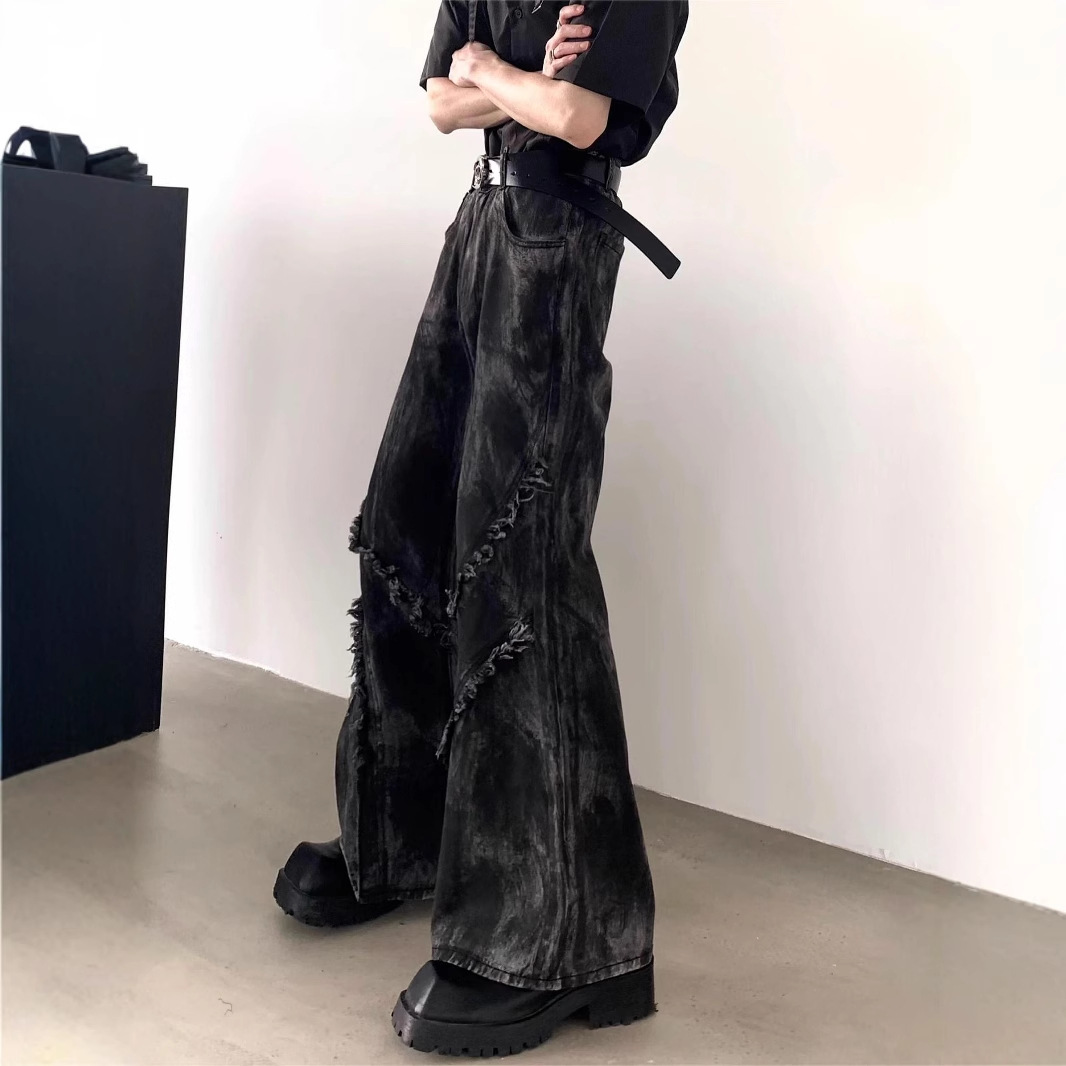2025 Американские мужские джинсы с высокой посадкой и микро-клеш в стиле High Street, нишевый дизайн, премиум-класс