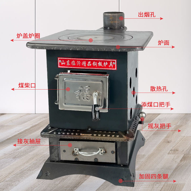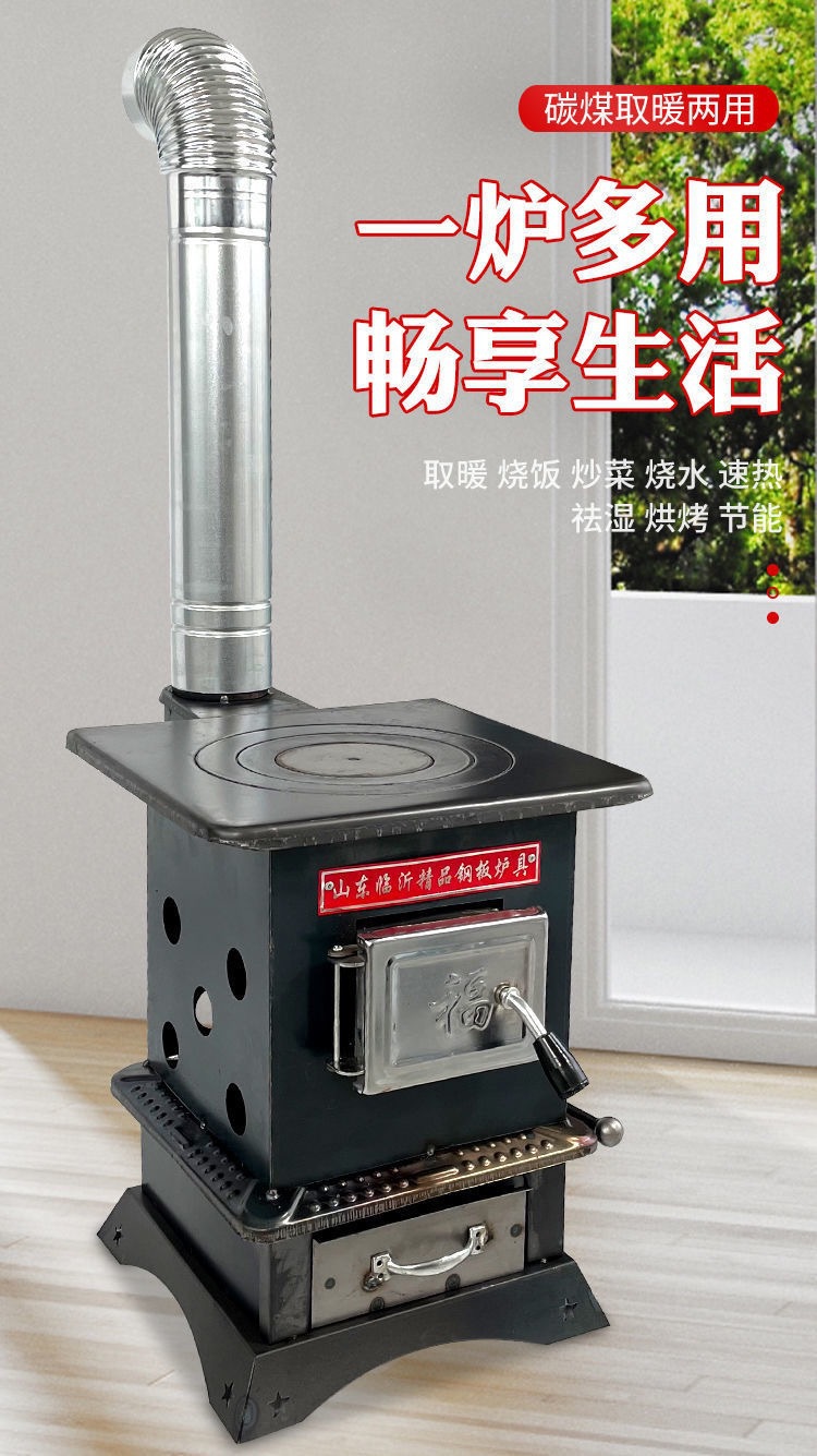 Бытовая печь для отопления сжигает уголь в сельской местности