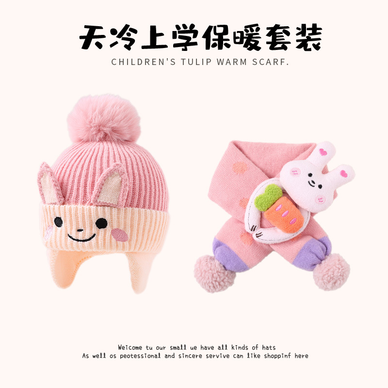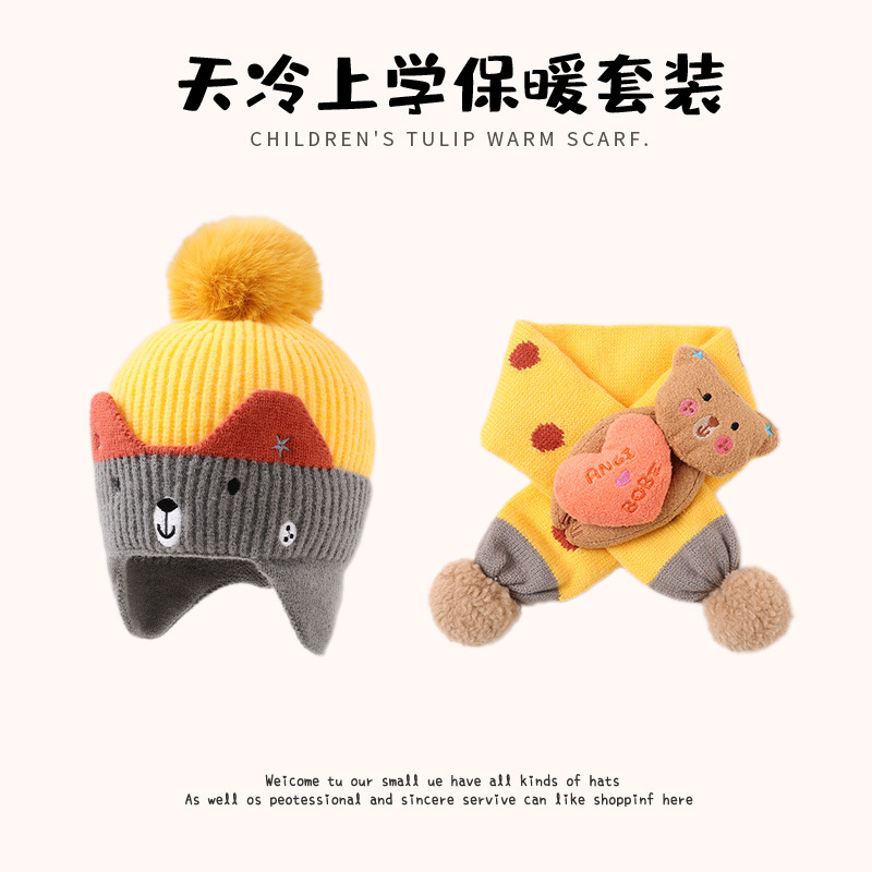 [Дети] Шляпа мальчик зимний ребенок шерстяная шапка защита ушей мальчик шарф набор для девочек осень и зима