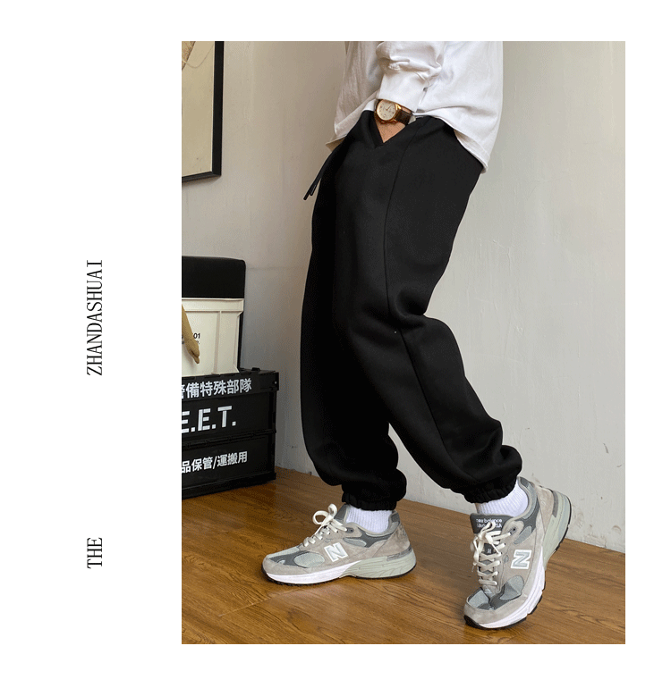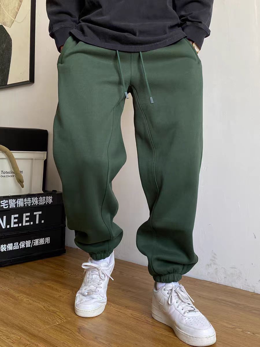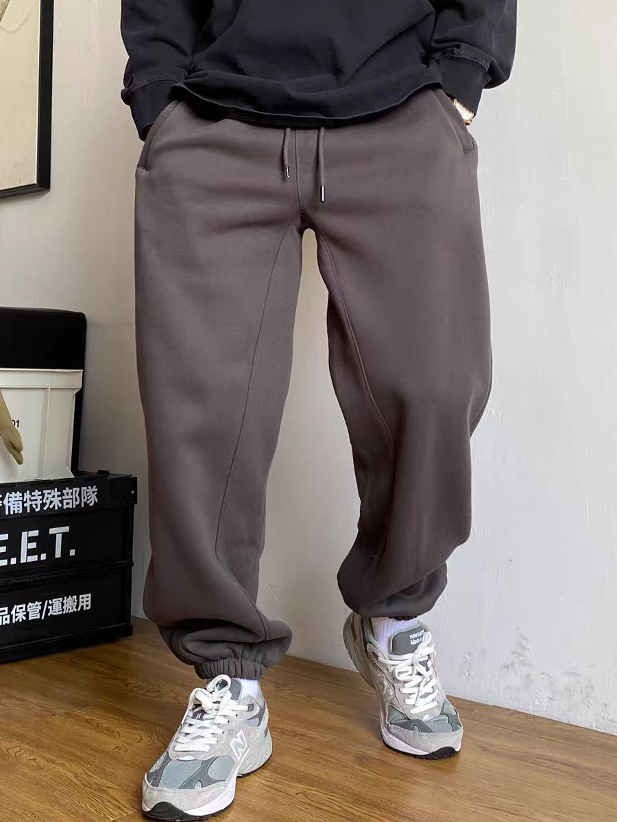 Американский повседневный красавчик высокого класса 400G волосатые брюки мужской свободный шнур простые дикие спортивные брюки