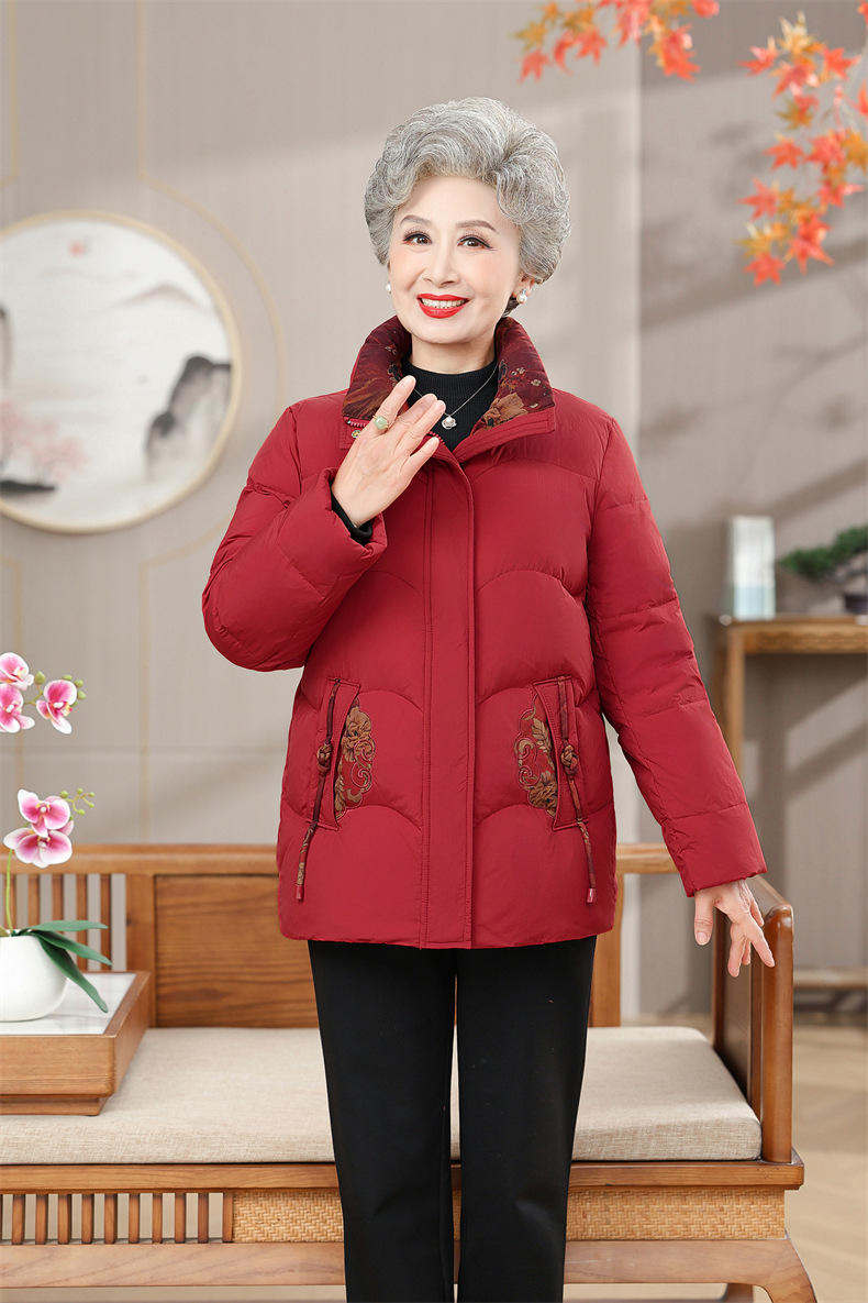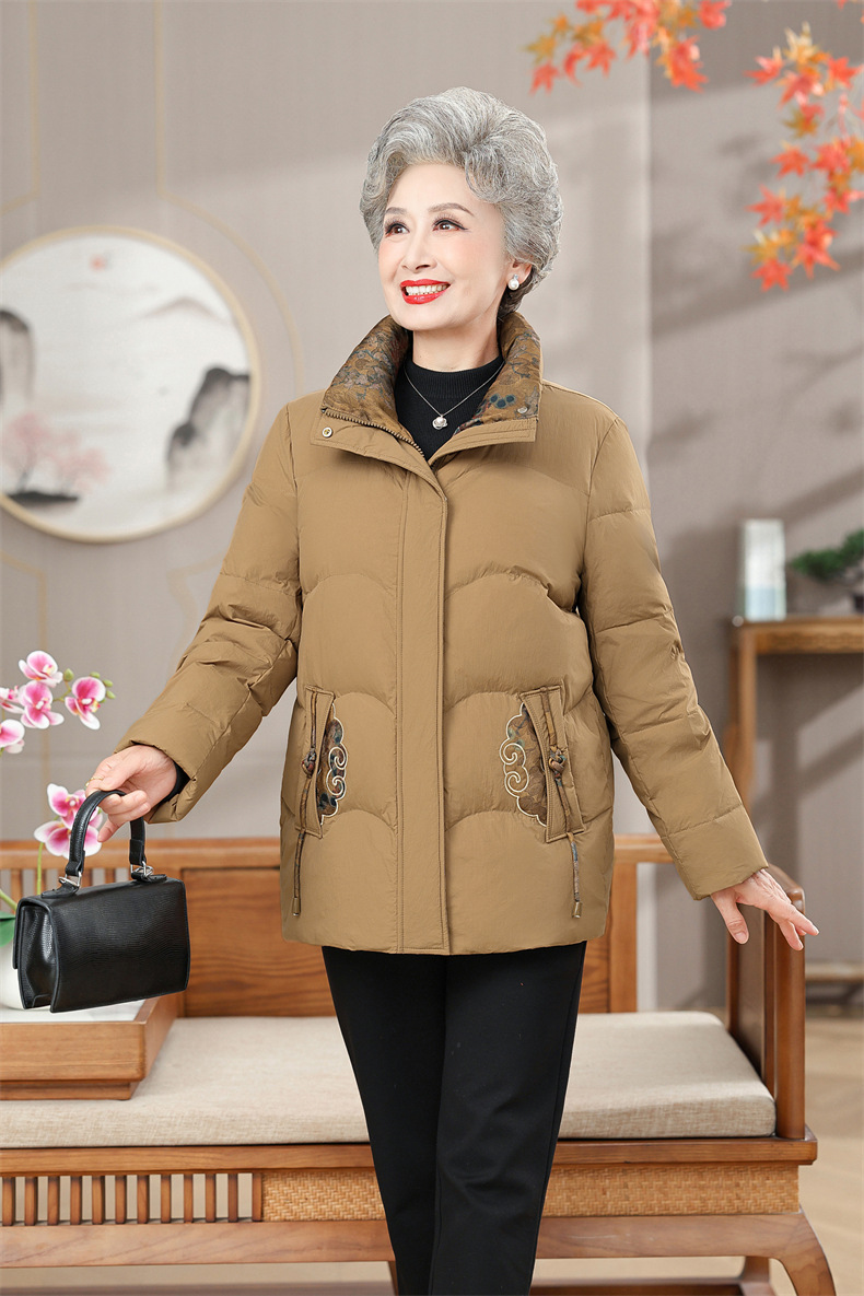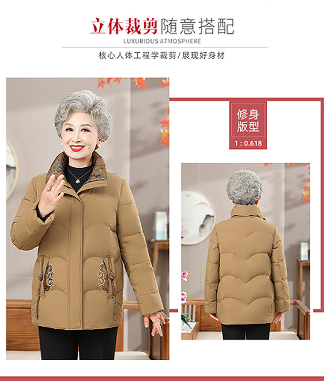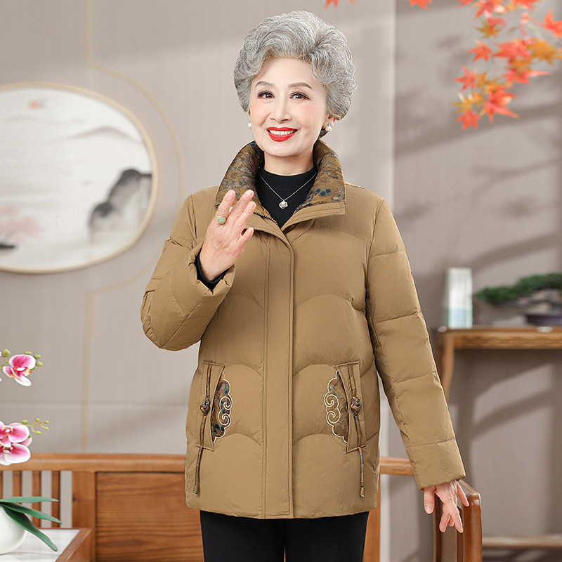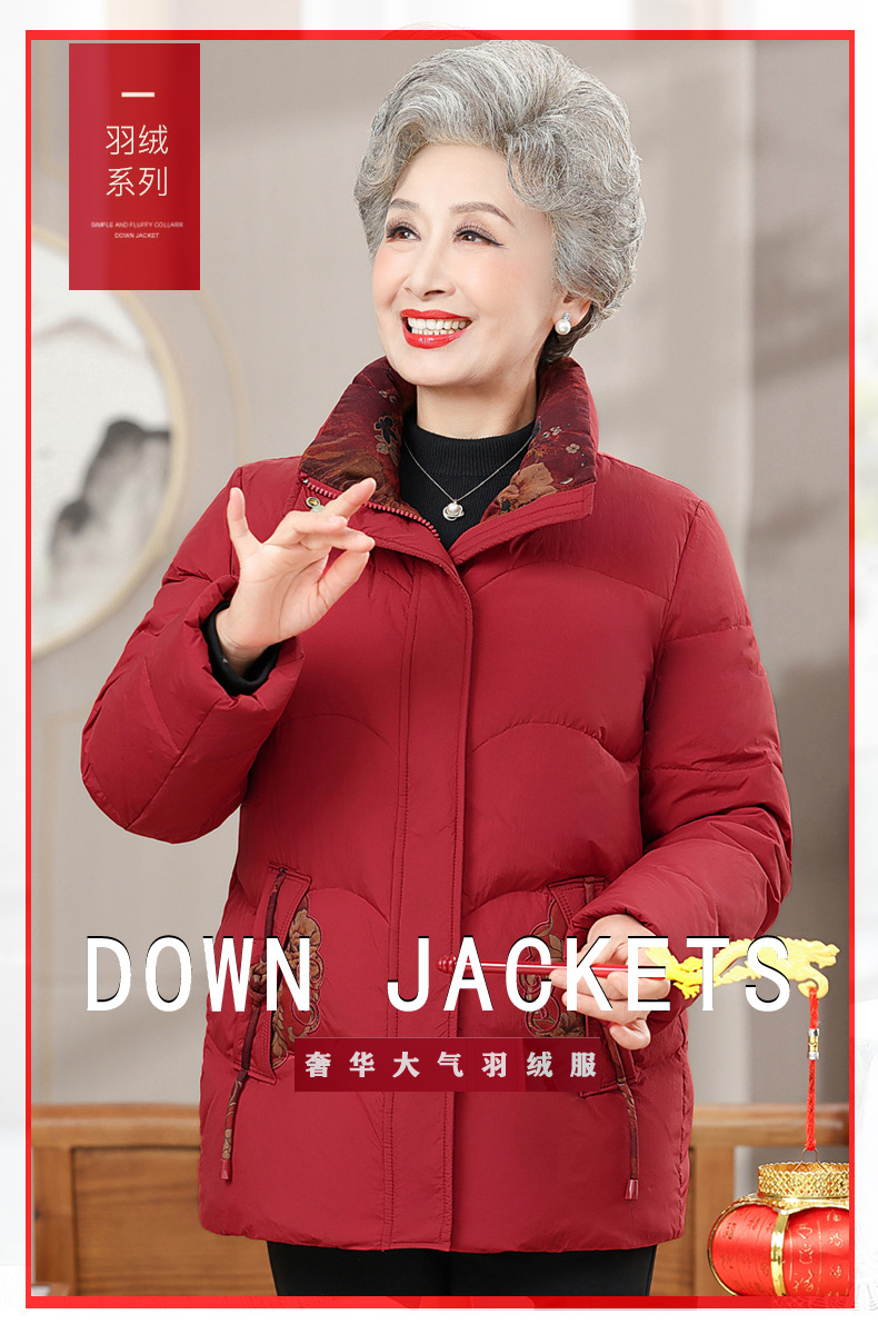 Пожилая мама пуховик новый средний и пожилой зимний костюм бабушки 90% белая утка пуховая теплая куртка