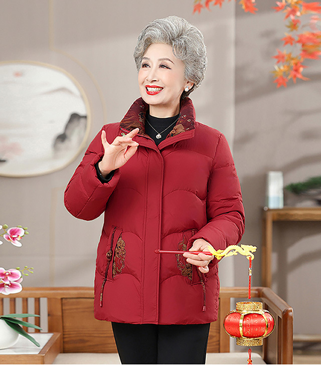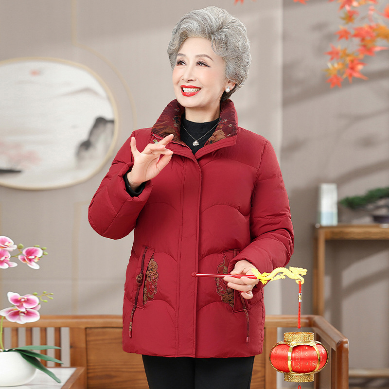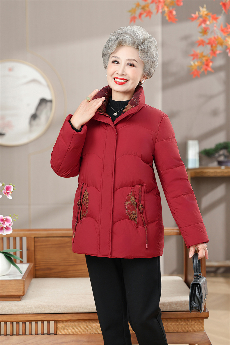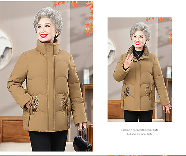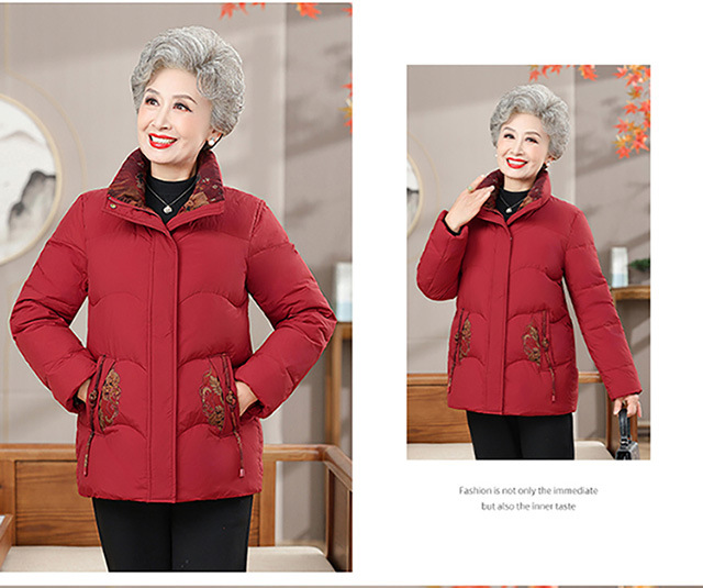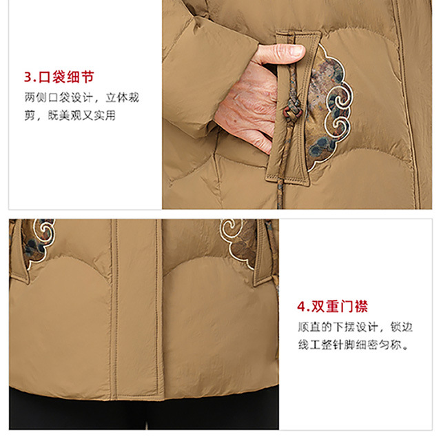 Пожилая мама пуховик новый средний и пожилой зимний костюм бабушки 90% белая утка пуховая теплая куртка