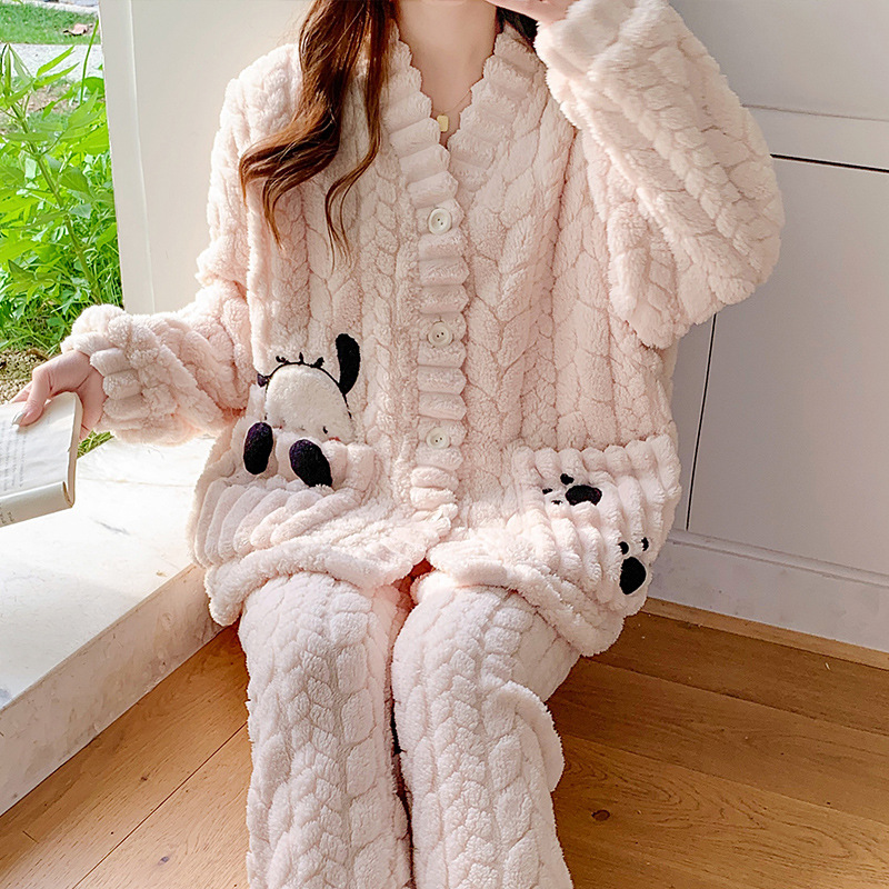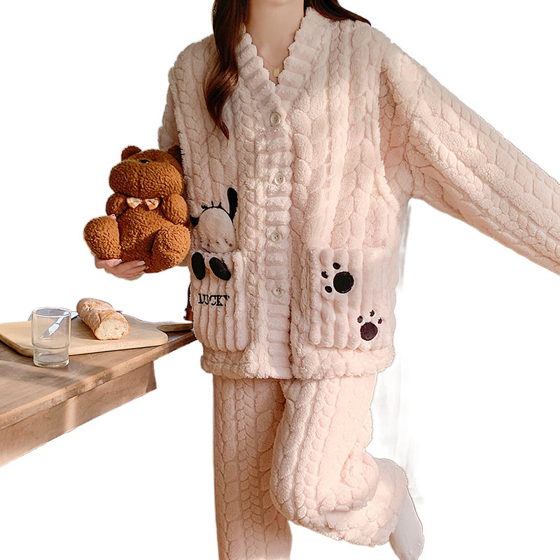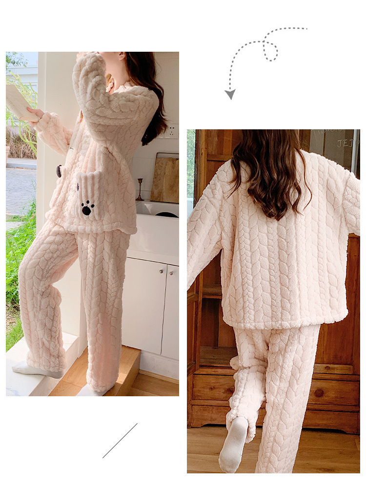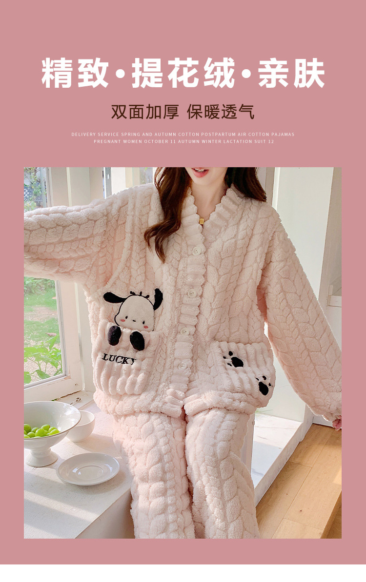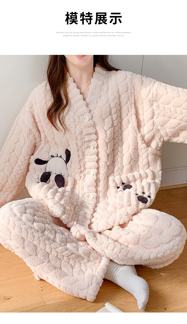 Новый жаккардовый бархатный костюм для родов осенью и зимой бархат утолщает беременные женщины пижамы женский фланелевый коралловый после кормления грудью