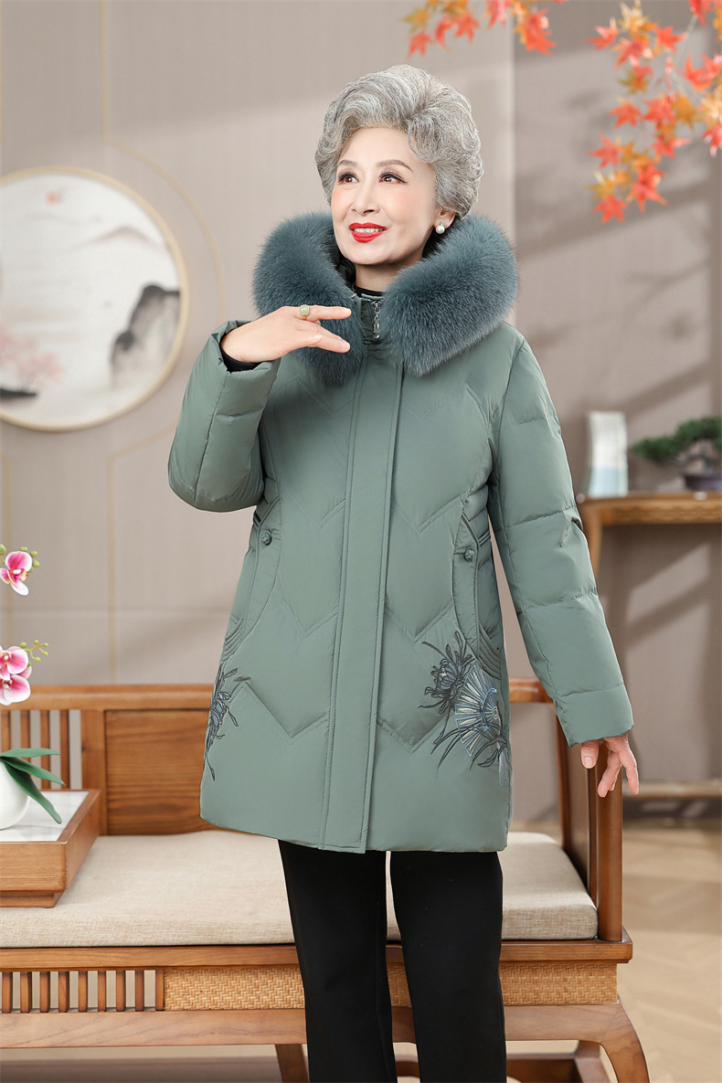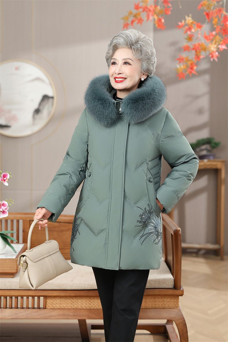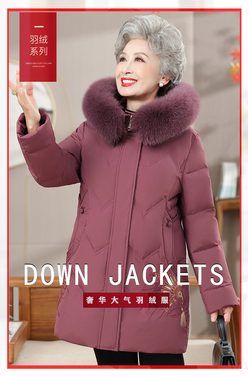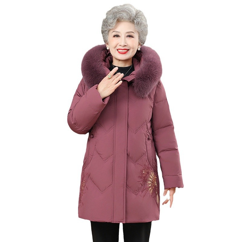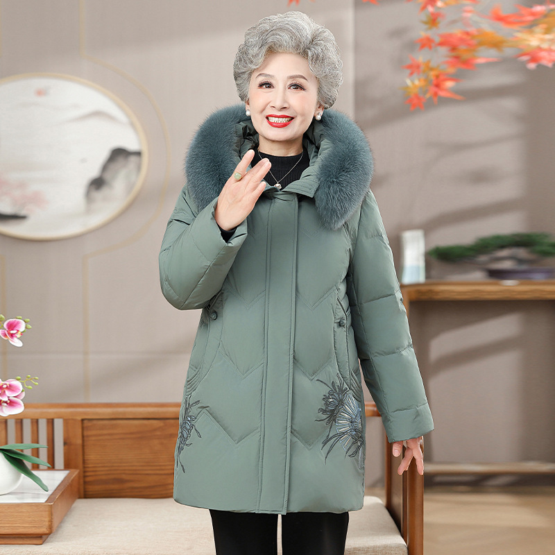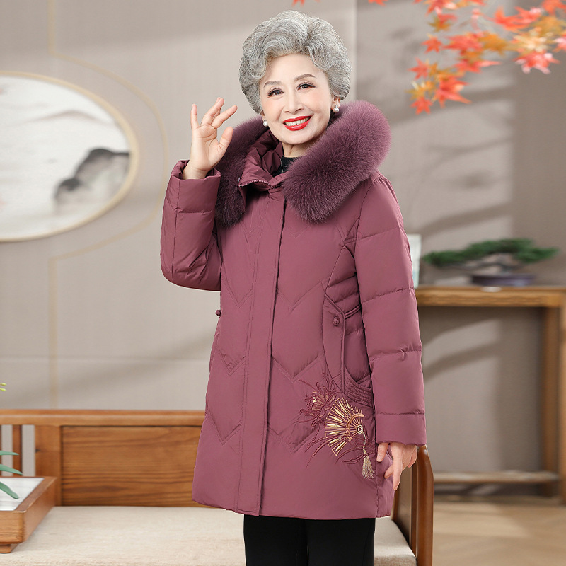 Мама пуховик среднего и пожилого возраста зимняя одежда бабушки национальный стиль средней и длинной куртки 90 белая утка пуховик
