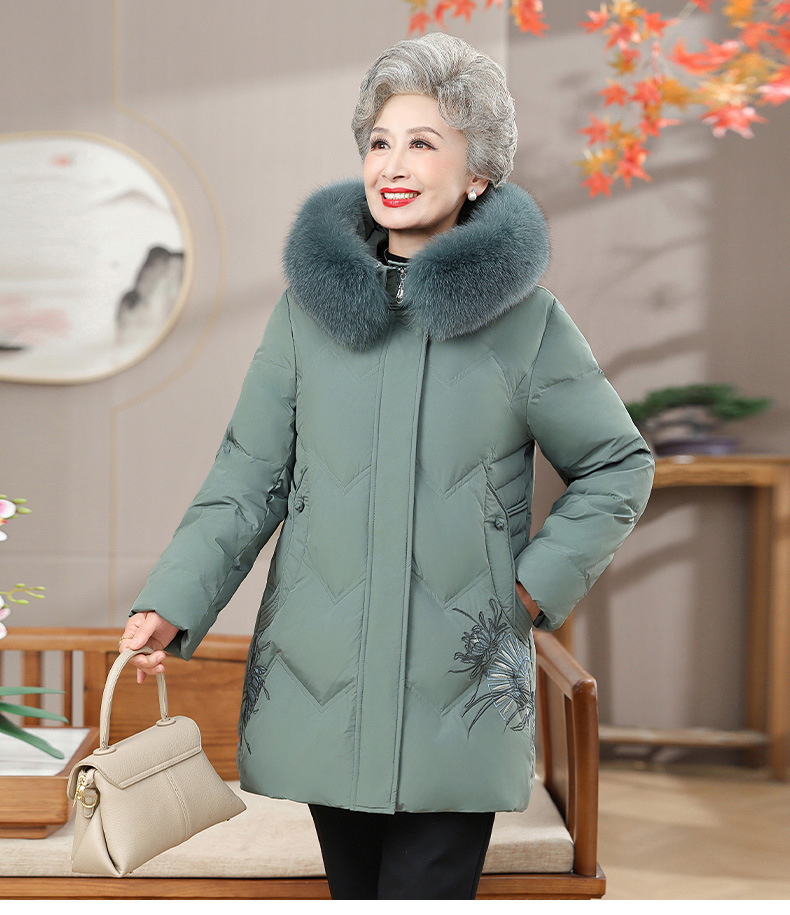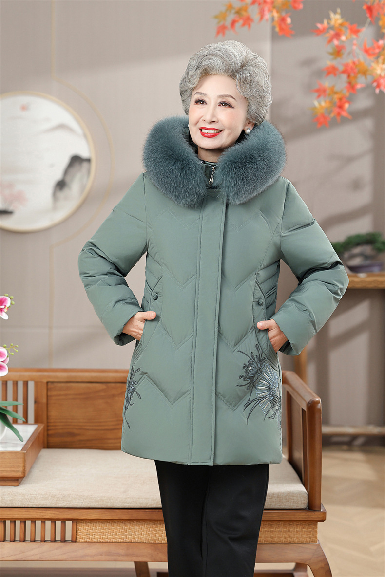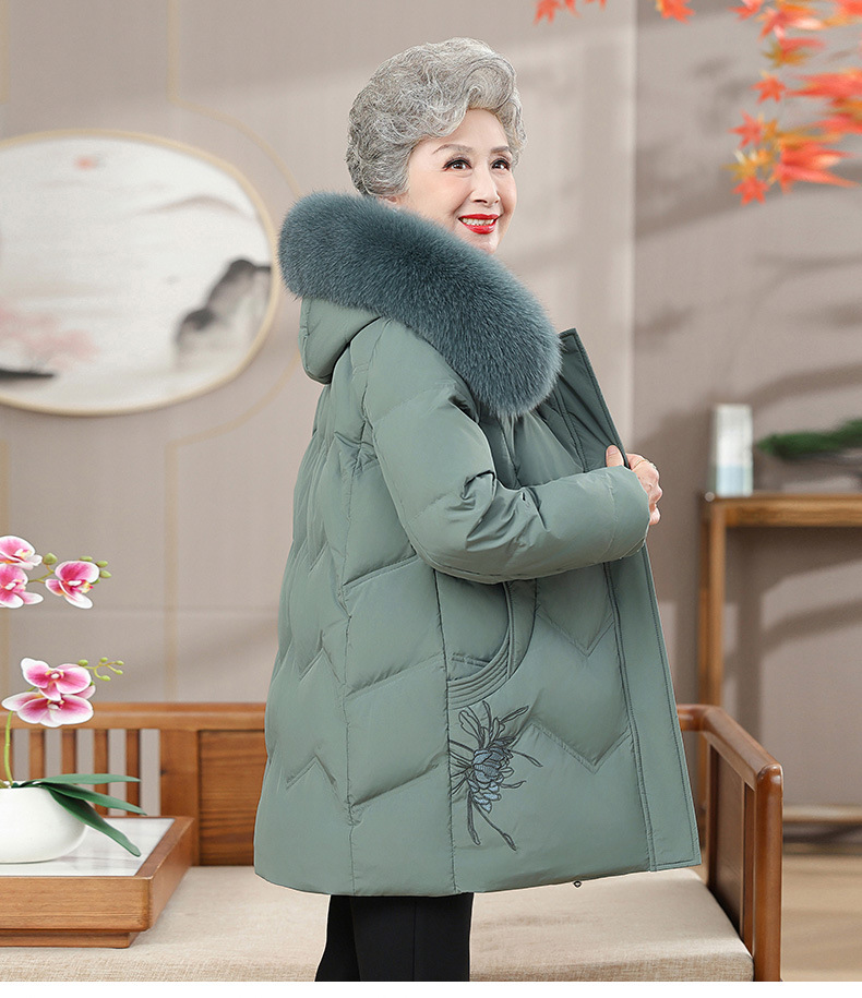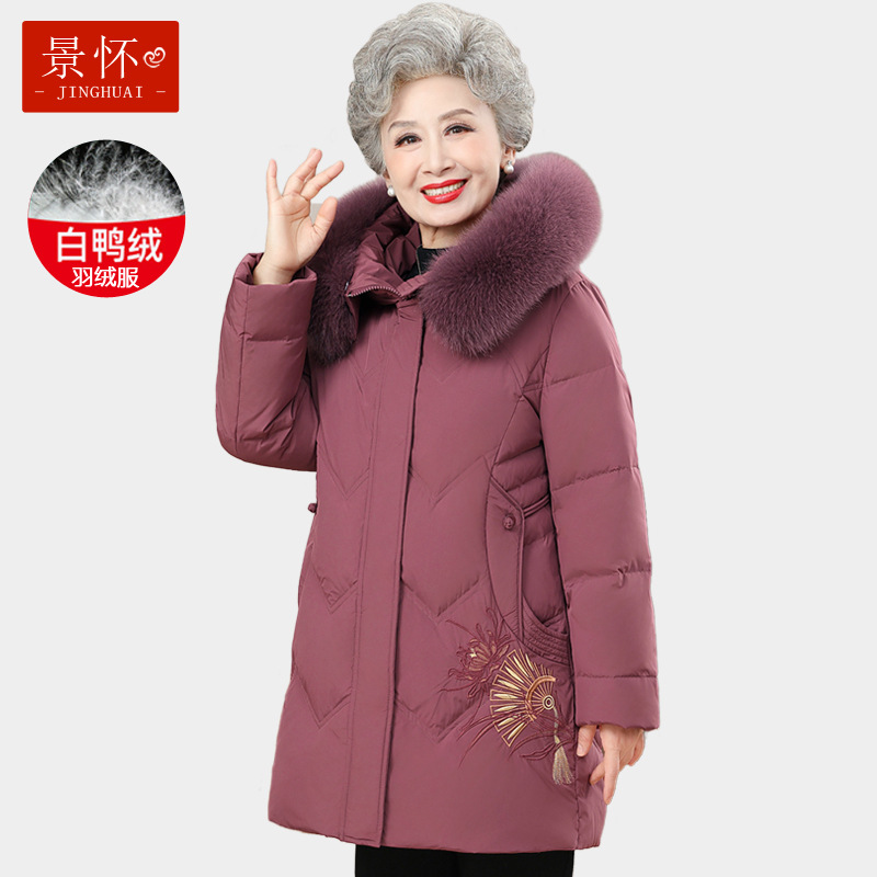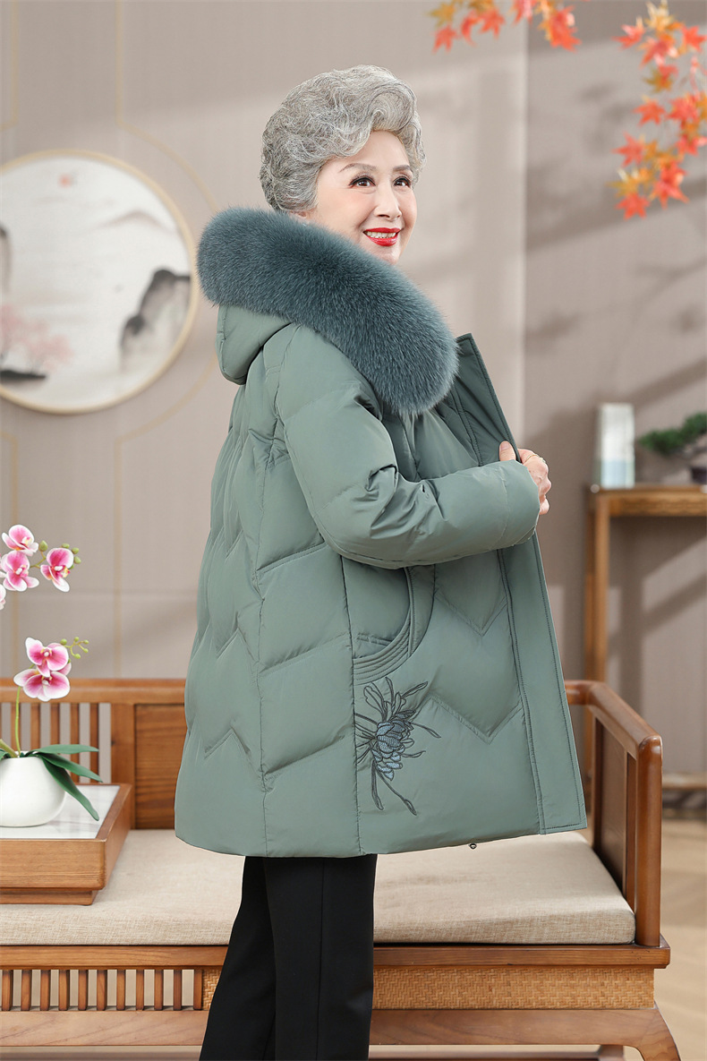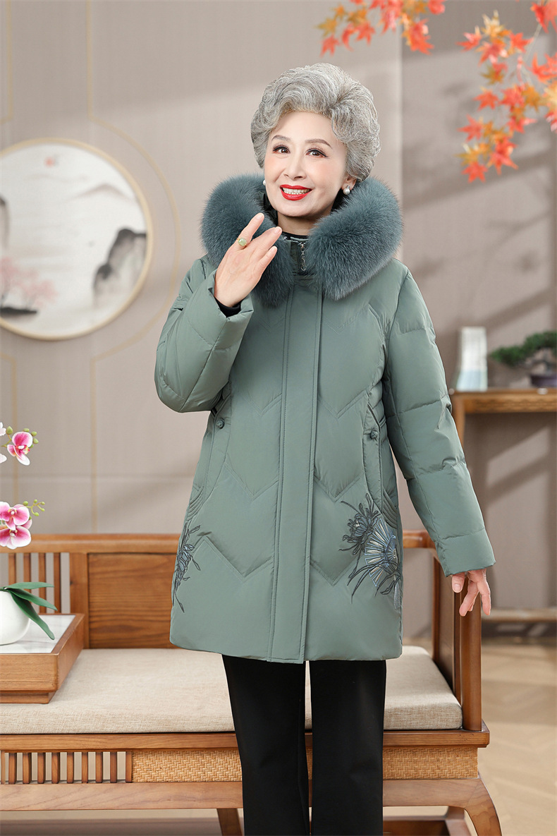 Мама пуховик среднего и пожилого возраста зимняя одежда бабушки национальный стиль средней и длинной куртки 90 белая утка пуховик