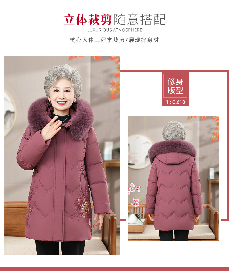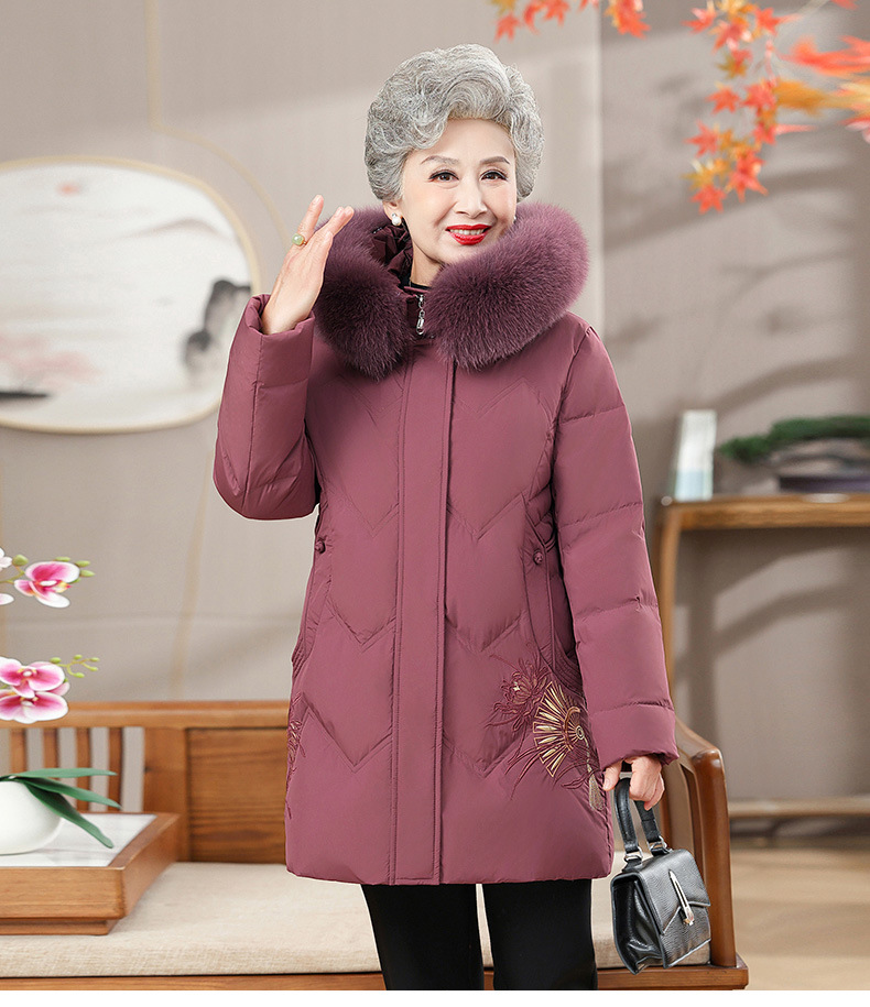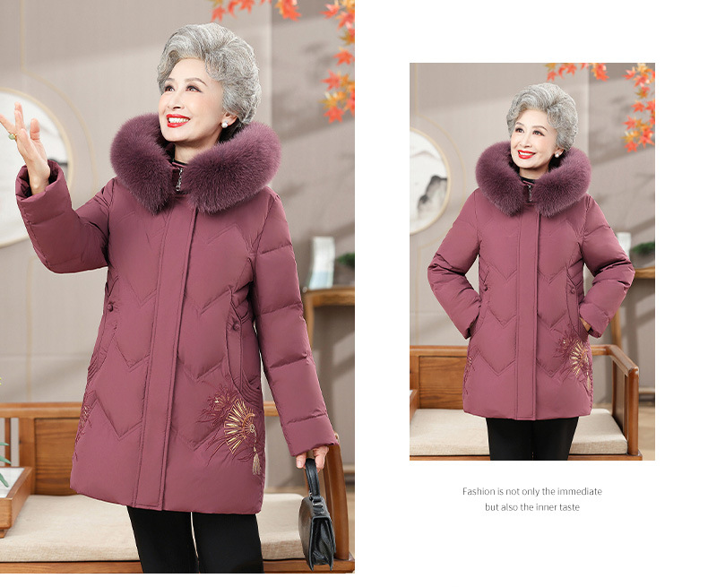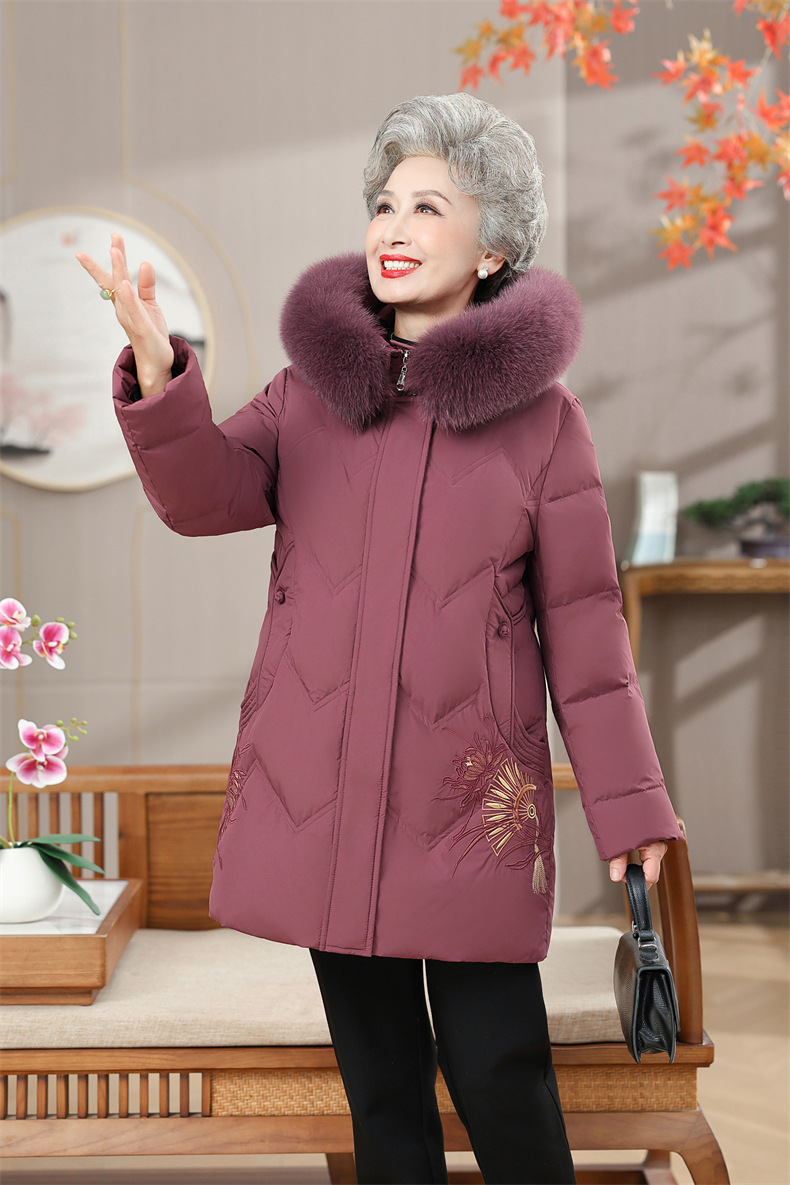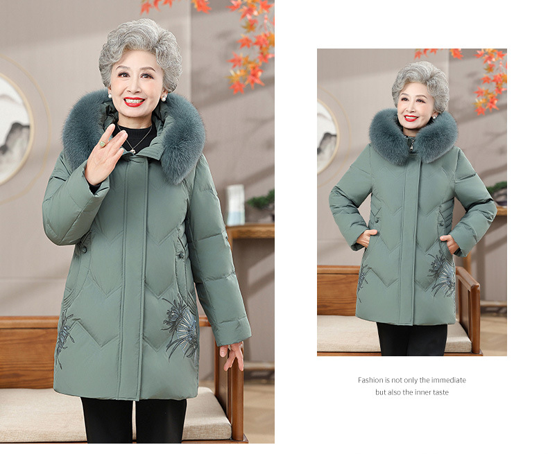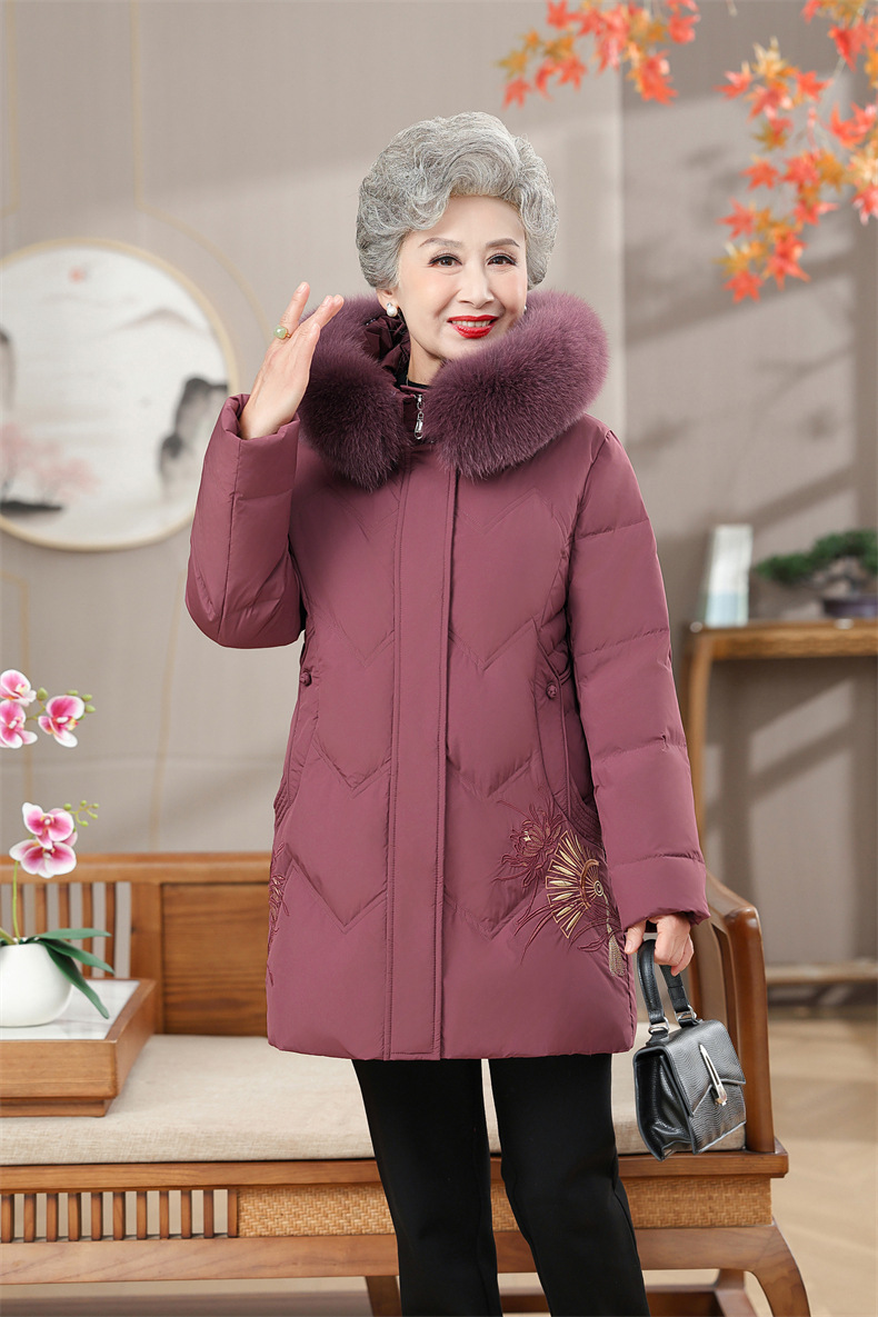 Мама пуховик среднего и пожилого возраста зимняя одежда бабушки национальный стиль средней и длинной куртки 90 белая утка пуховик