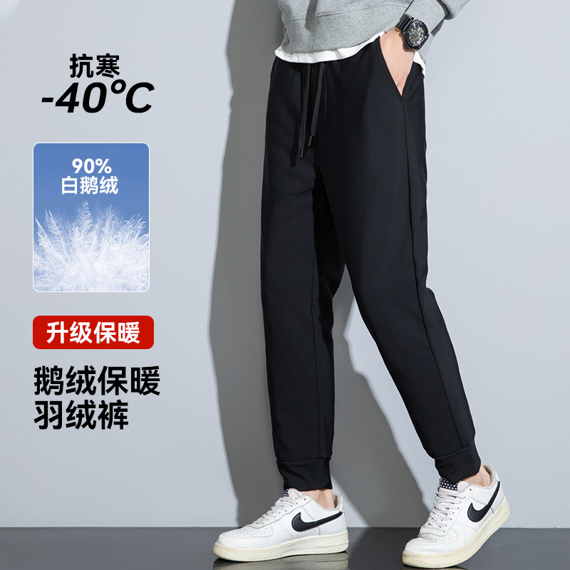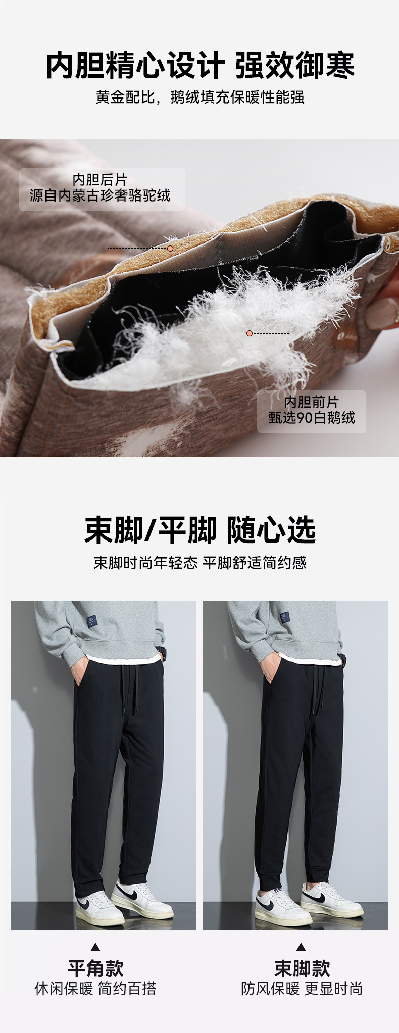Три защиты мужские белые гусиные пуховые брюки зимние спортивные штаны большого размера холодные, водонепроницаемые, теплые и прямые пуховые брюки мужские плюс